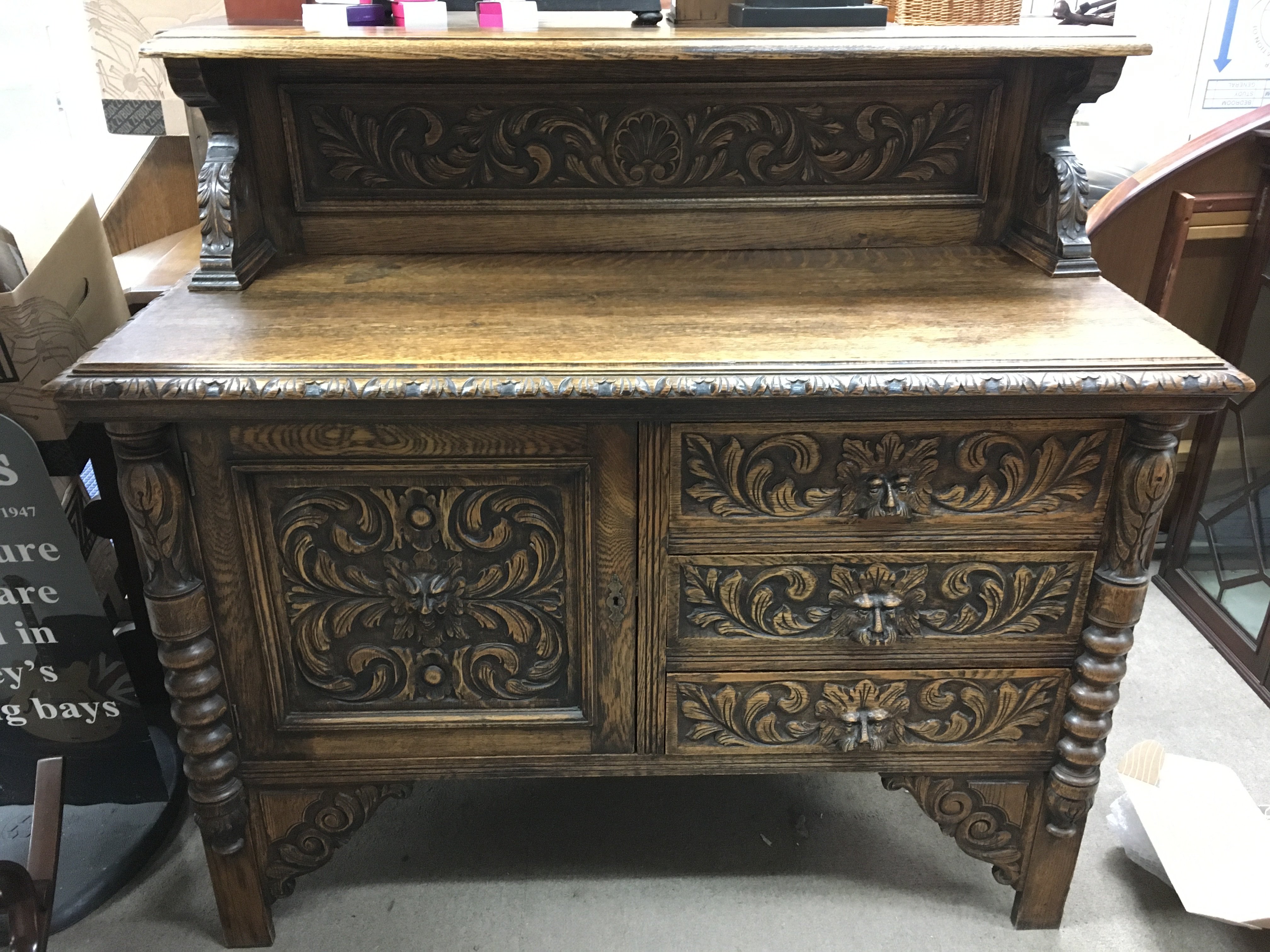A late Victorian oak carved gothic style sideboard , dimensions 136x60x130cm