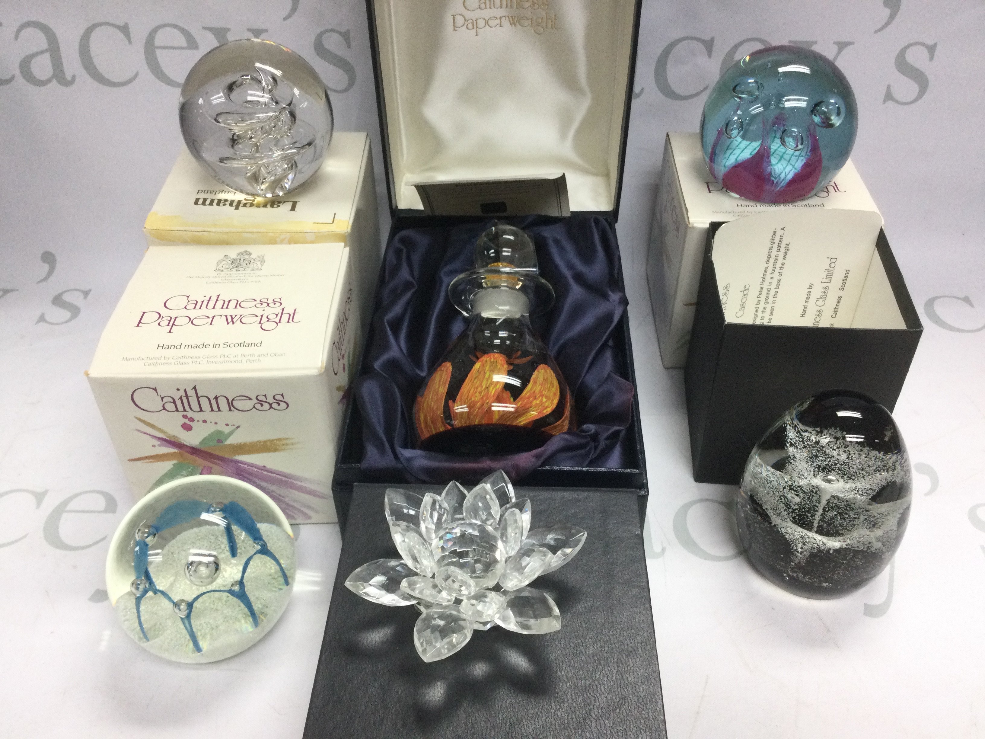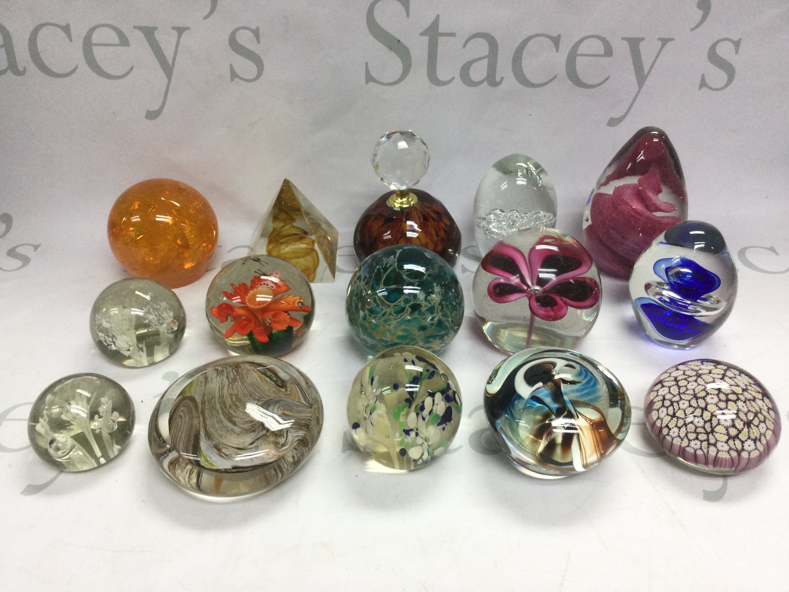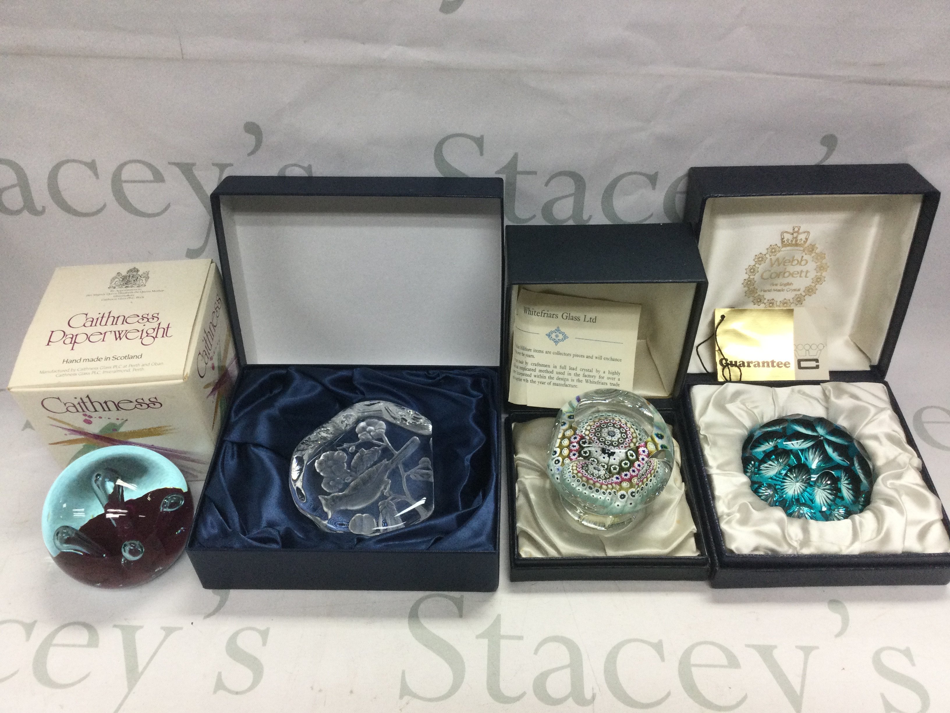 A collection of glass paperweights including boxed and loose paperweights comprising Caithness, Whitefriars, Millefiori and others. Shipping category D.