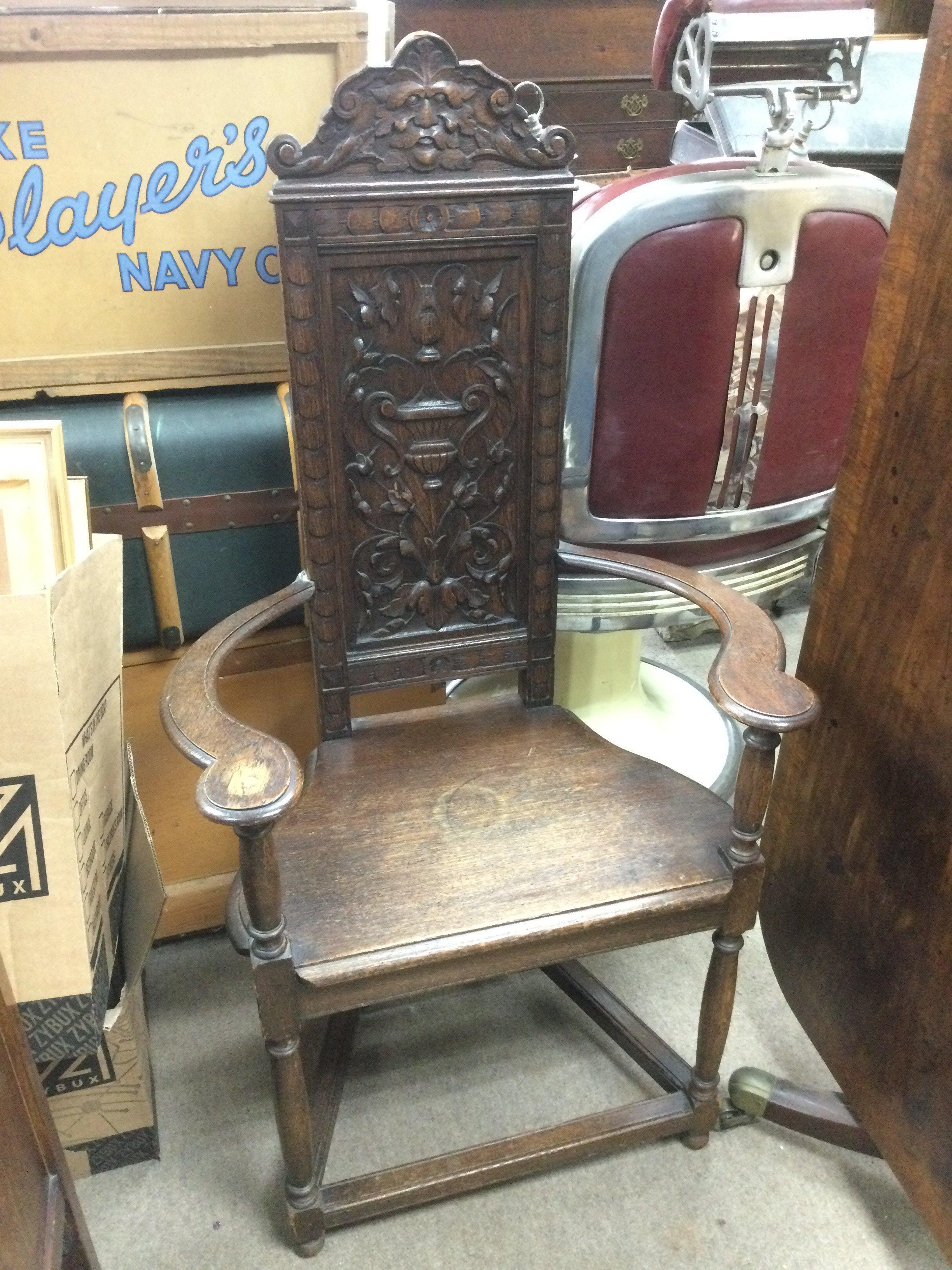 A carved oak chair. Shipping category D.