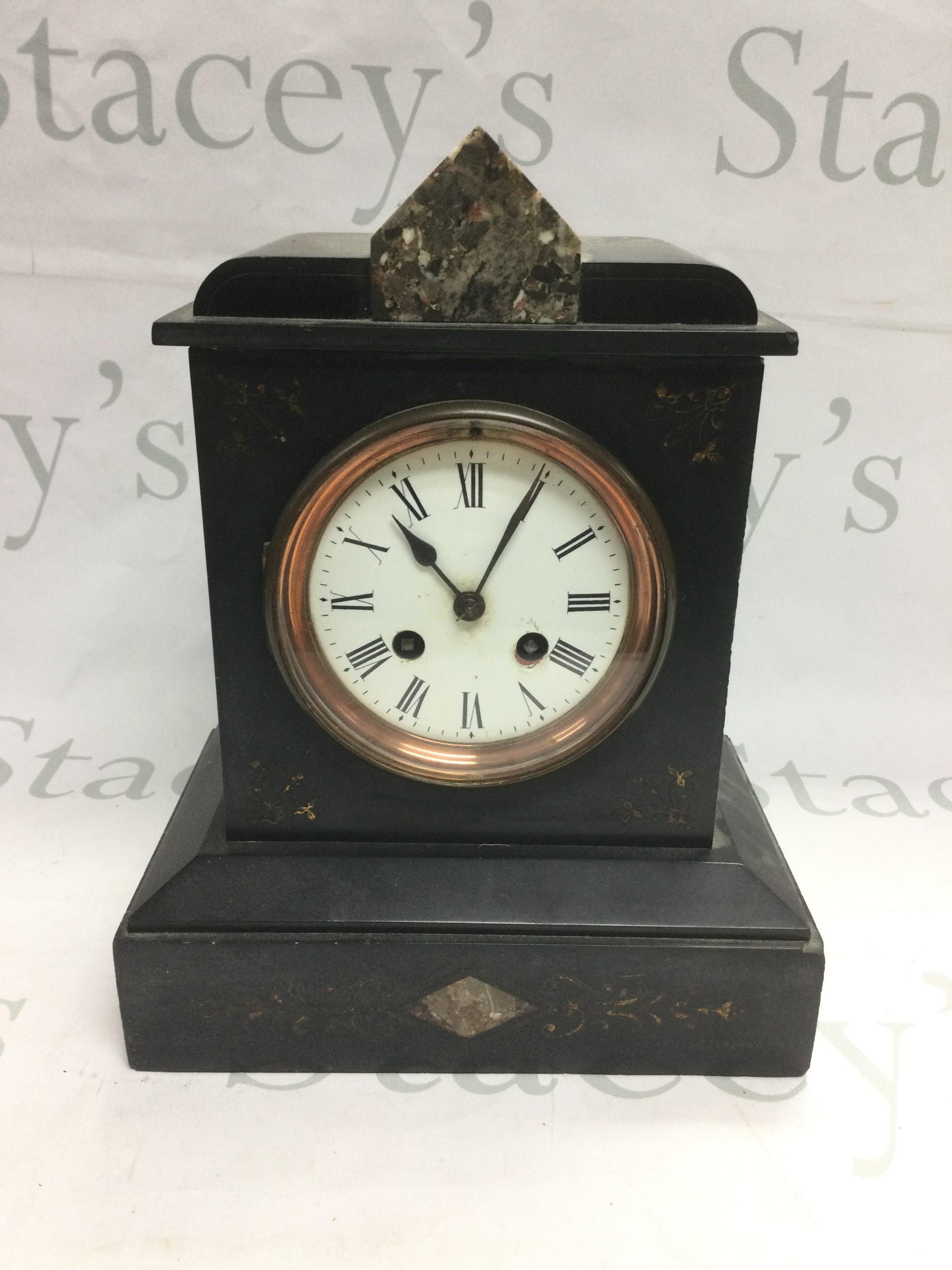 A black slate mantle clock. Shipping category D. NO RESERVE