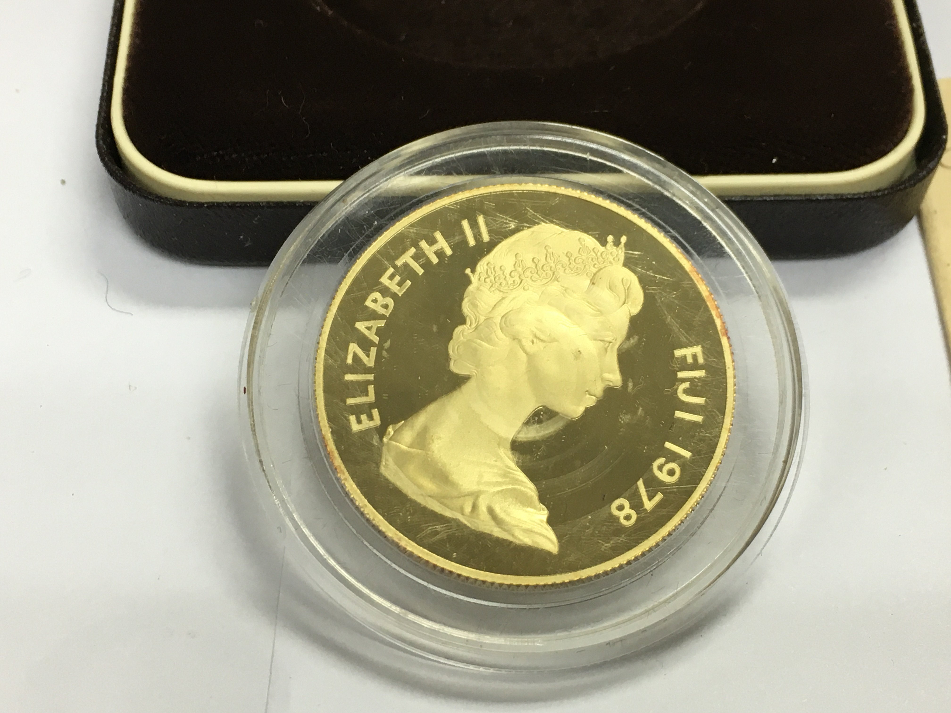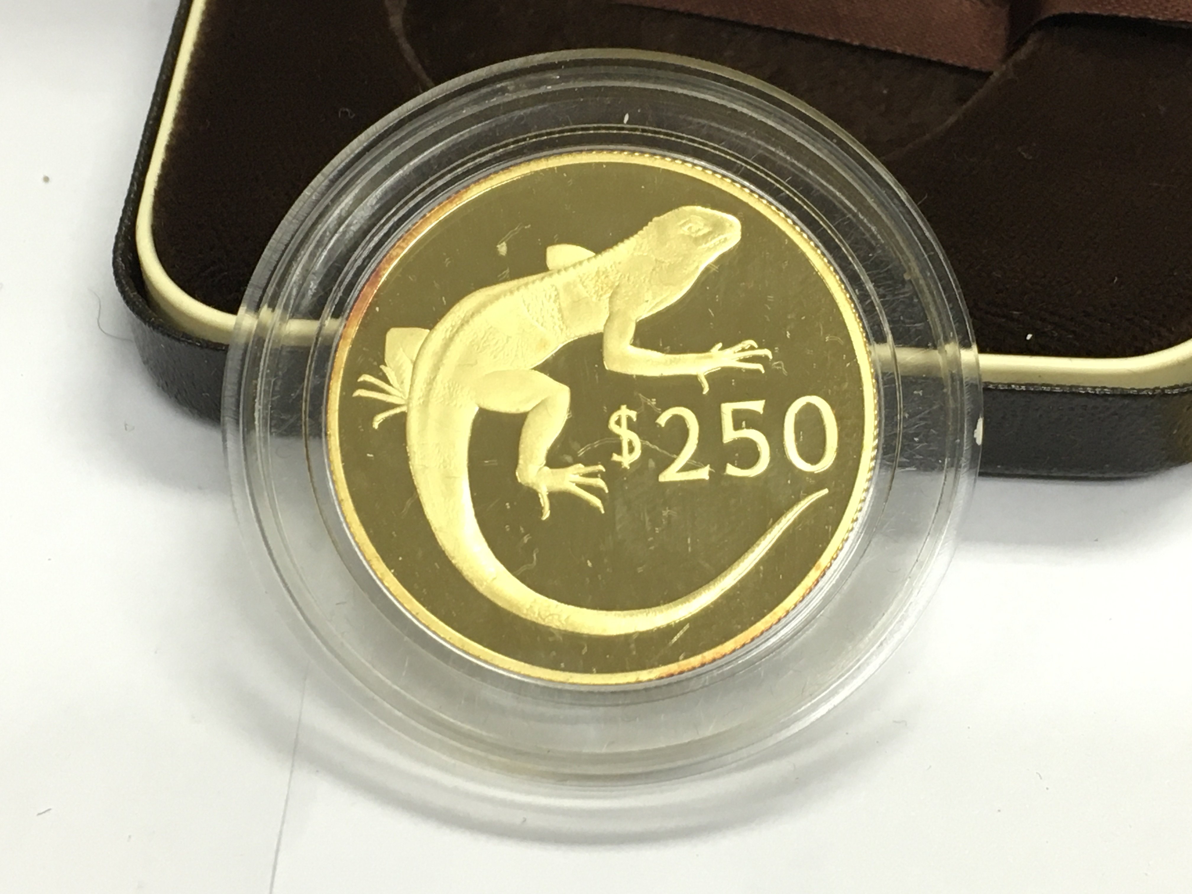 A 1978 250 Fijian gold coin featuring a banded iguana. 33.43g 21ct gold. Postage B