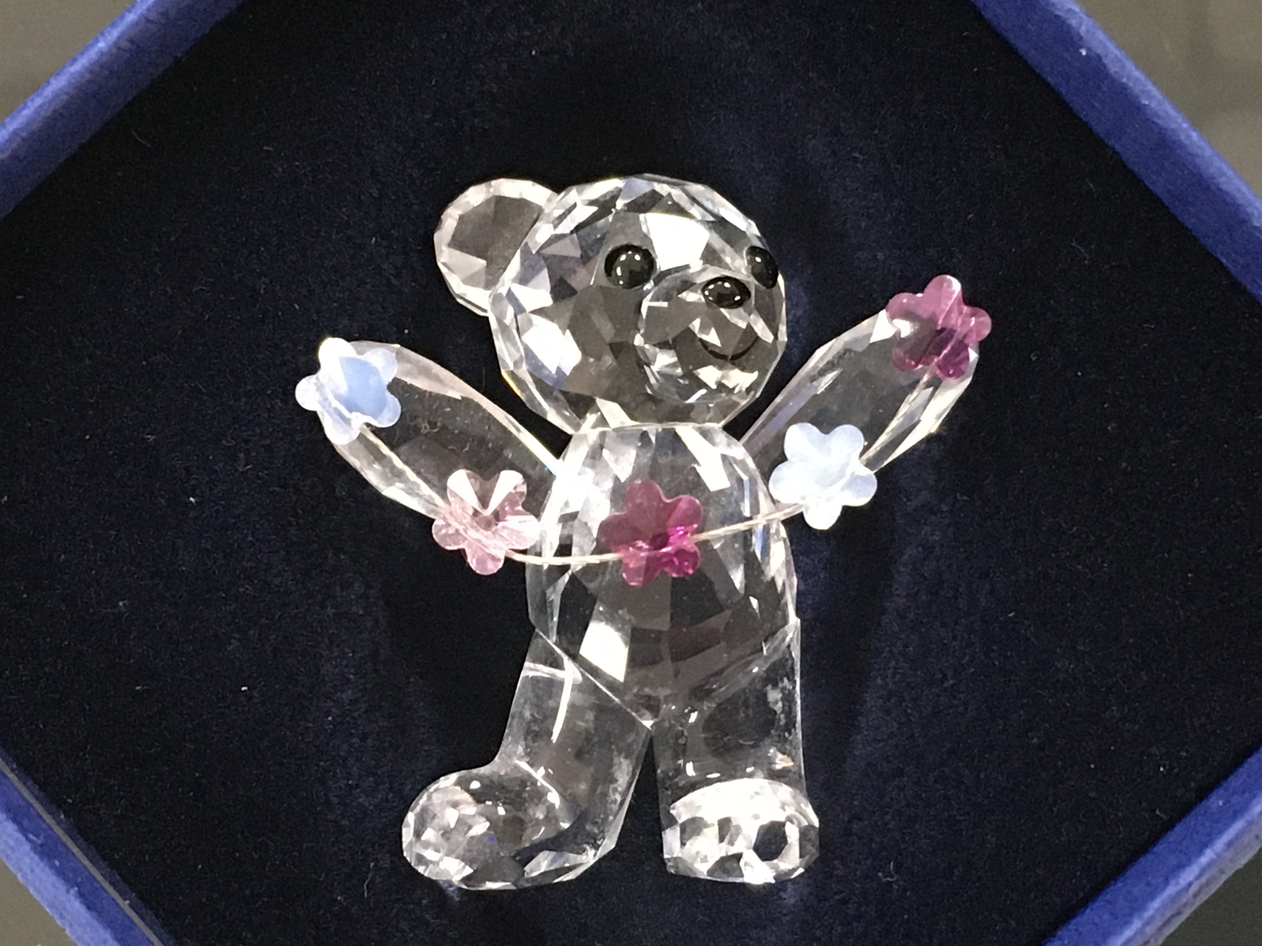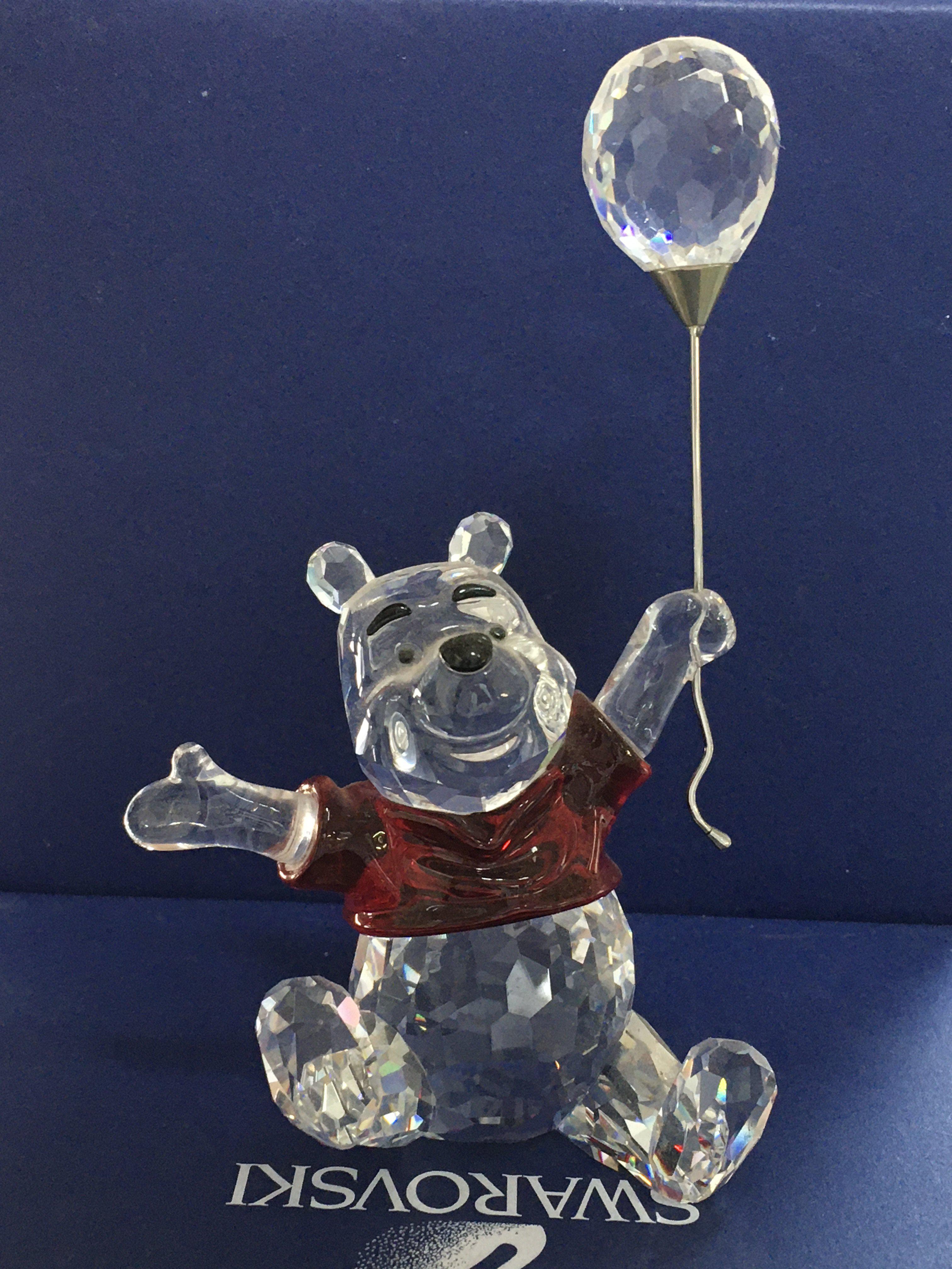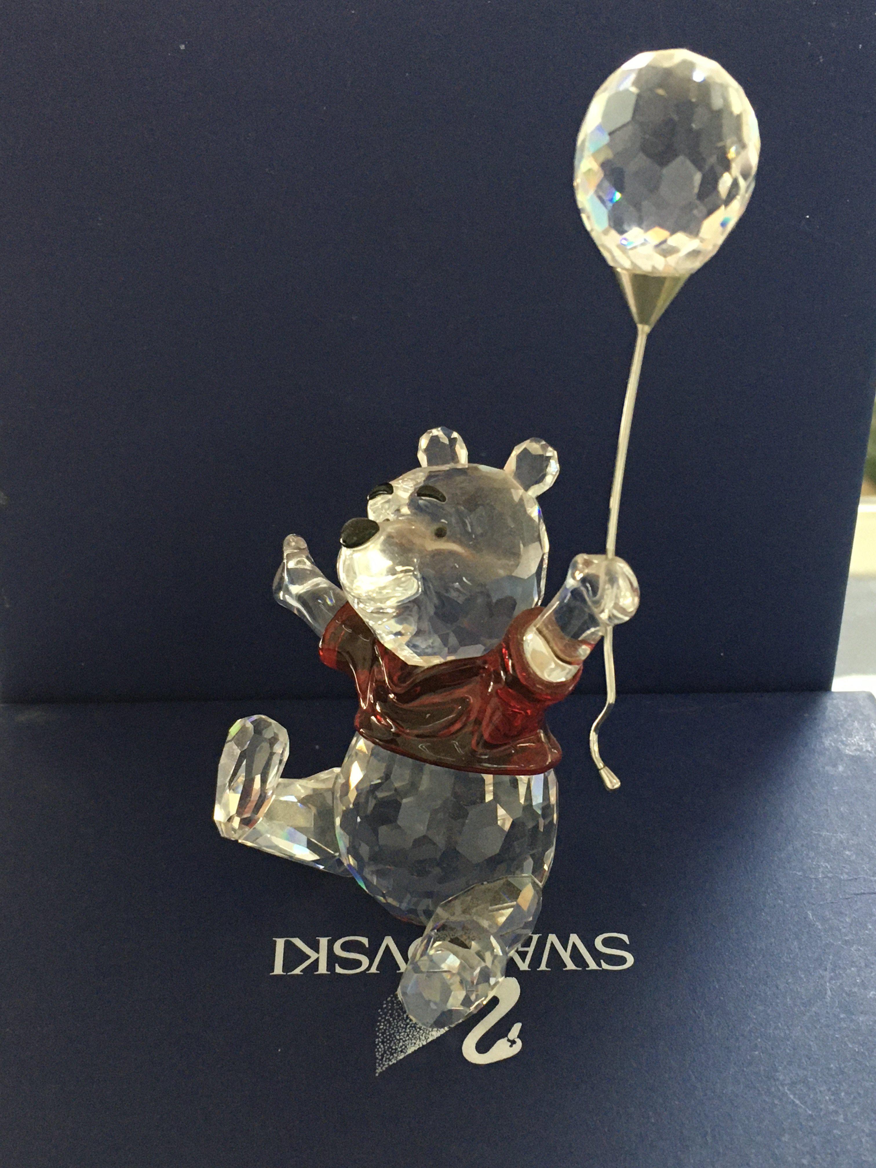 A Swarovski boxed Winnie The Pooh figure, together with five smaller boxed bears including two from the lovely’s series, all holding items including flowers, cake and heart. With Certificate of Authenticity. No obvious damage or restoration