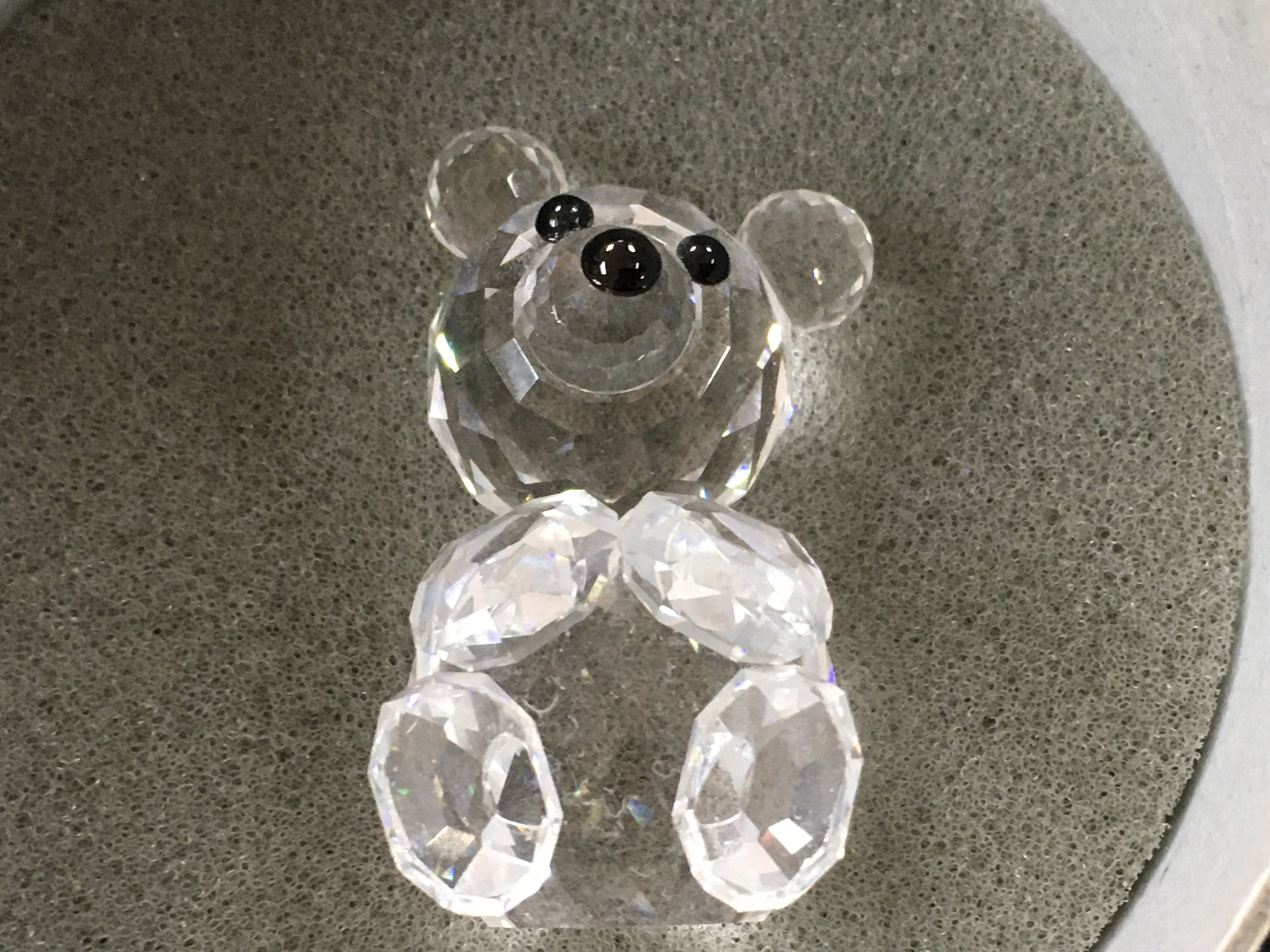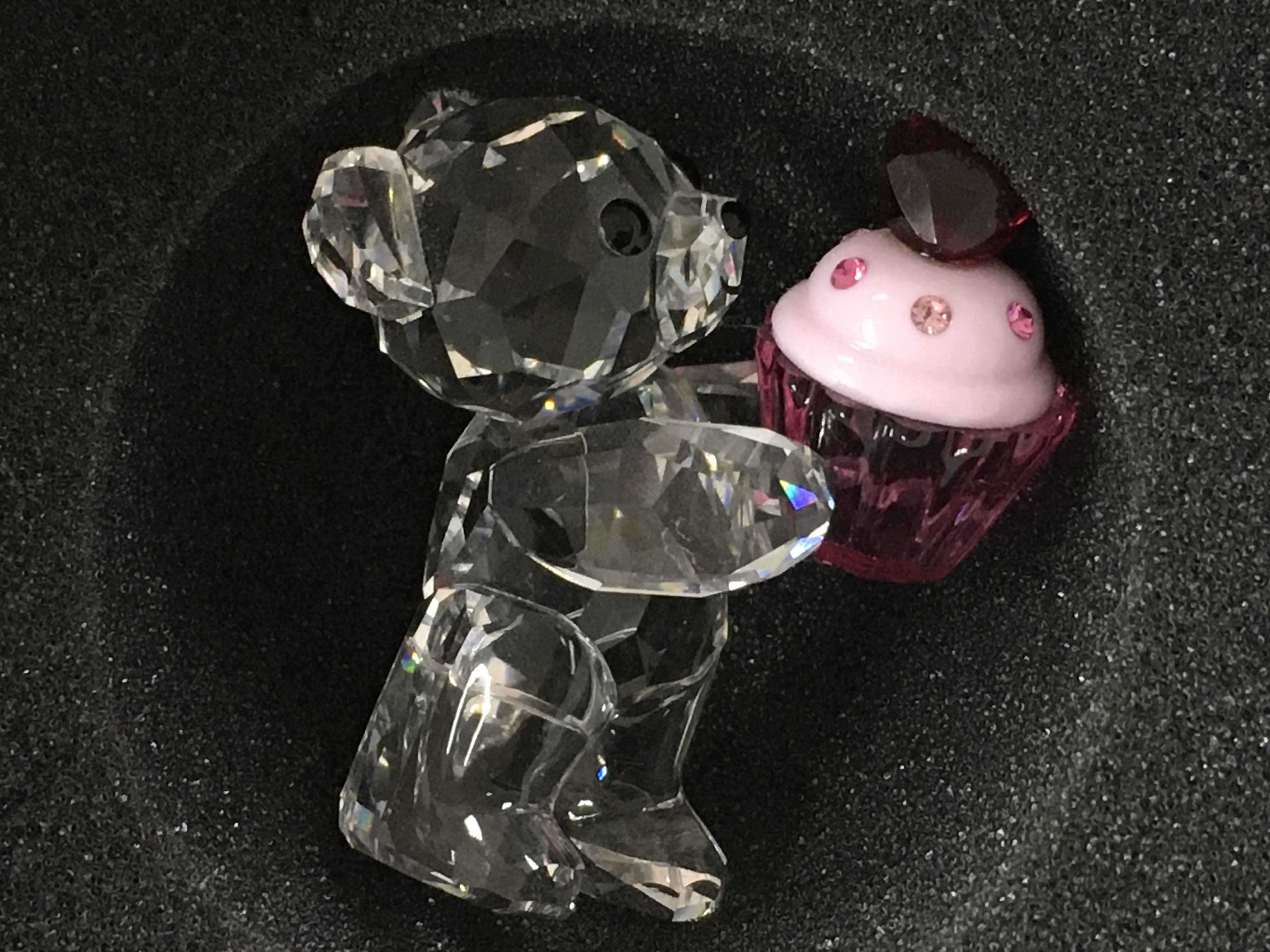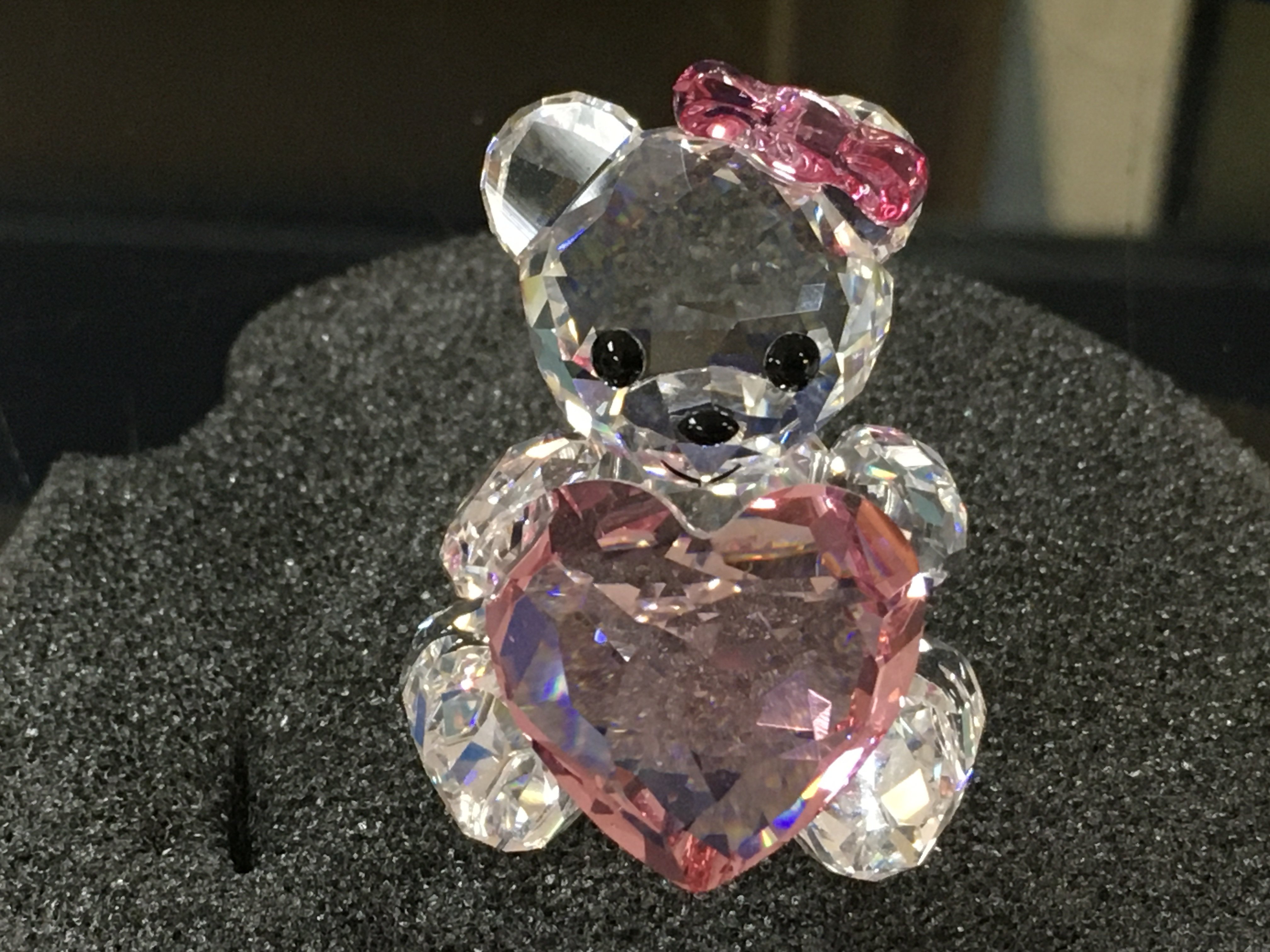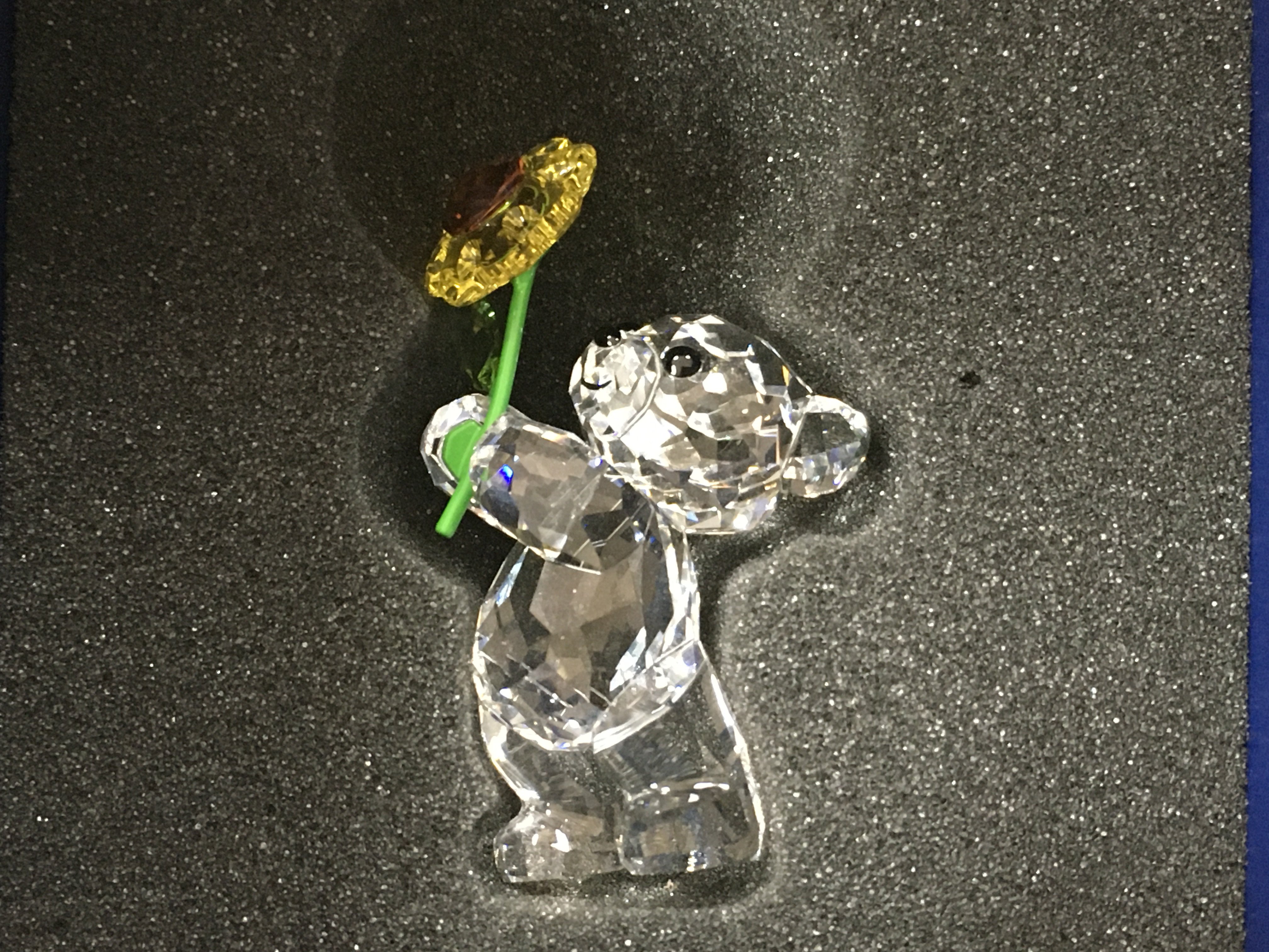 A Swarovski boxed Winnie The Pooh figure, together with five smaller boxed bears including two from the lovely’s series, all holding items including flowers, cake and heart. With Certificate of Authenticity. No obvious damage or restoration