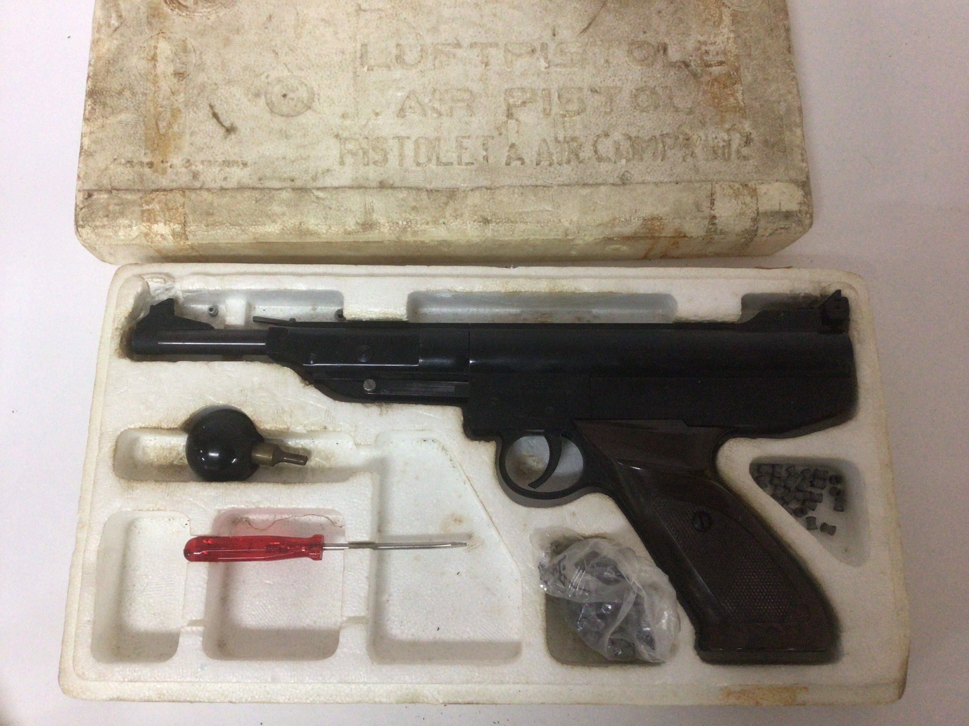 A West German Model 3a 4.5mm caliber air gun in a polystyrene box.