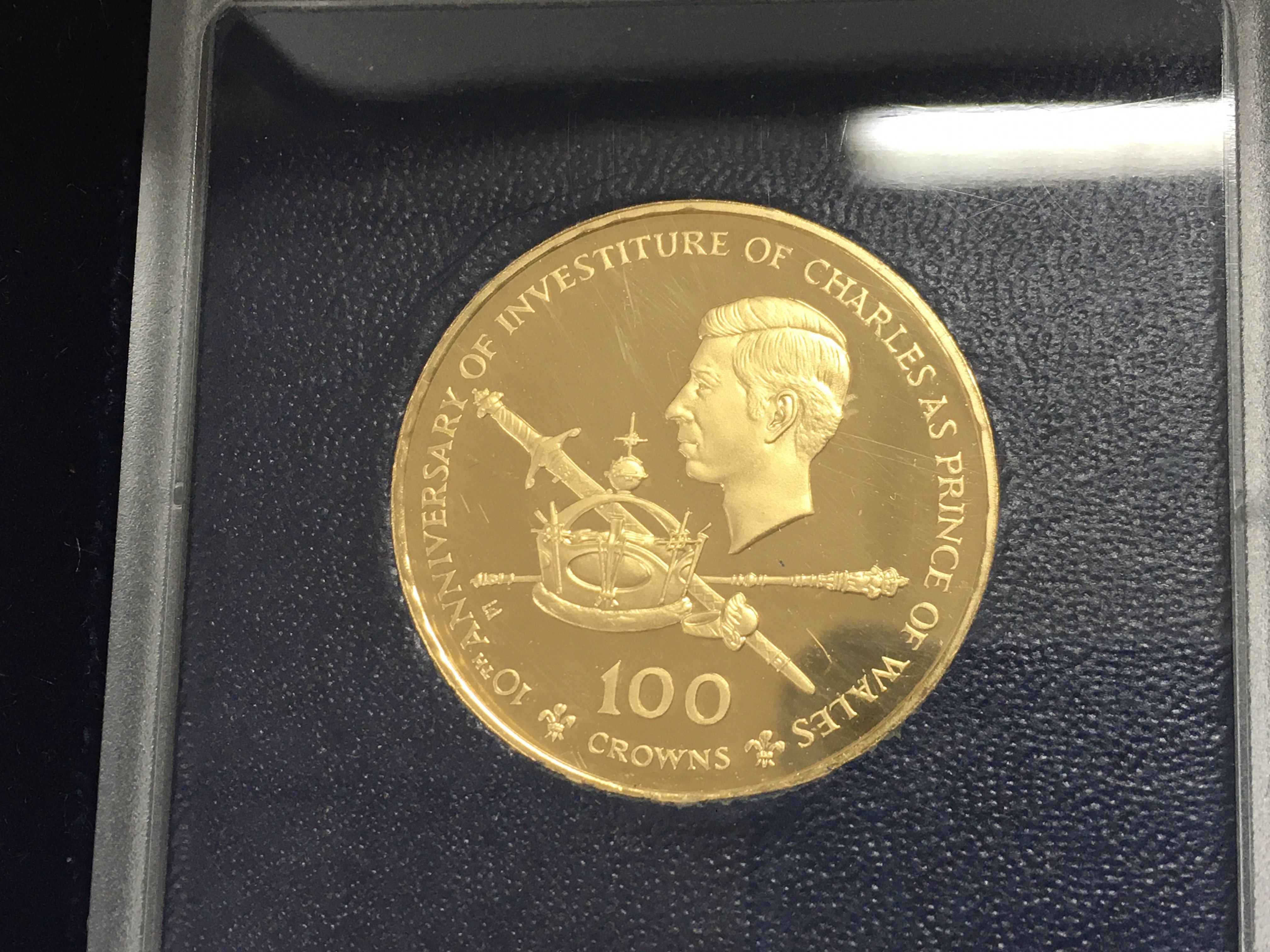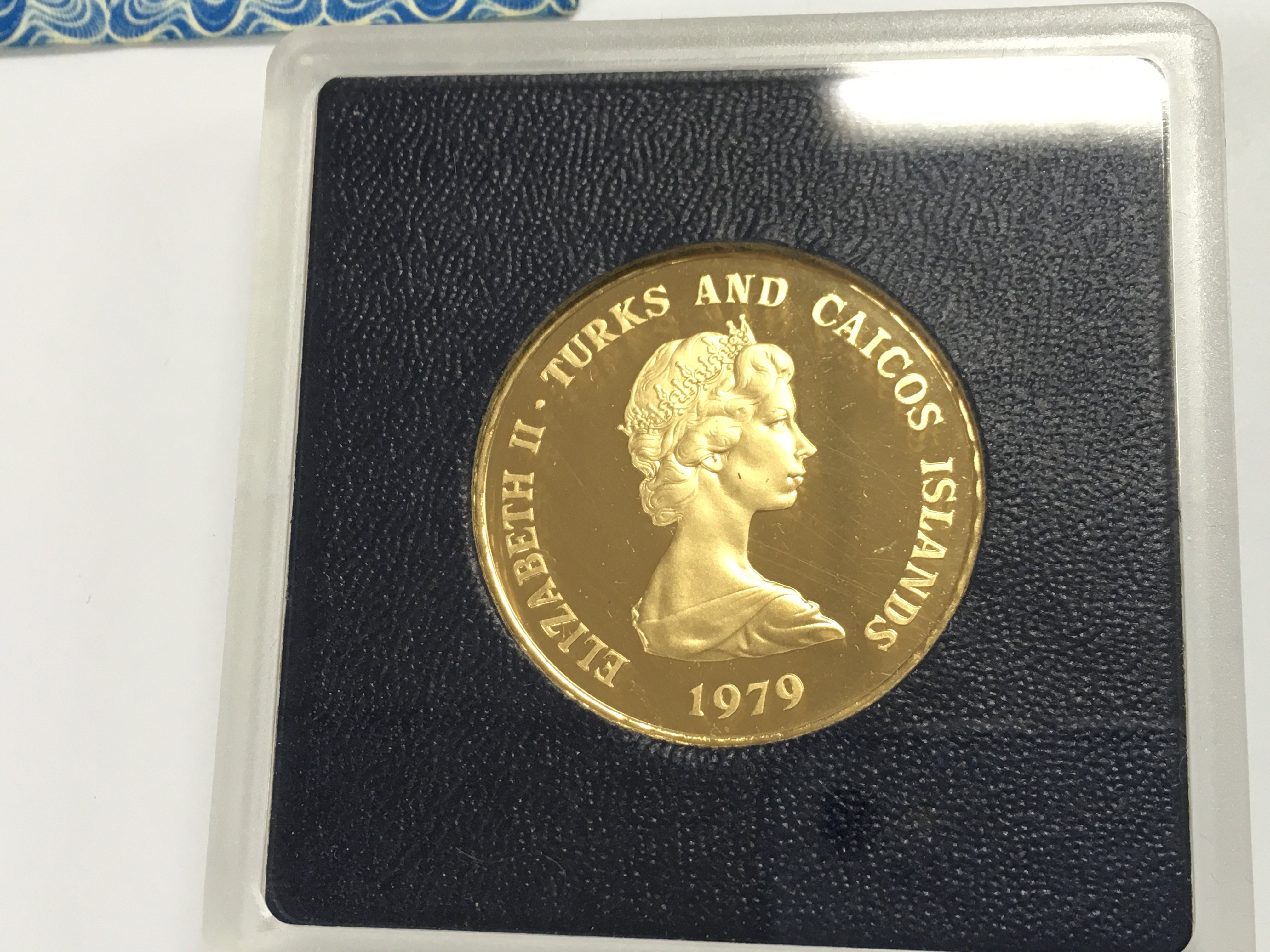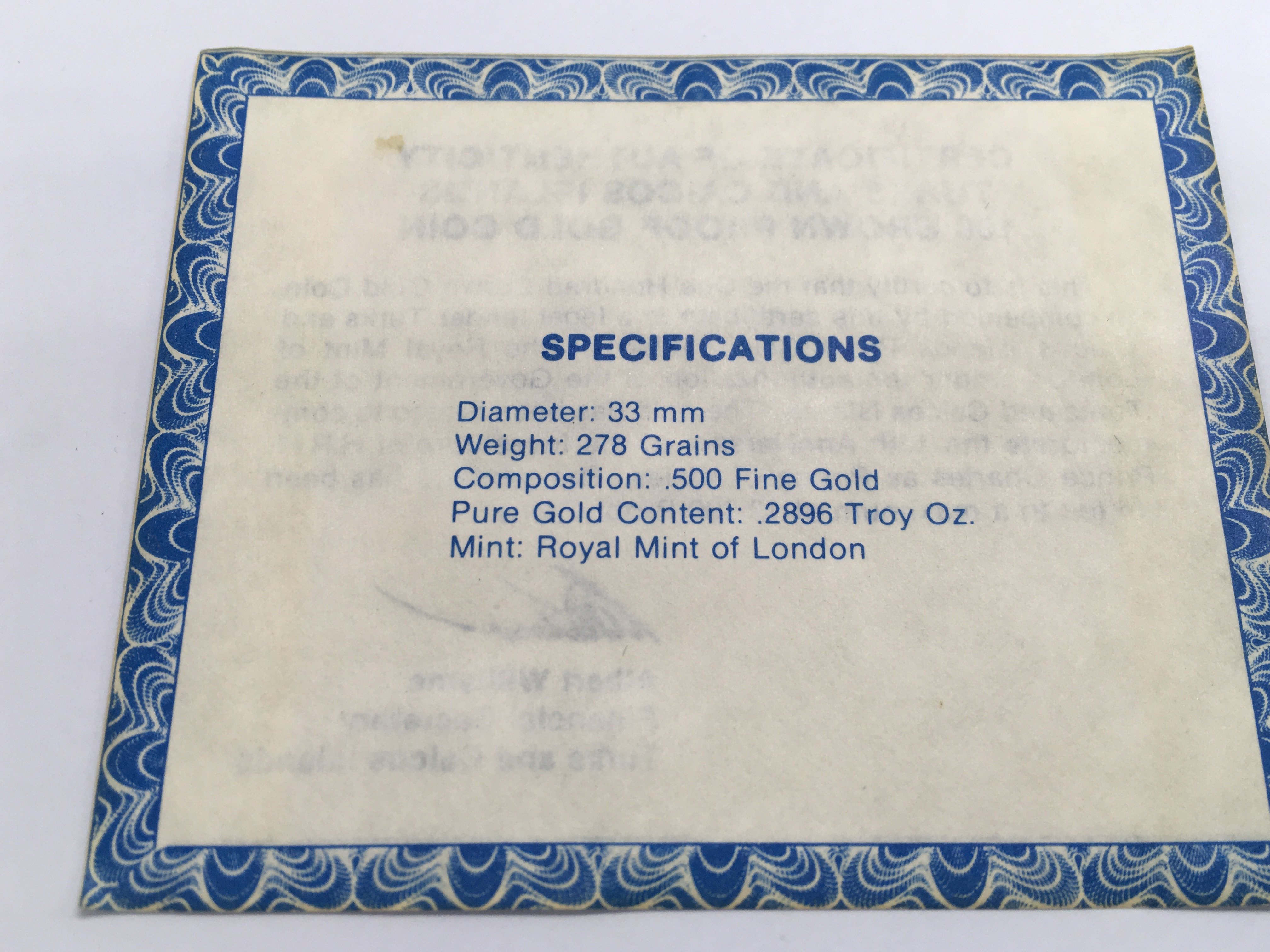 A Turks and Caicos islands 100 crowns proof good coin. 12ct and approximately 18g Postage B