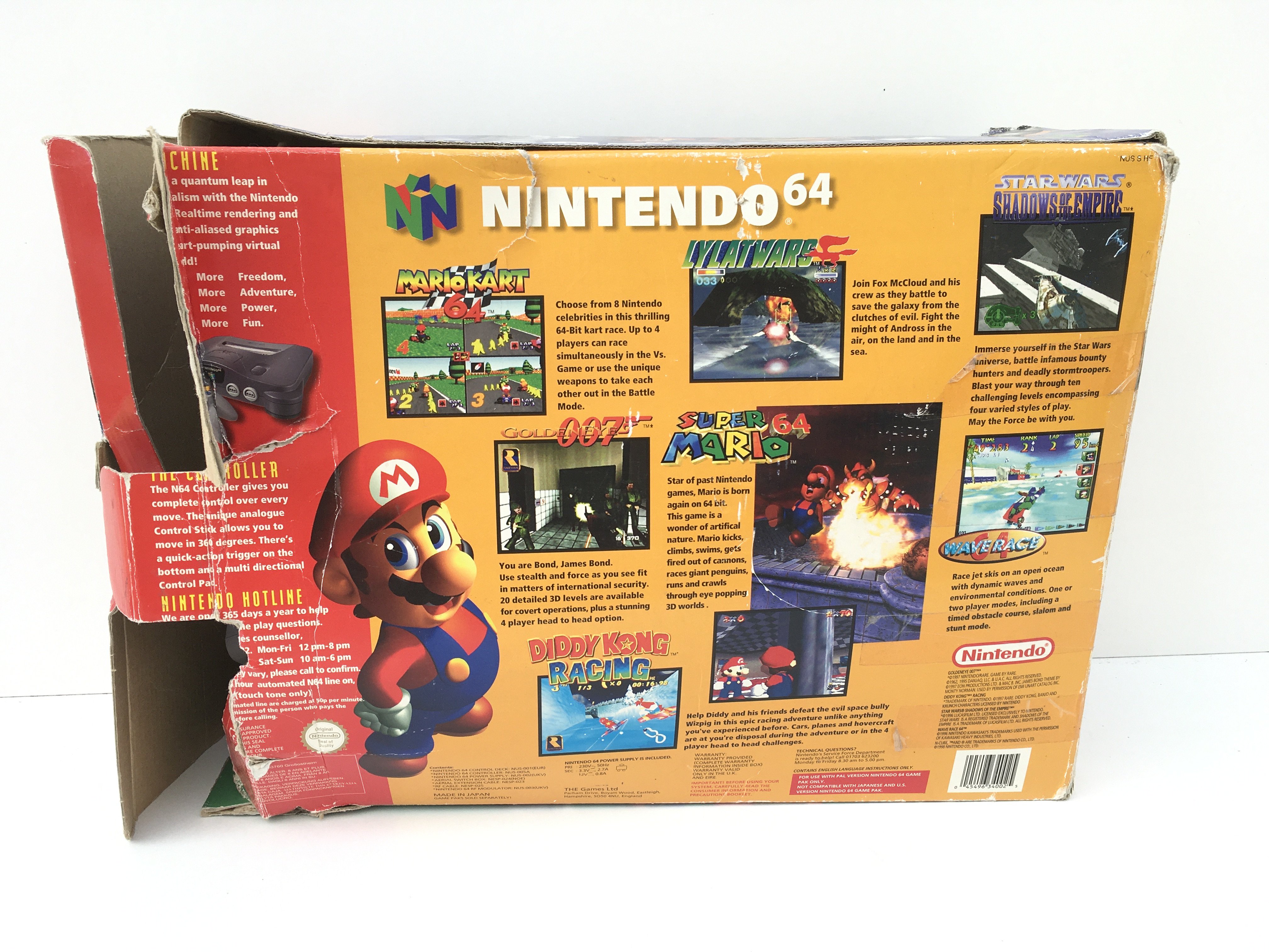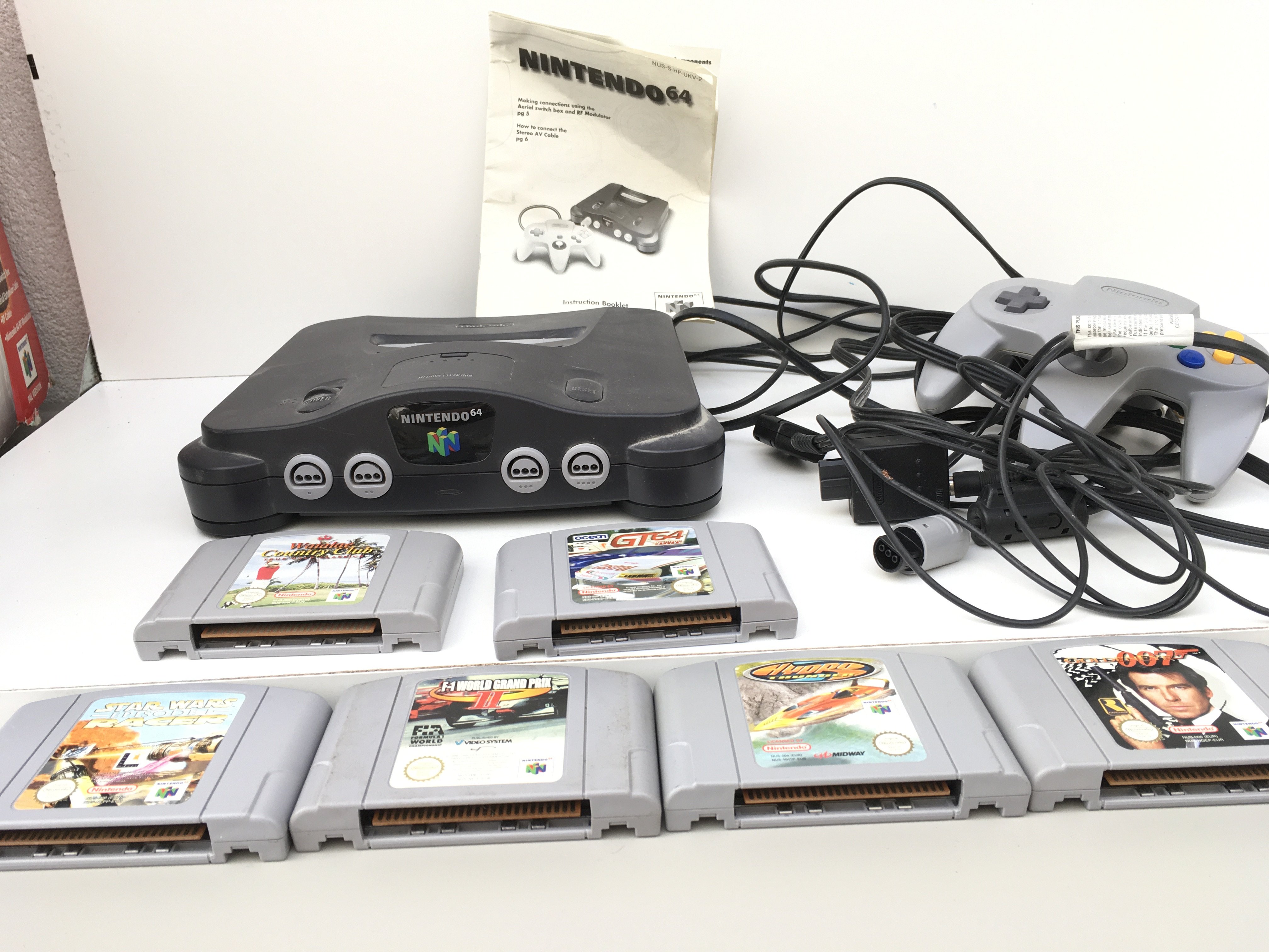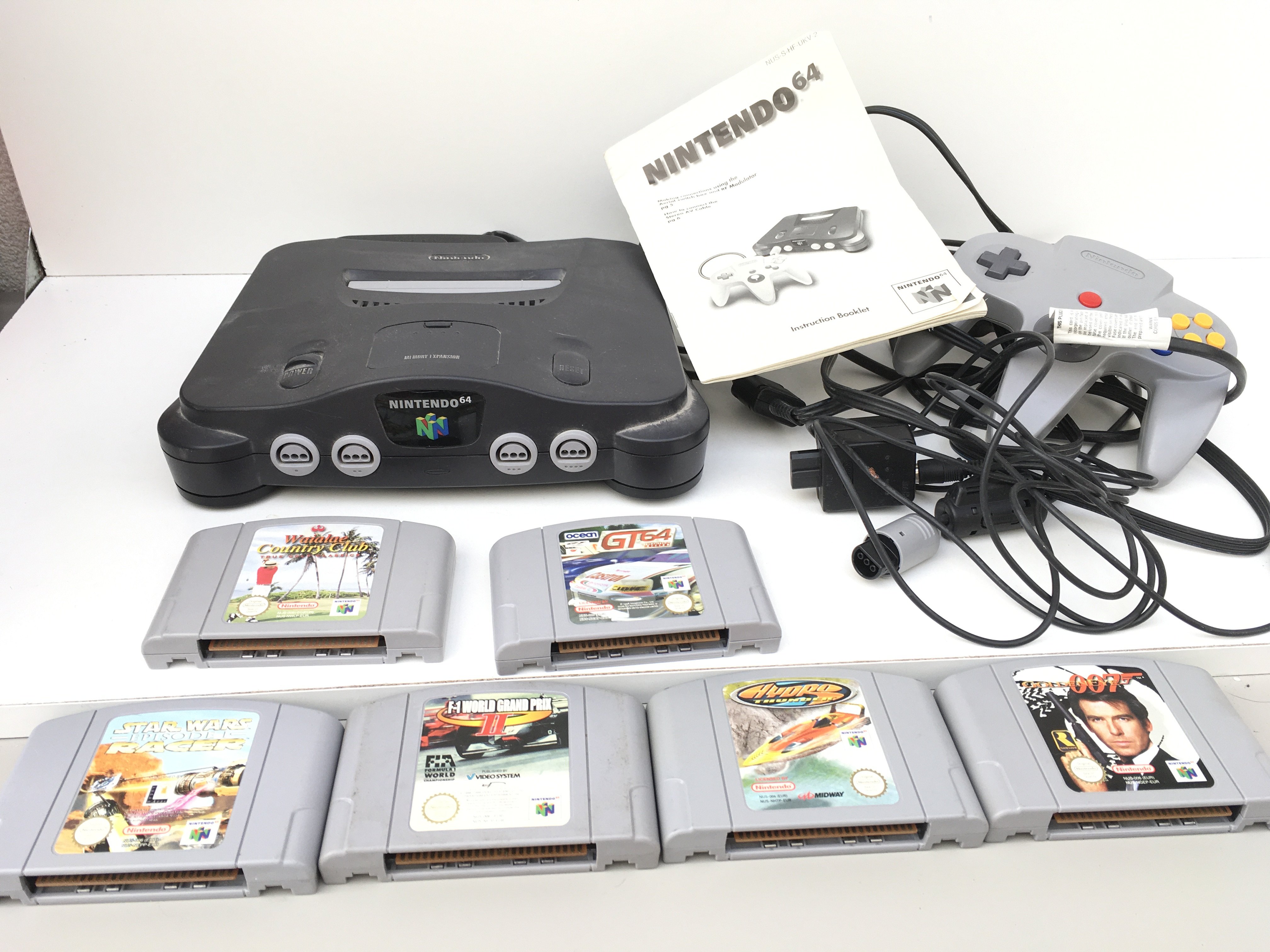 A boxed Nintendo 64. Includes controller..cables..manual..games cartridges. No reserve
