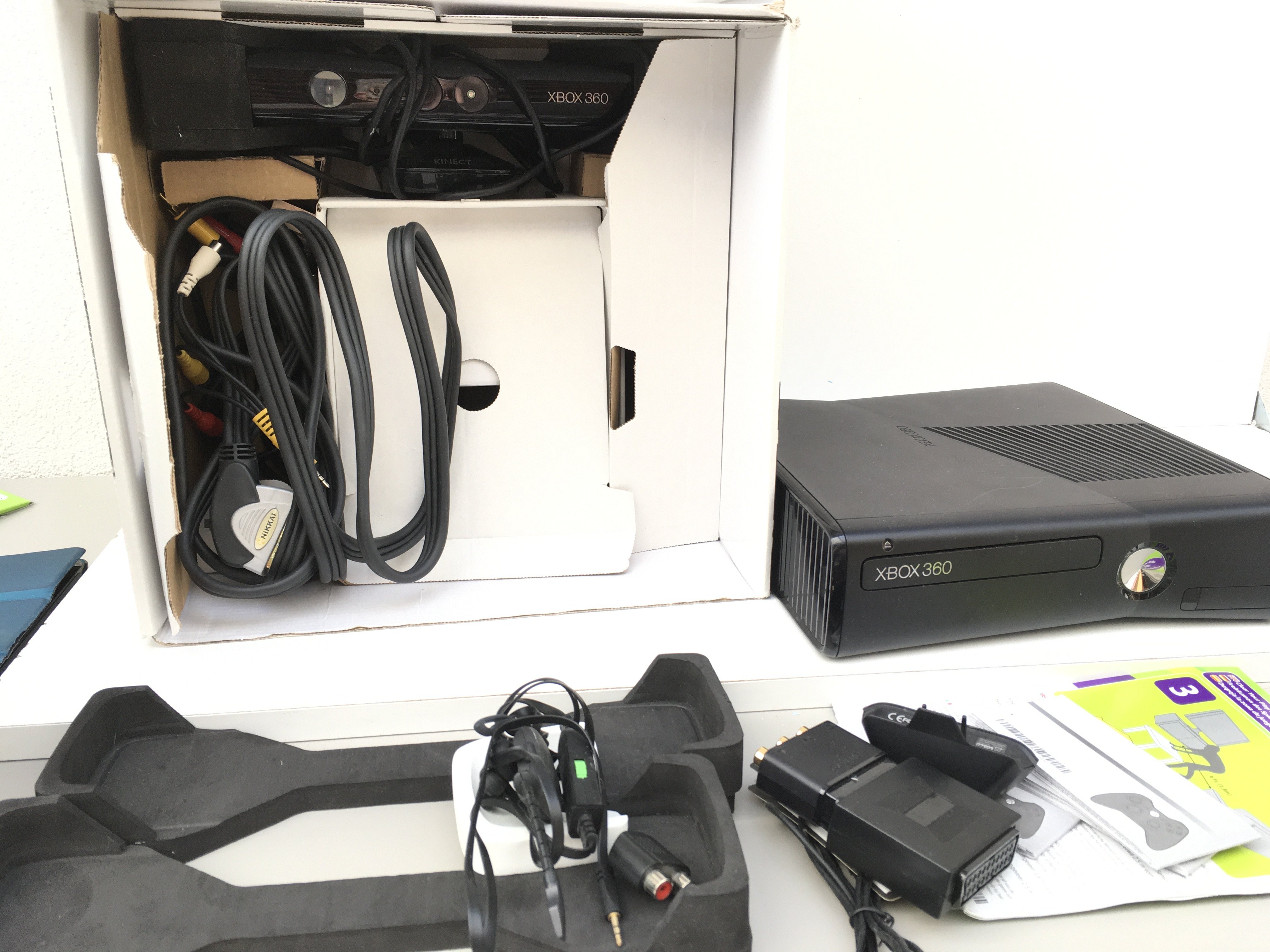 A boxed XBOX 360 250GB. KINECT. Includes manual..cables..sensor. No reserve