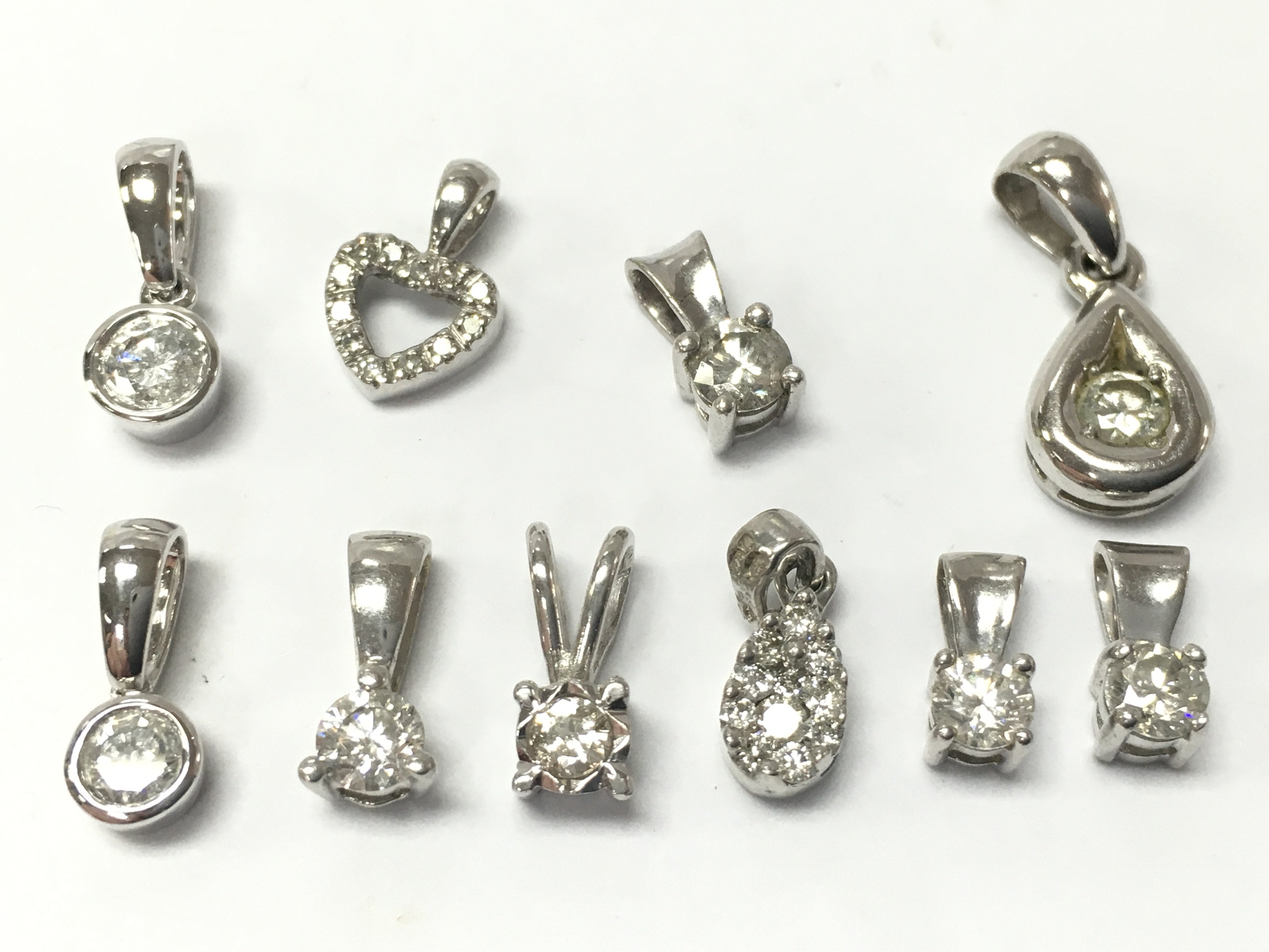 A collection of 9 ct white gold diamond solitaire pendants , 4.9g total weight. Postage category A