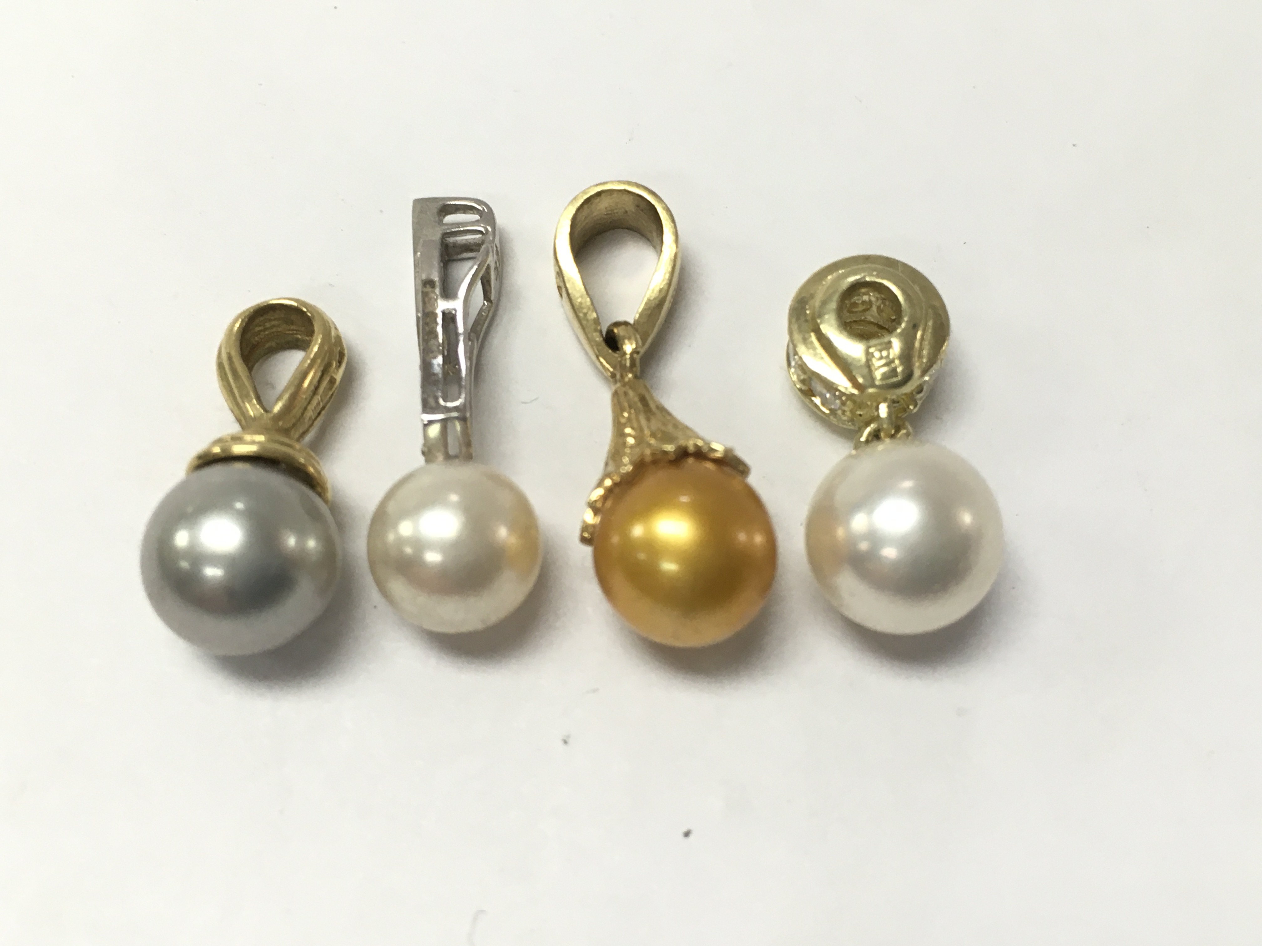 14ct and 18ct gold Simulated pearl pendants , 5.4g total weight