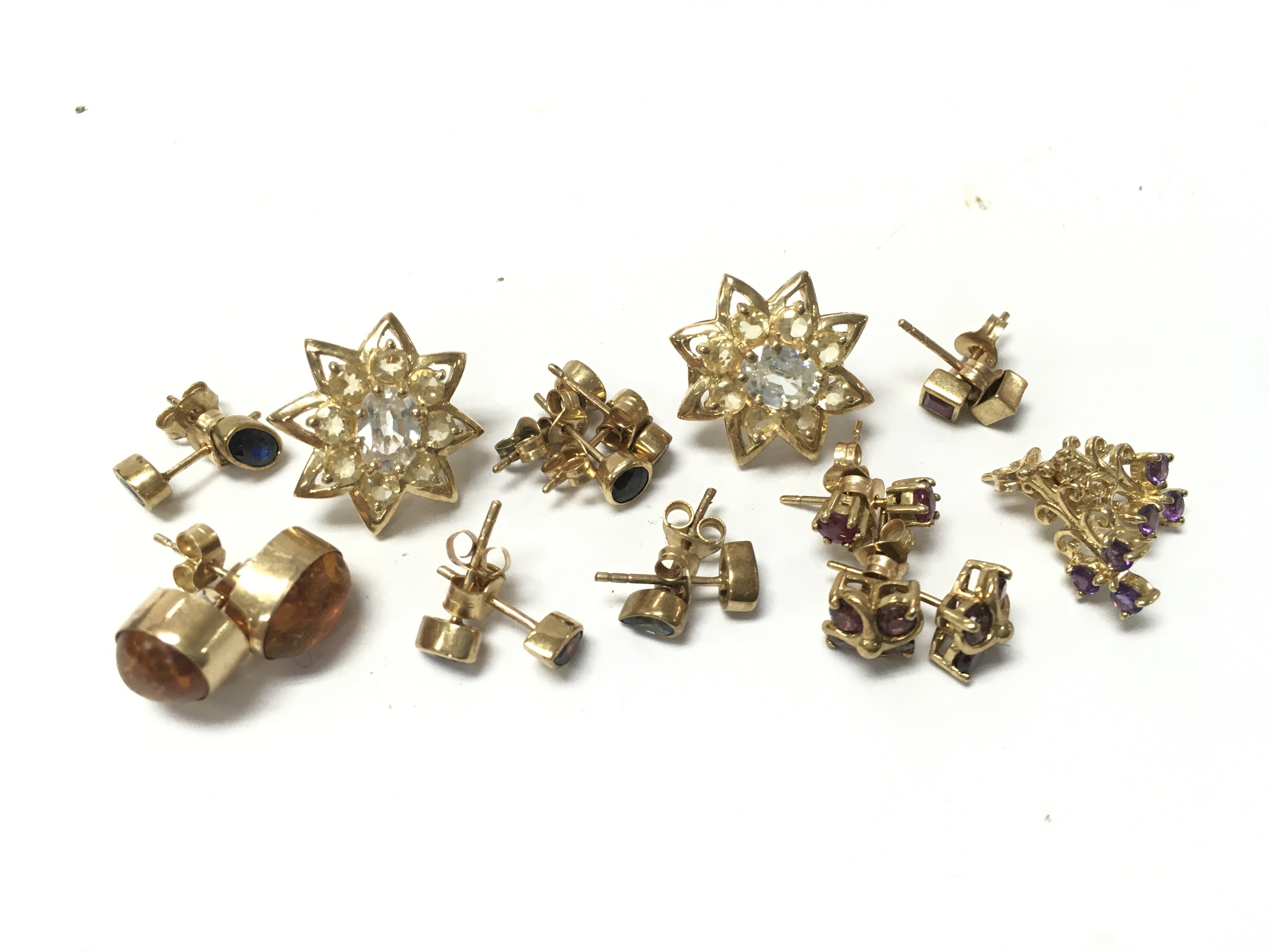 A collection of 9ct gold earrings. 15.4g total weight Postage category A