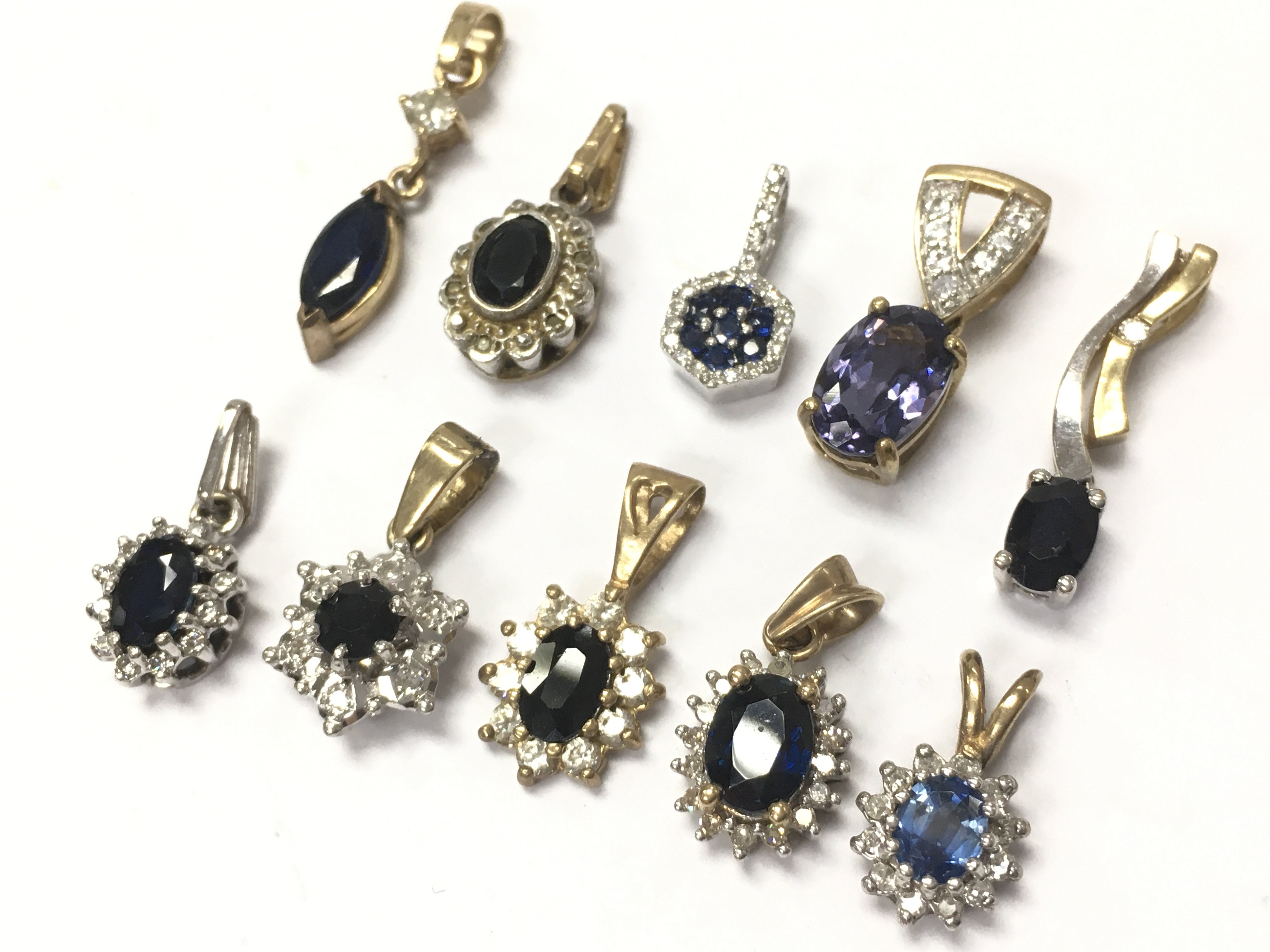 9ct gold mixed diamond and sapphire pendants. Total weight 11g Postage category A