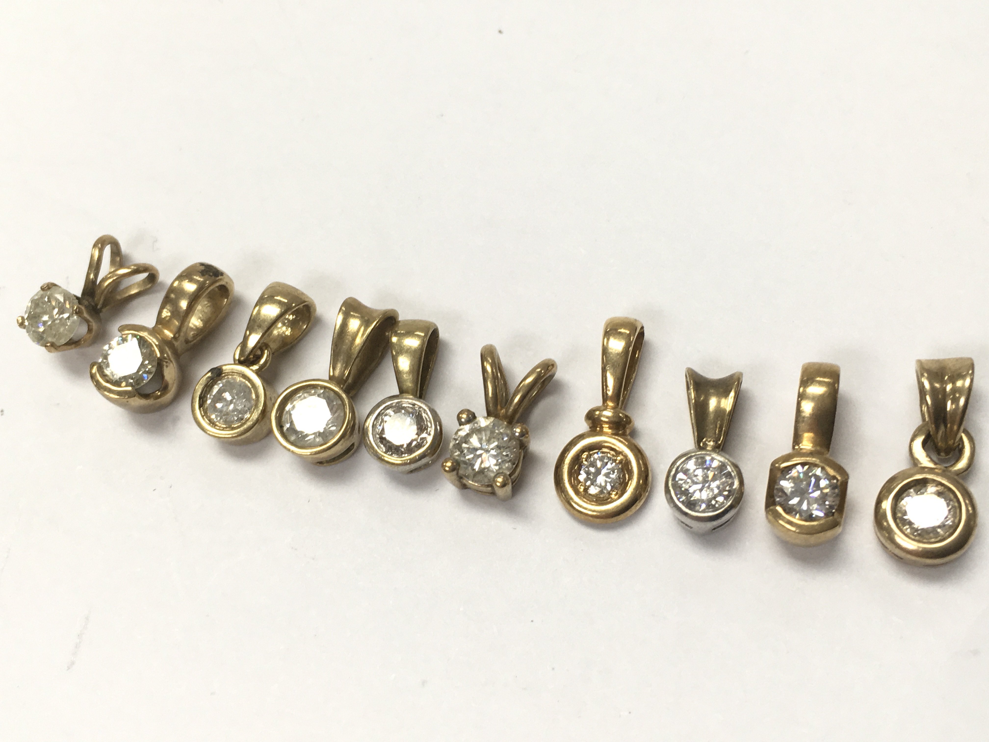 9ct gold Diamond solitaire pendants , Total weight 6.3g . Postage category a