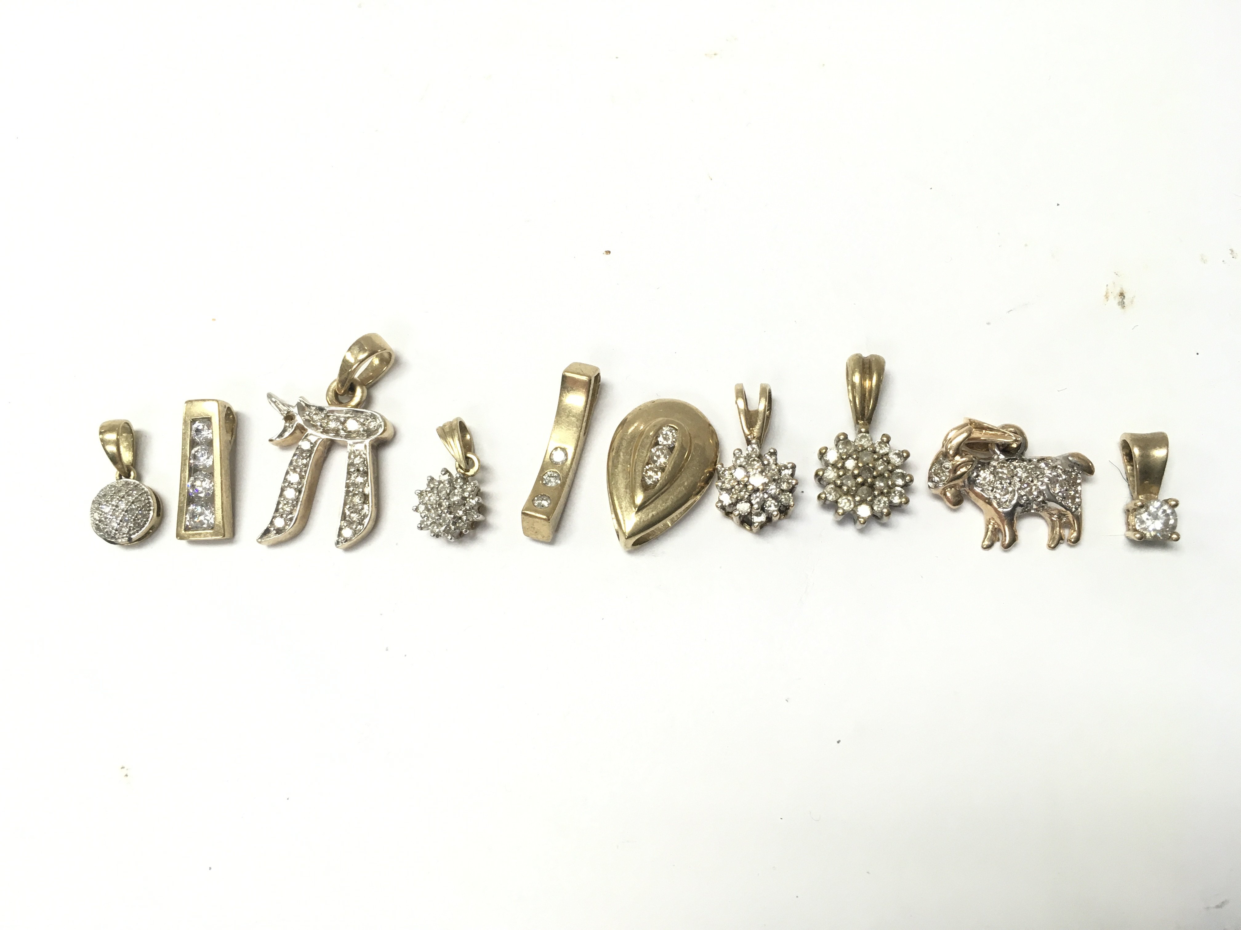 9 carat gold and diamond set pendants , Total weight 10.9g. Postage category a