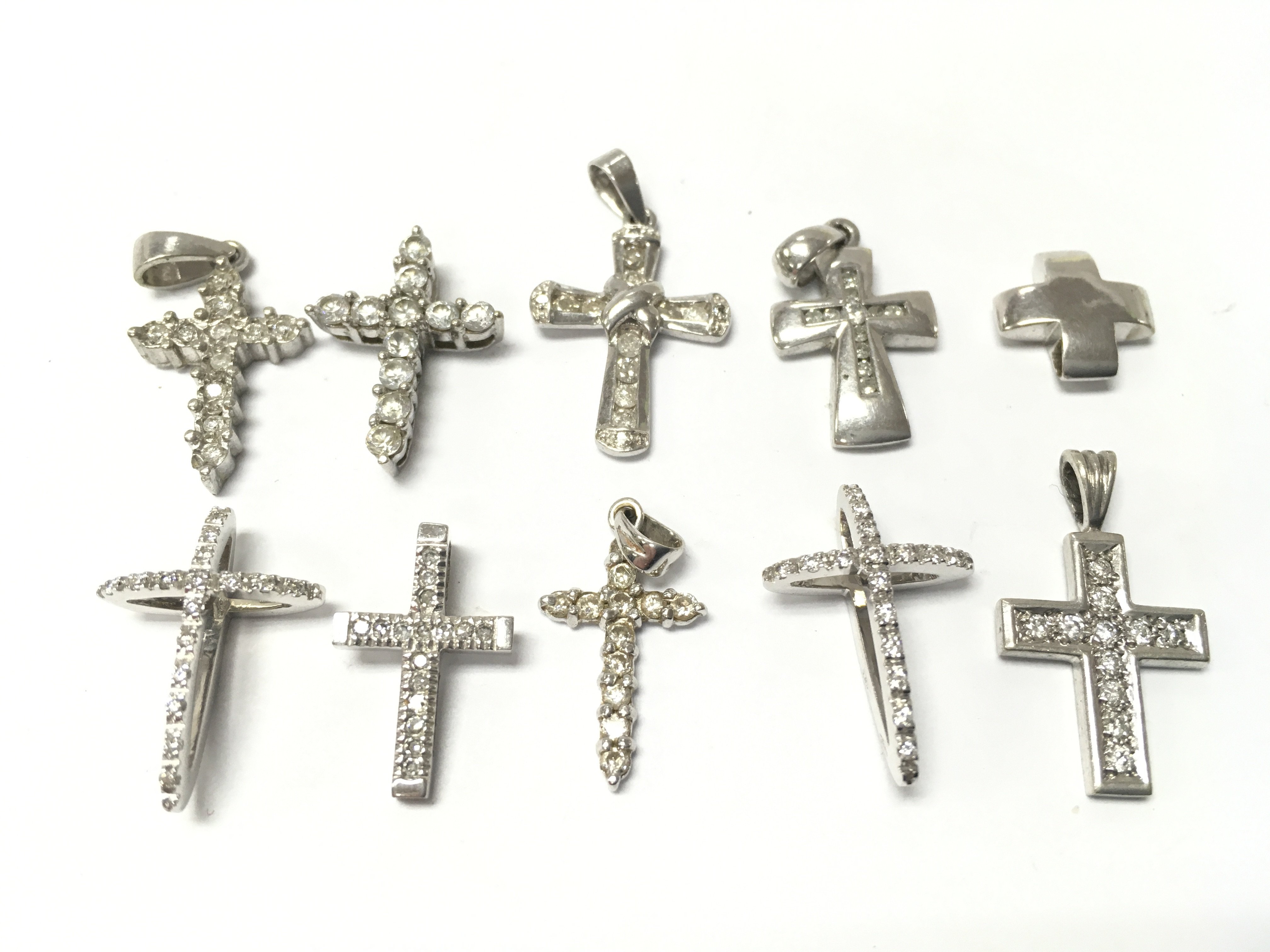 9ct And 18ct White gold cross pendants set with small diamonds, 12.6g total weight . Postage category A