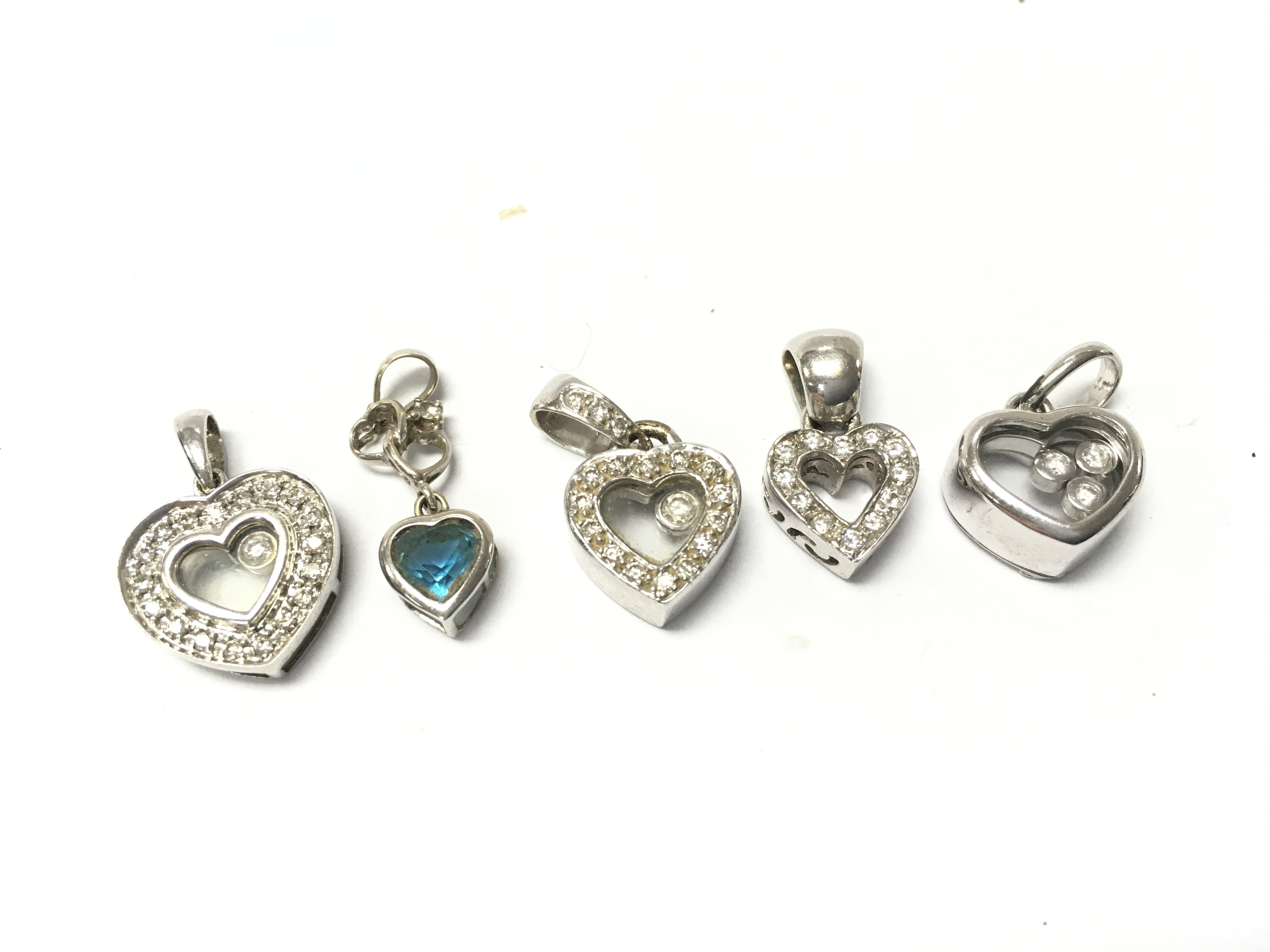 A collection of 18ct white gold heart pendants, 12.5g total weight. Postage category A