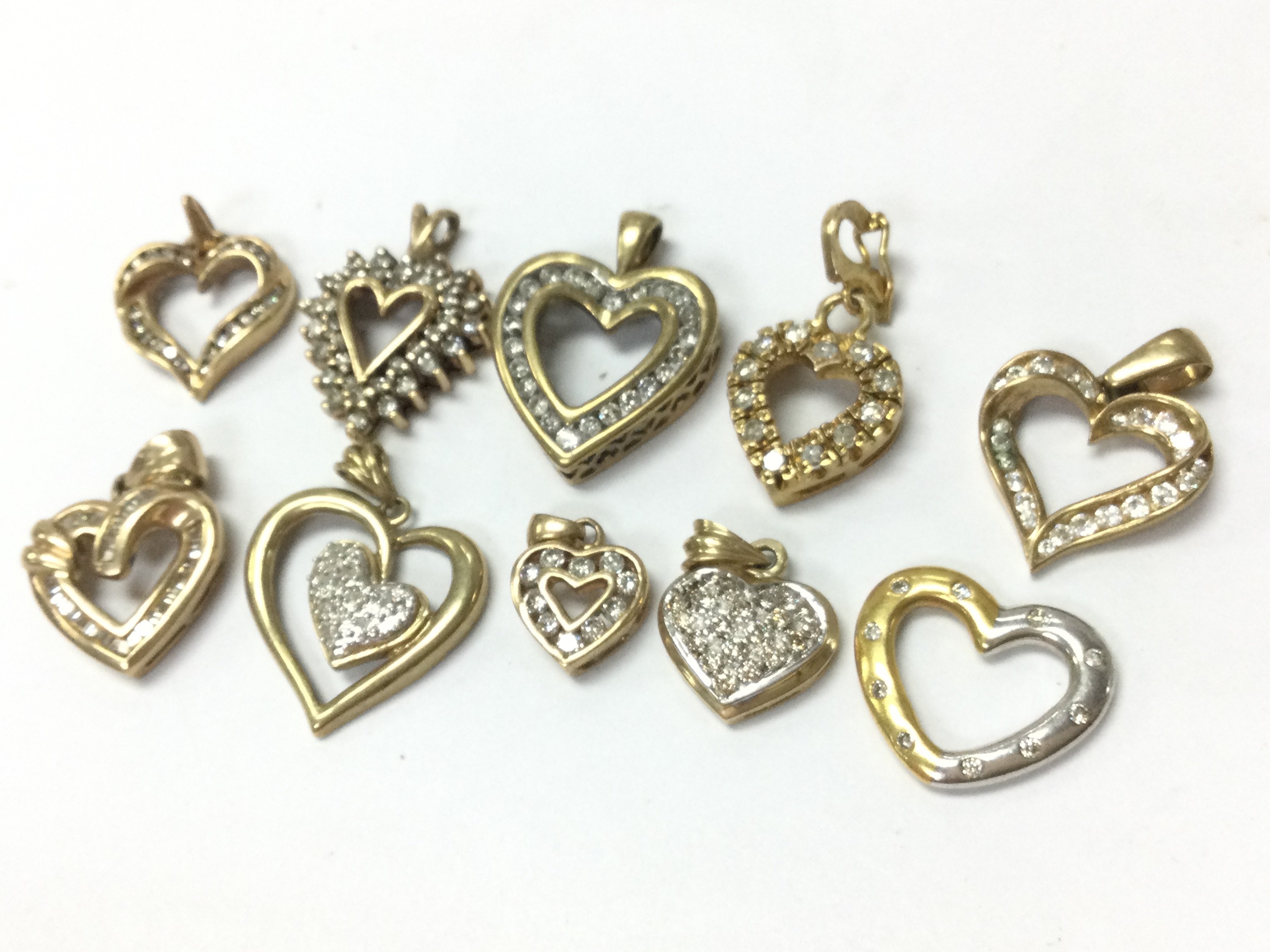 9ct diamond heart pendants , 21.1g total weight, postage category A
