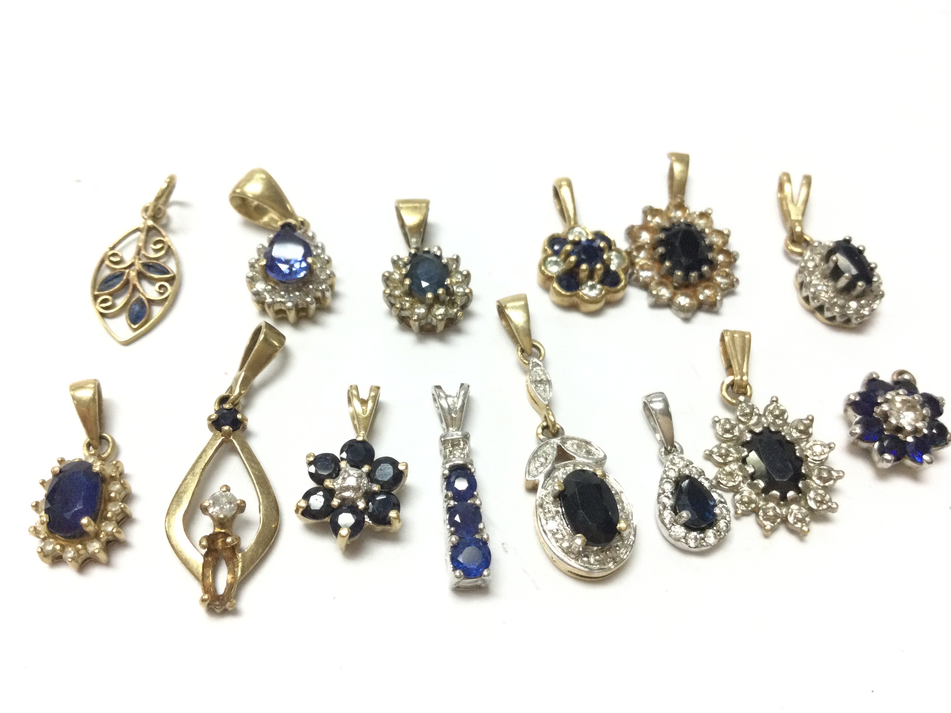 9ct Gold Sapphire and diamond set pendants , 11.3G total weight. Postage category A