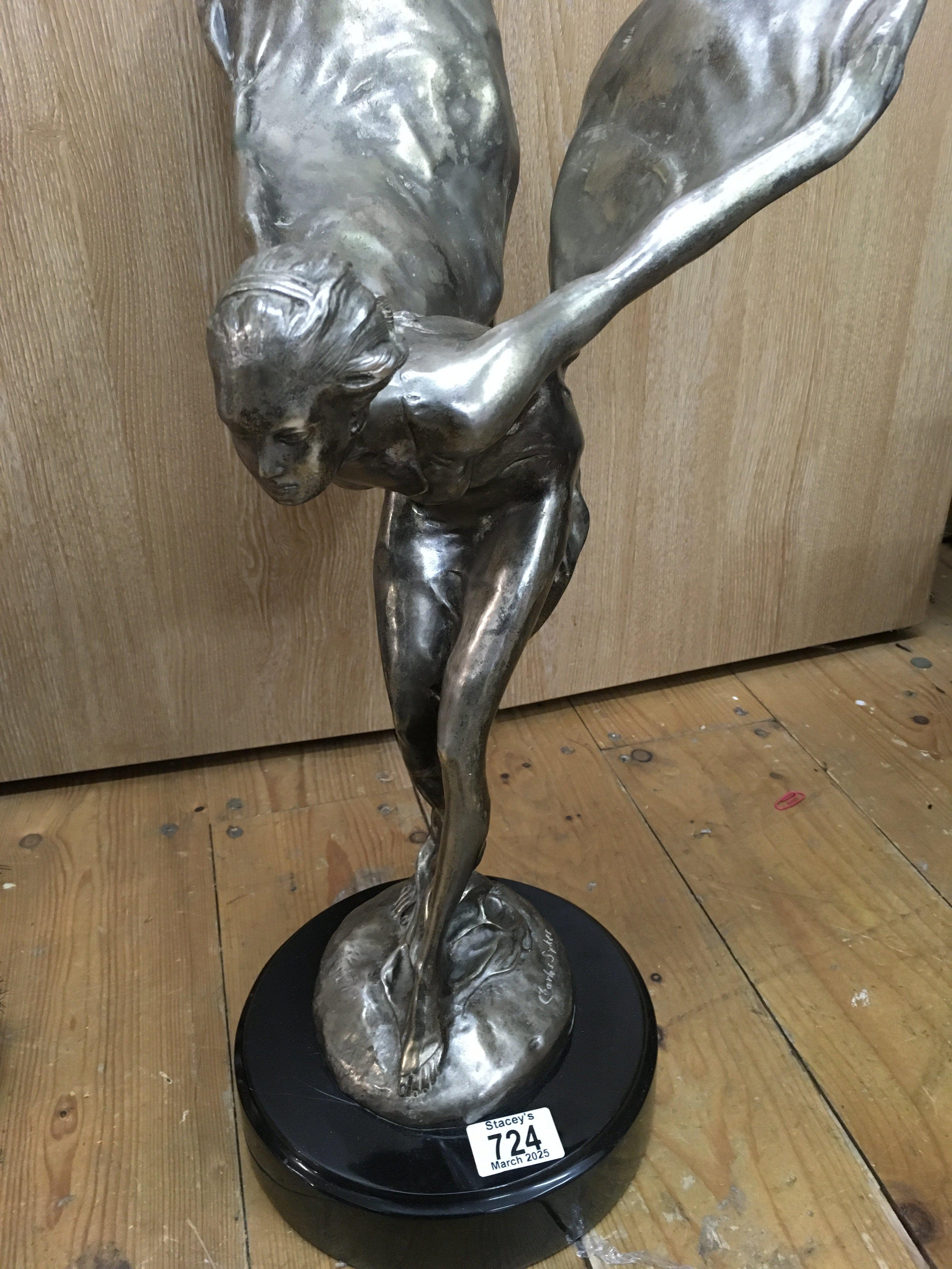 A large figure of the Spirit of Ecstasy . On a marble base .