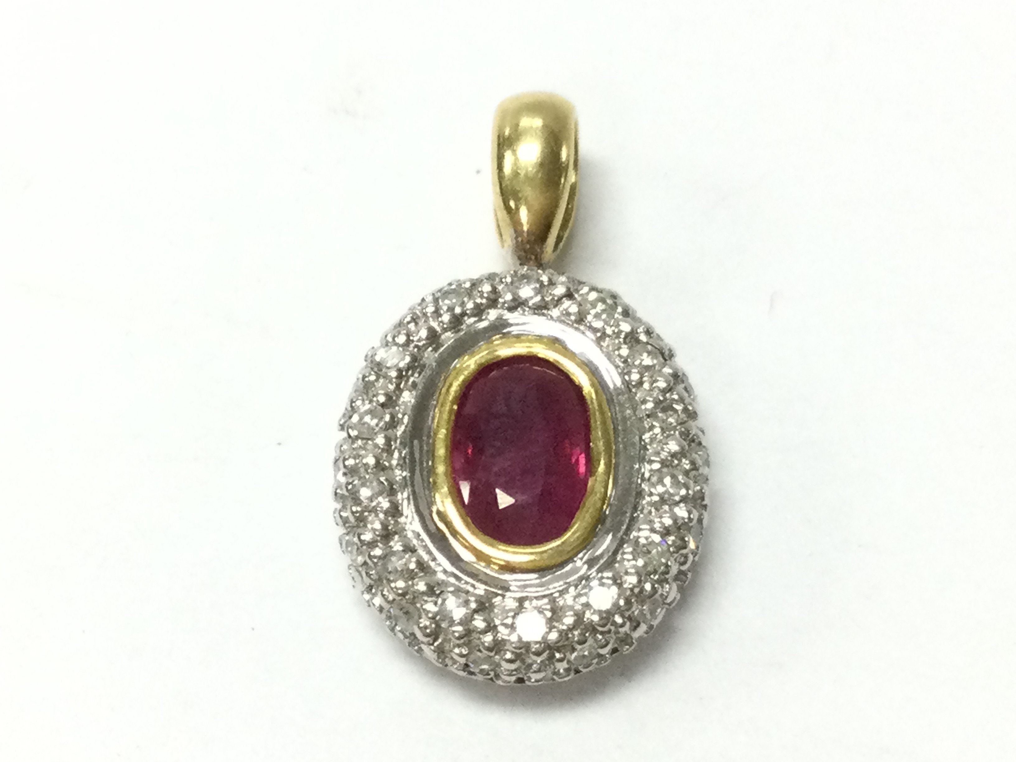 An 18ct gold ruby and diamond cluster pendant 2.49g. Postage category A