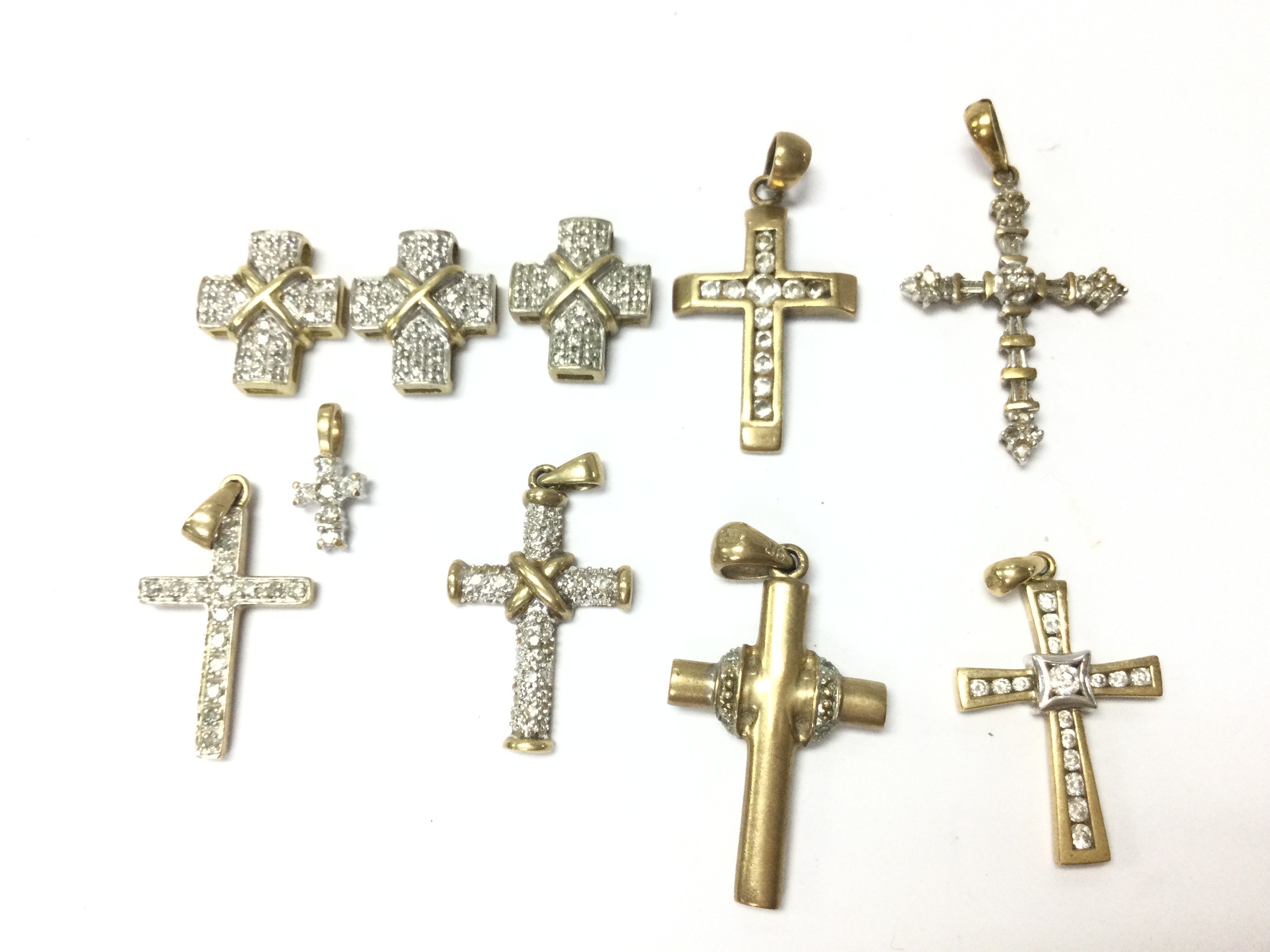 9ct gold mixed diamond crosses , 13.1g total weight. Postage category A