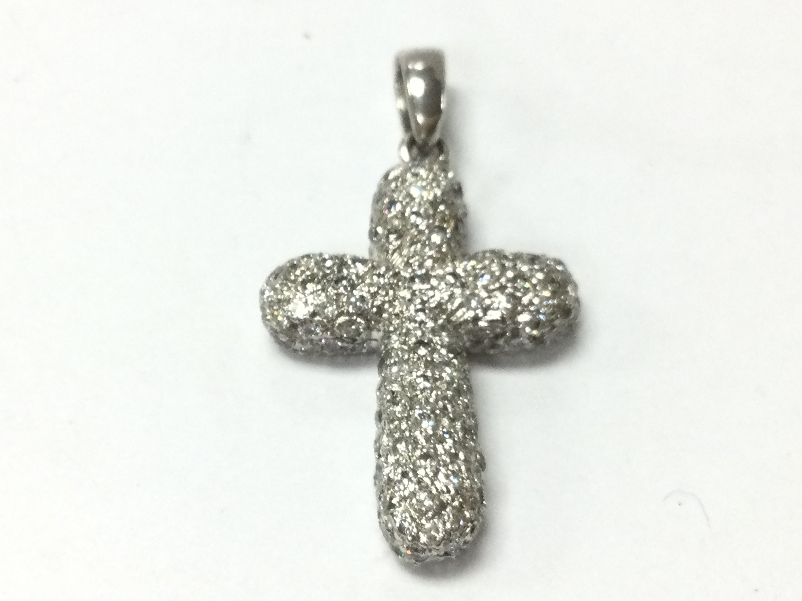 A 9ct white gold diamond cluster cross pendant, 3.3G total weight. Postage category A