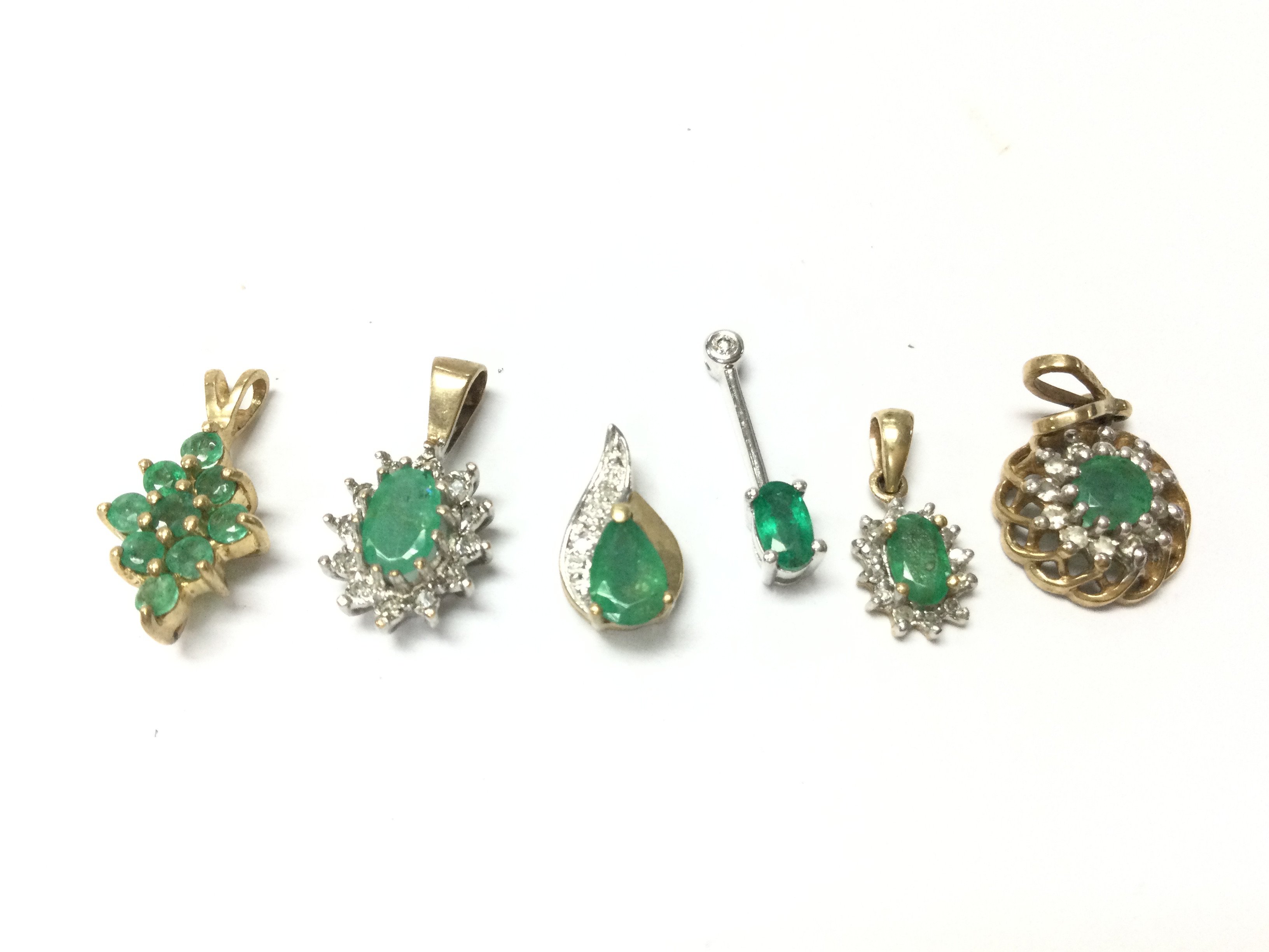 9ct gold Diamond and emerald pendants , 4.3G total weight. Postage category A