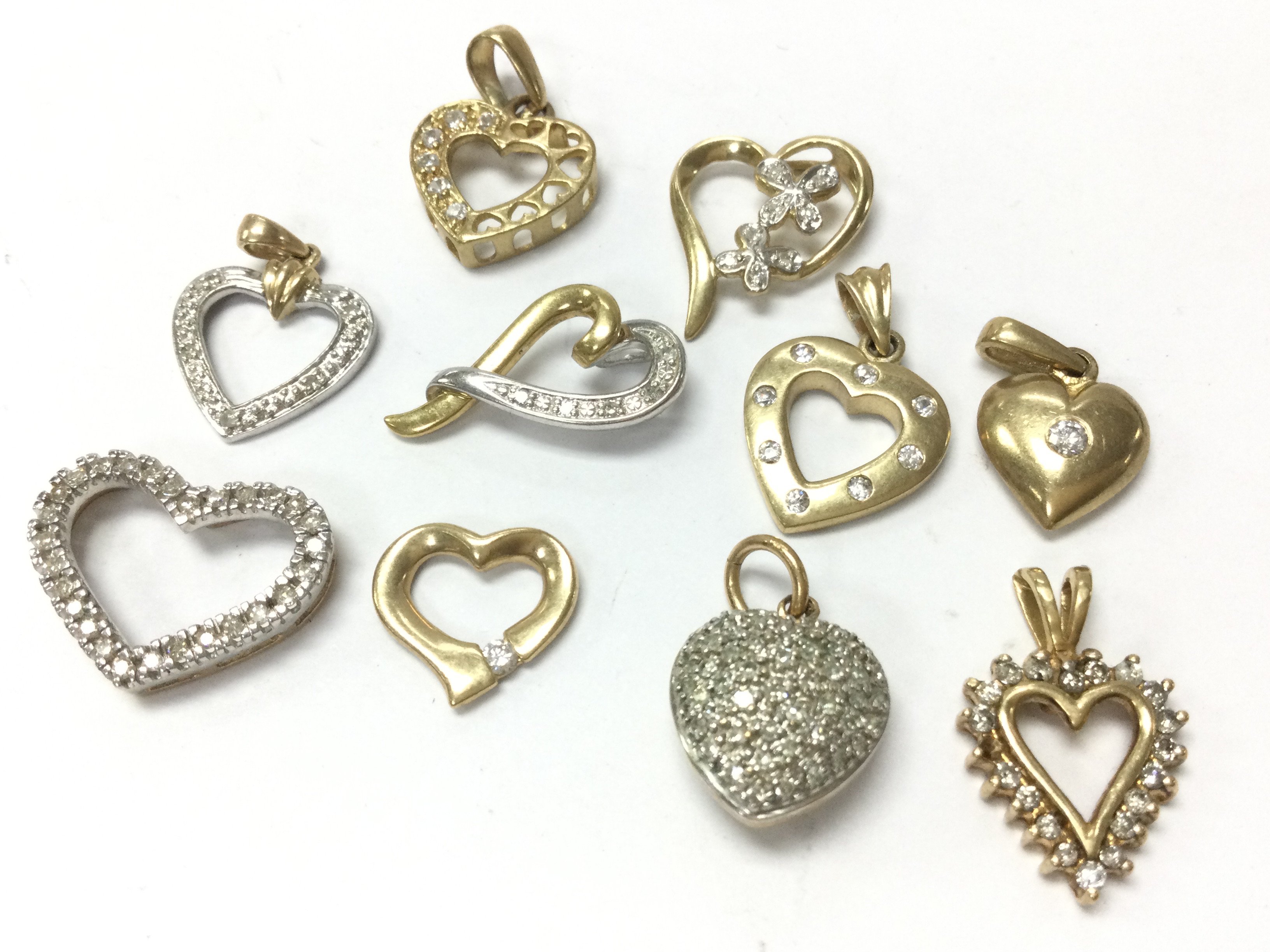9ct Gold heart pendants set with diamond stones , 12.5g total weight. Postage category A