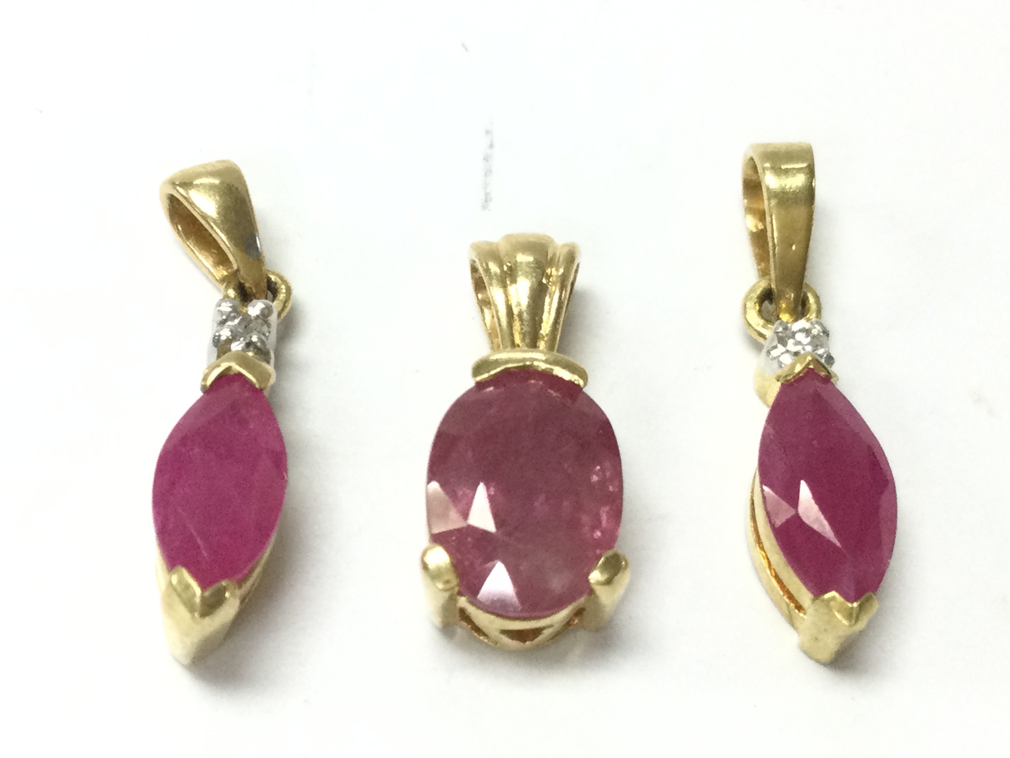18ct gold ruby pendants set with small diamond stones, 3.63g total weight . Postage category A.