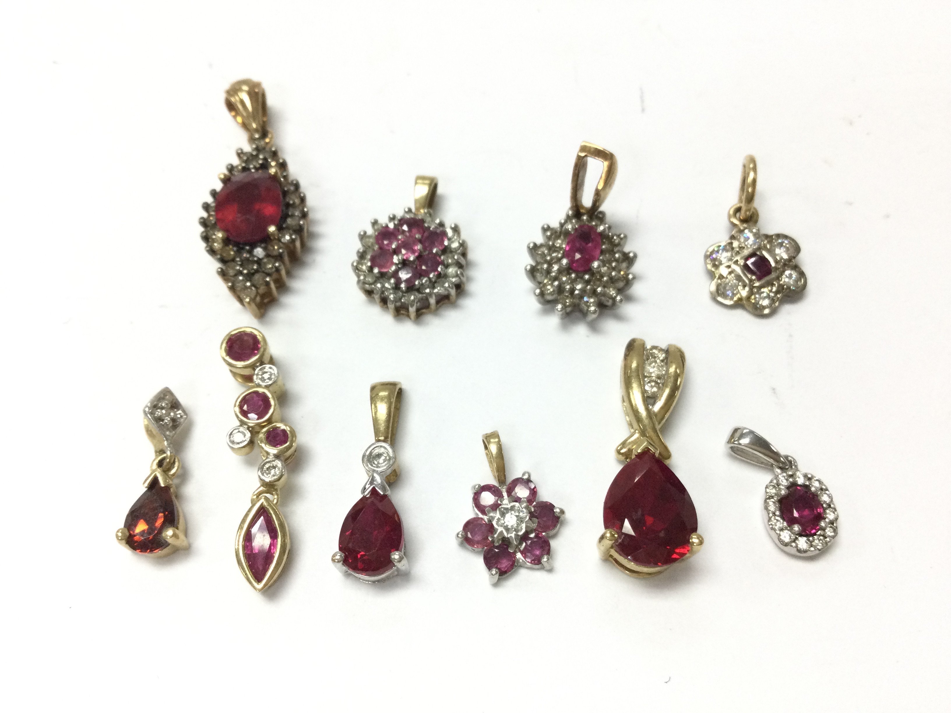 9ct gold ruby and diamond set pendants , 11g total weight. Postage category A