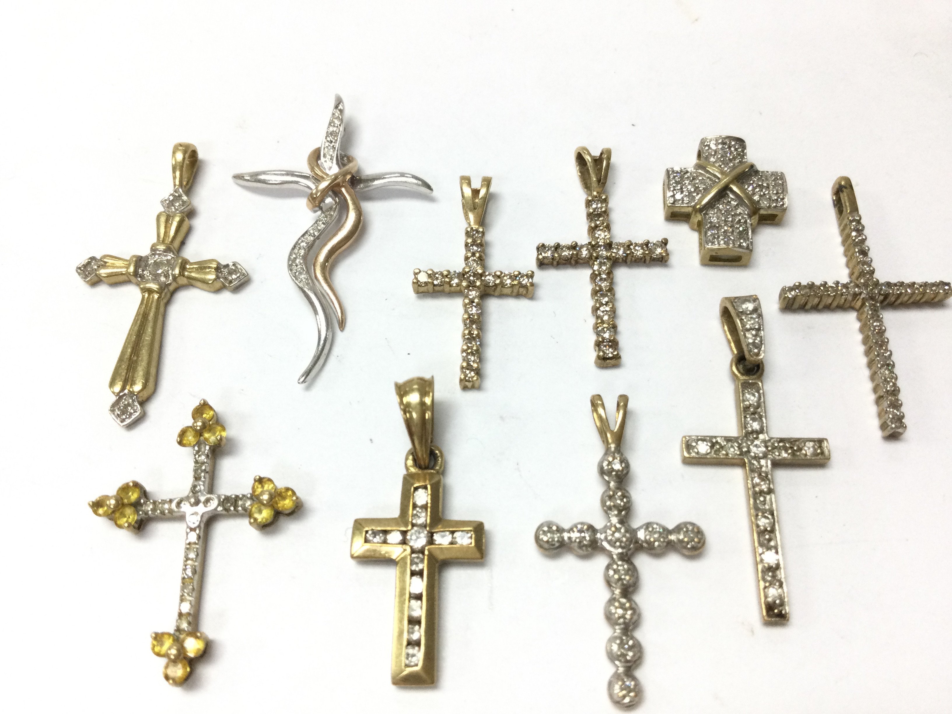 9ct gold cross pendants set with diamond stones , 11.9g total weight. Postage category A