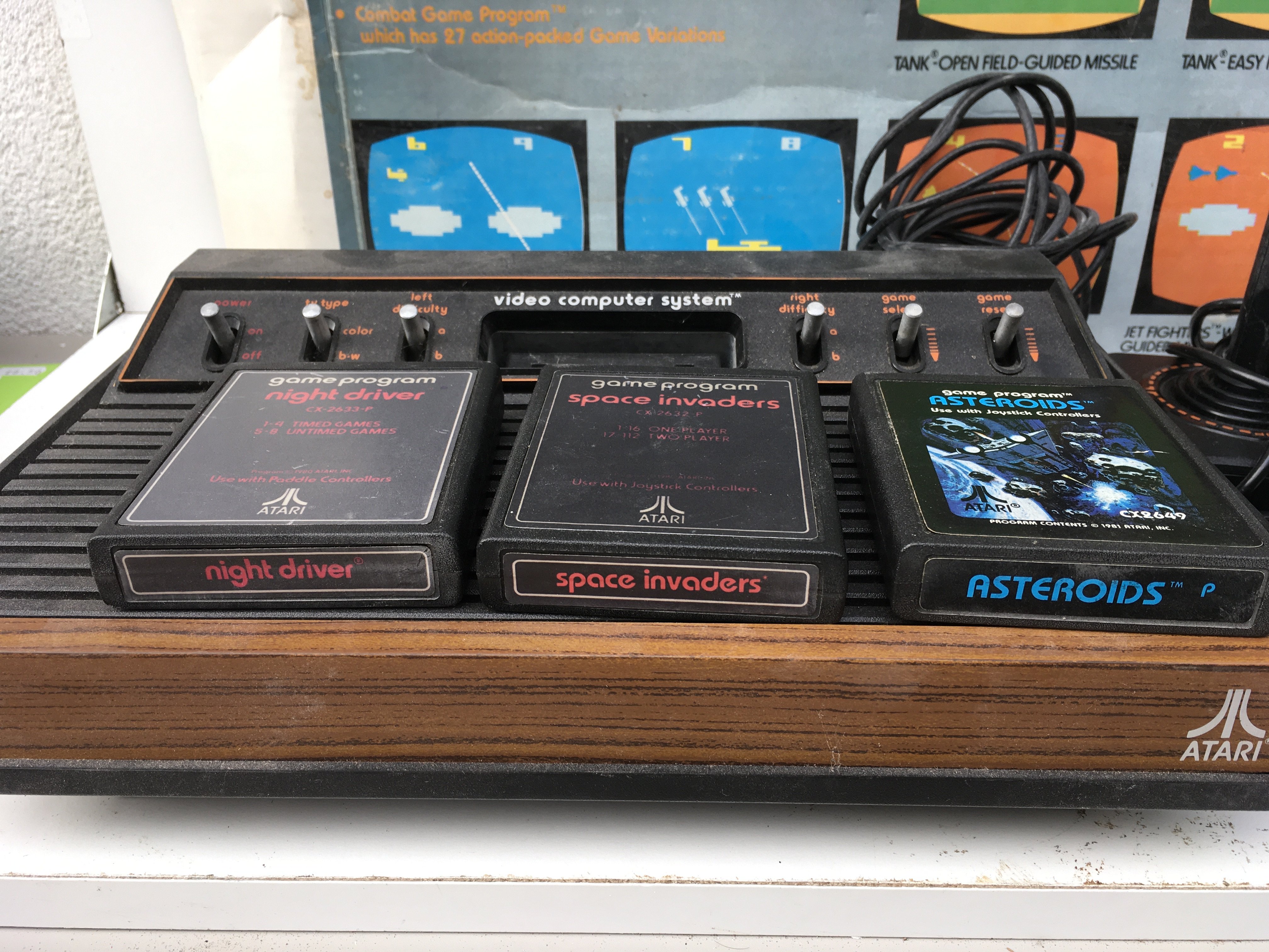 A Atari Video Computer System model CX-2600. Includes joysticks..paddles ..cables..power supply and 3 games cartridges. No reserve
