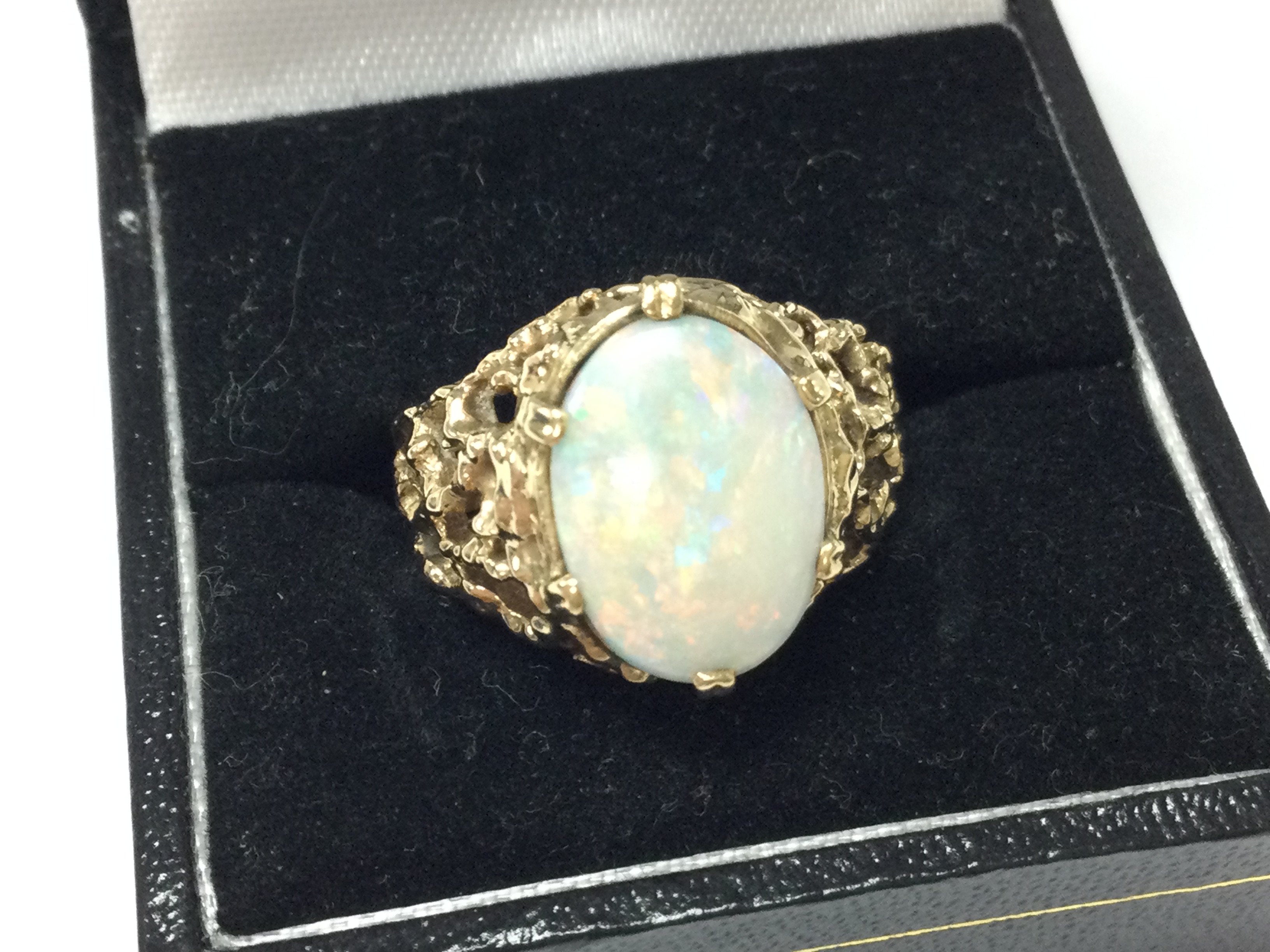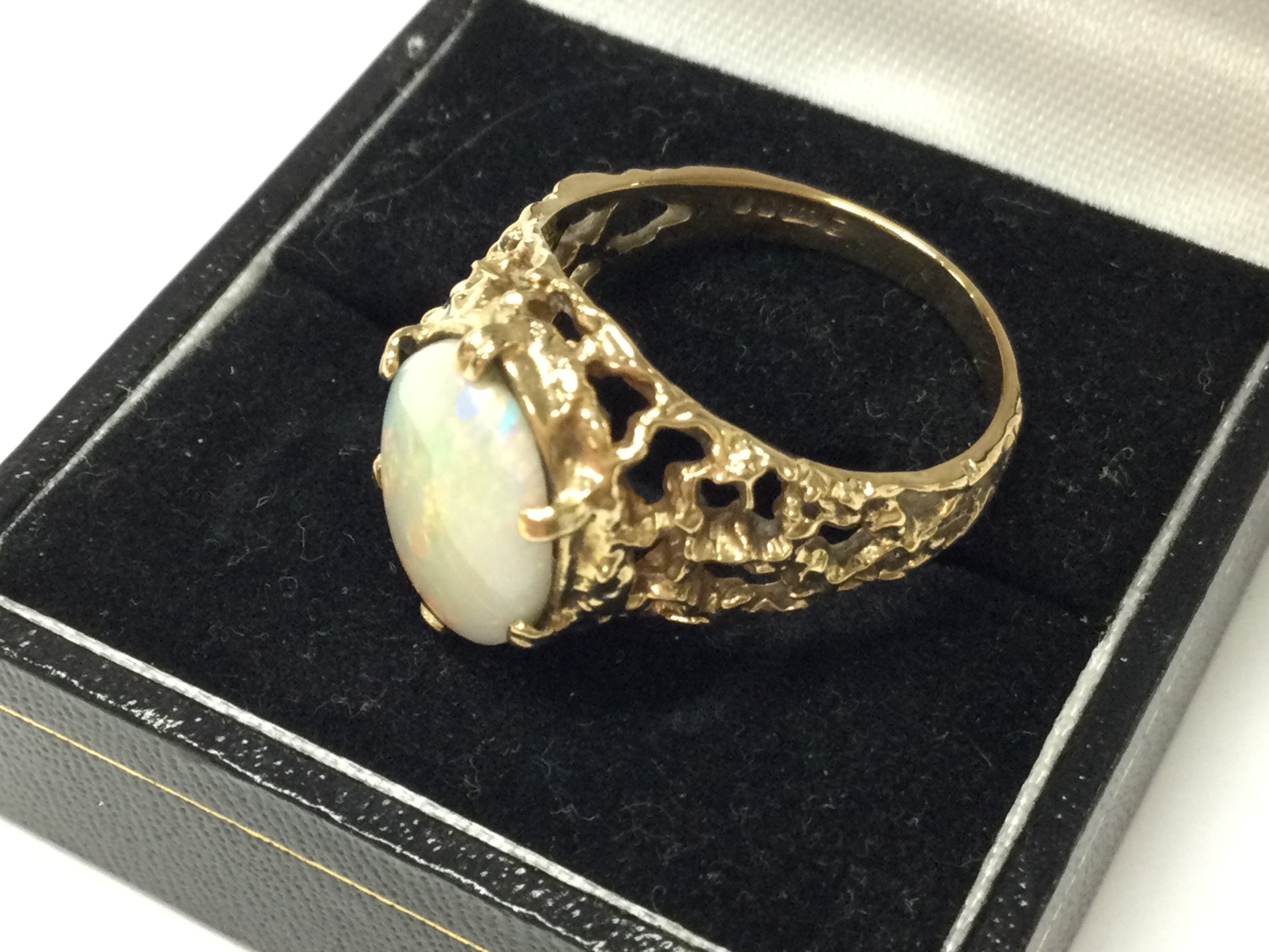 A 9ct gold opal ring, 4g total weight . Size N/O. Postage category A