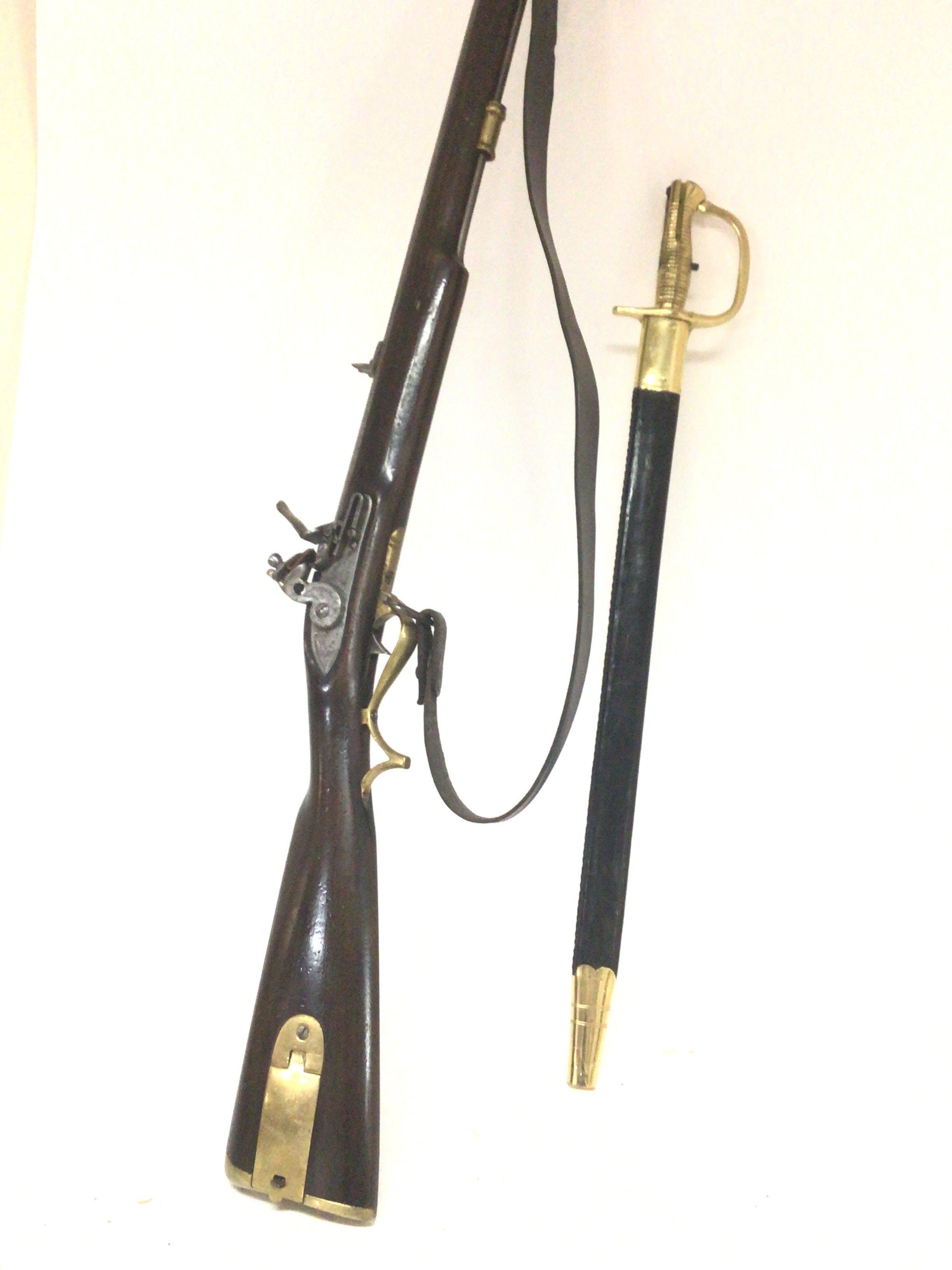 A replica Tower Flint lock Rifle Musket with brass fittings and steel barrel the flintlock action with Tower Proof marks sold with a bayonet. PLEASE NOTE A FIREARMS LICENSE IS REQUIRED TO BUY THIS LOT VIEWING AND COLLECTION BY APPOINTMENT ONLY.