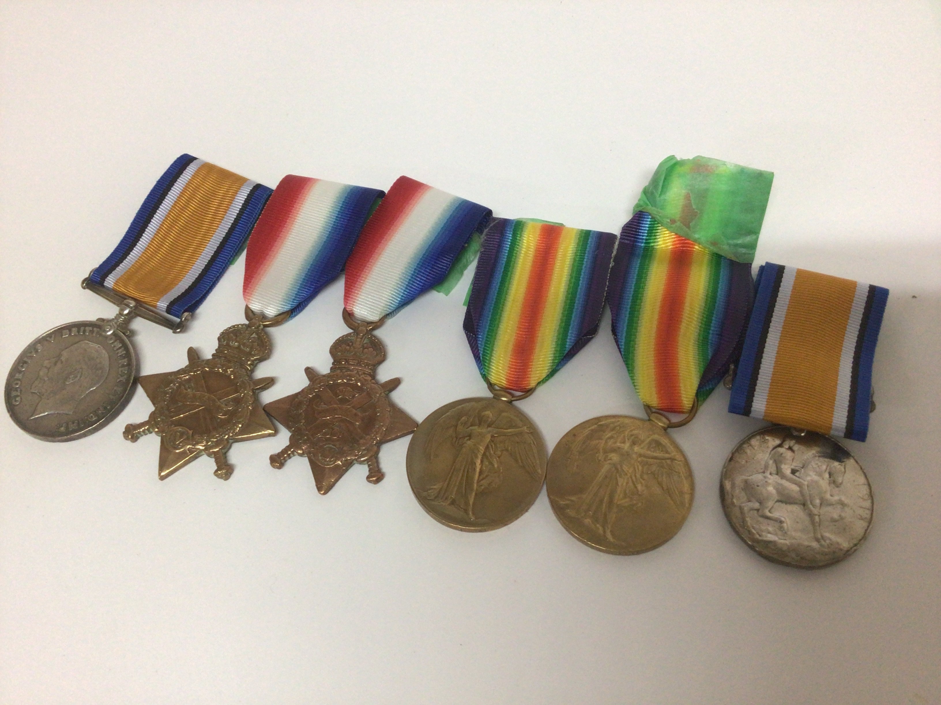 A collection of six I world war medals mixed recipients and worn edges. Recipients one medal S4 035878 awarded to SJT F.A May ASC 20499 PTE T Musgrave North D Fus 7668 Pte W H Edward’s Lincs R A20690 SJT JC Edwards 10-Lon 10317 Pte F C Edwards 2/York and one worn edges. (6)