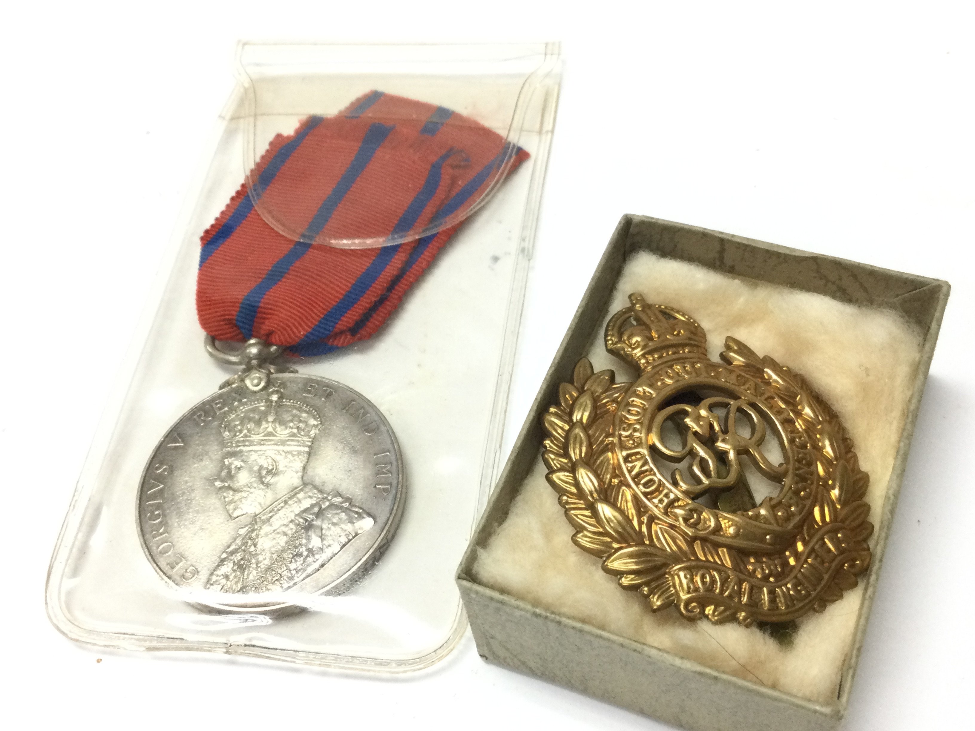 A royal engineers cap badge and a 1911 Metropolitan Police Coronation 1911 medal . Postage category A