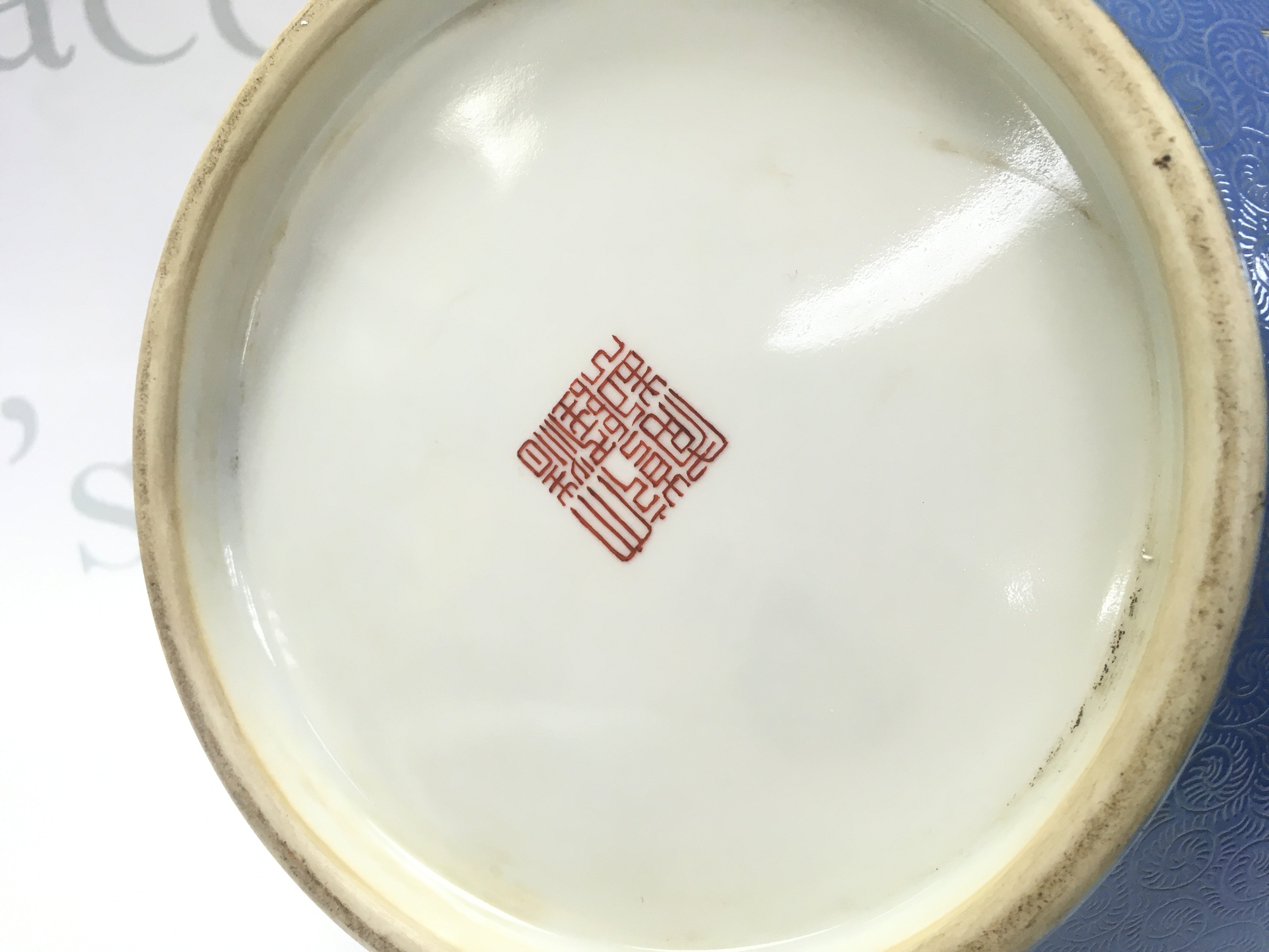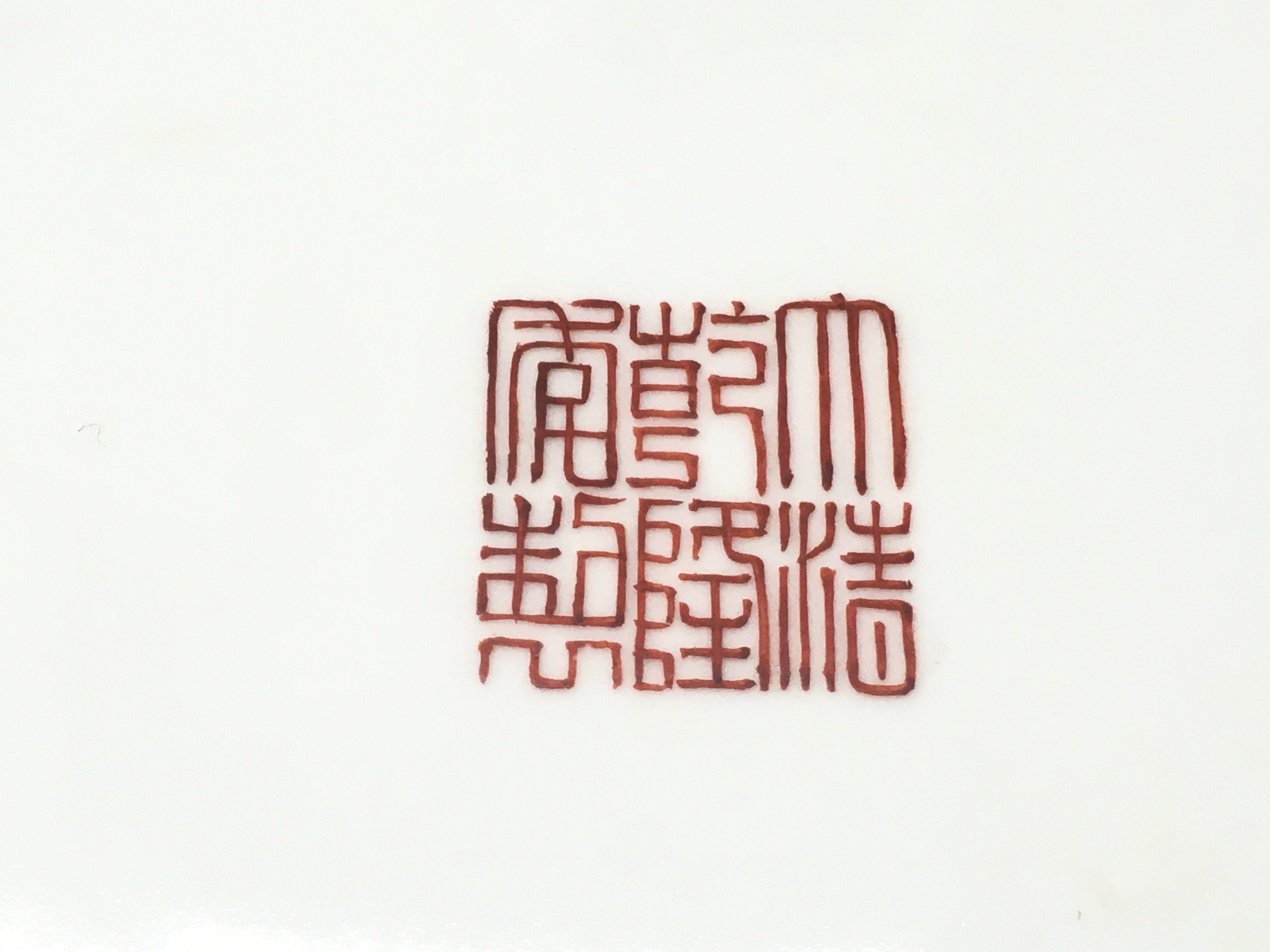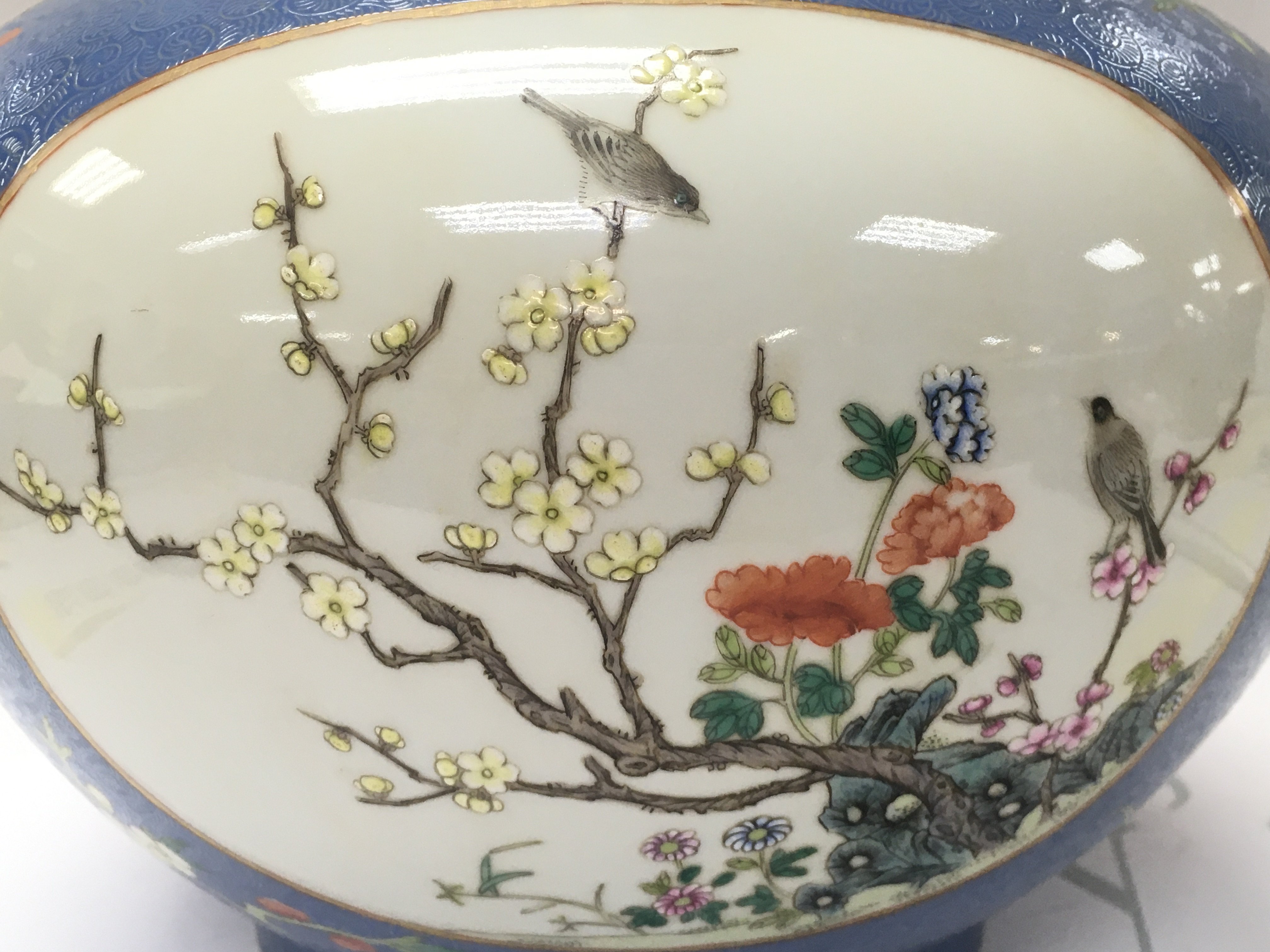 A Chinese Qianlong marked vase with hand painted panel design of birds and flowers. No obvious damage or restoration, some flaws in the glaze. 35cm tall. This lot cannot be posted