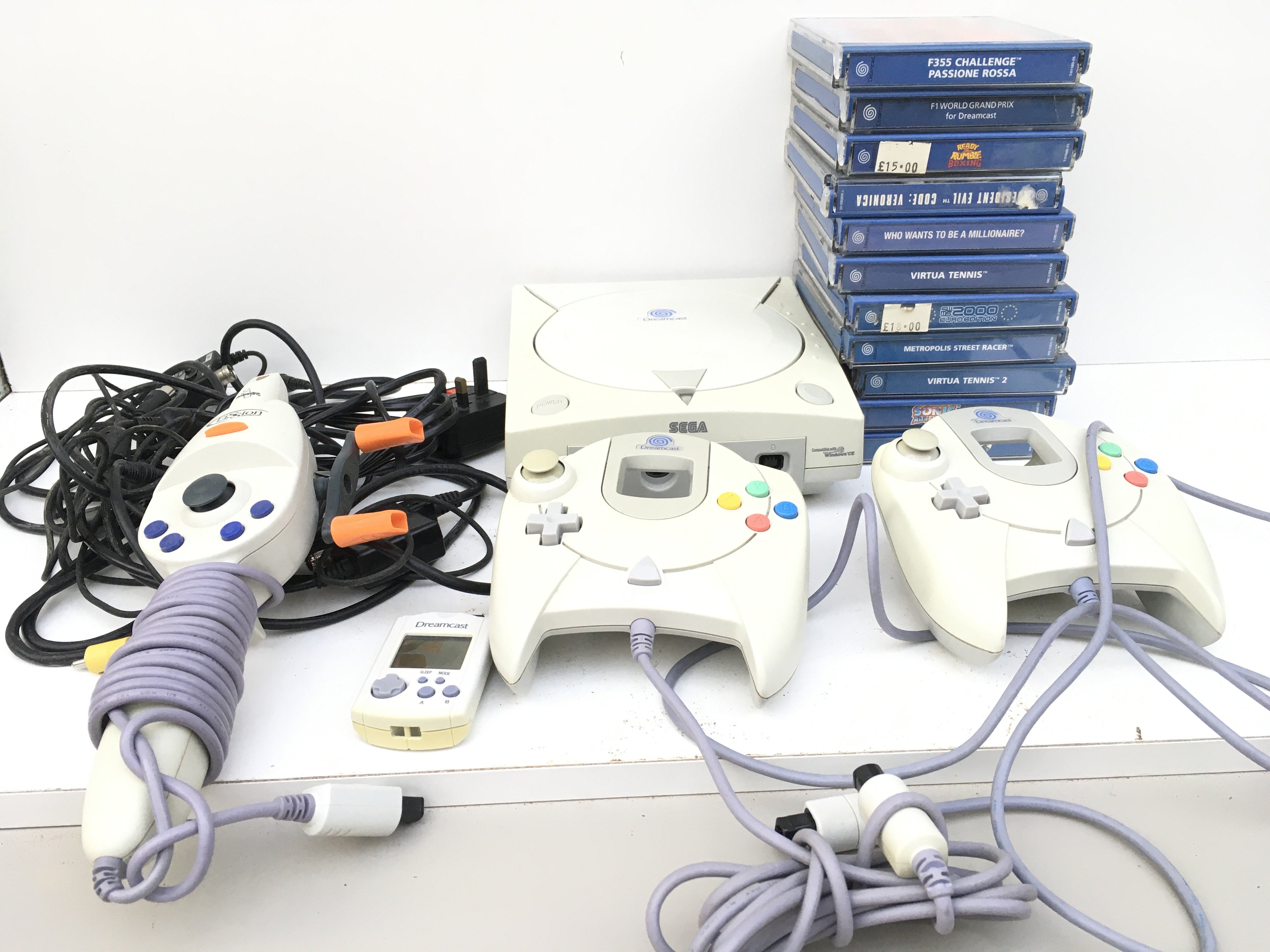 A SEGA DREAMCAST. Includes controllers ..a Fission controller..cables and numerous boxed games. No reserve.