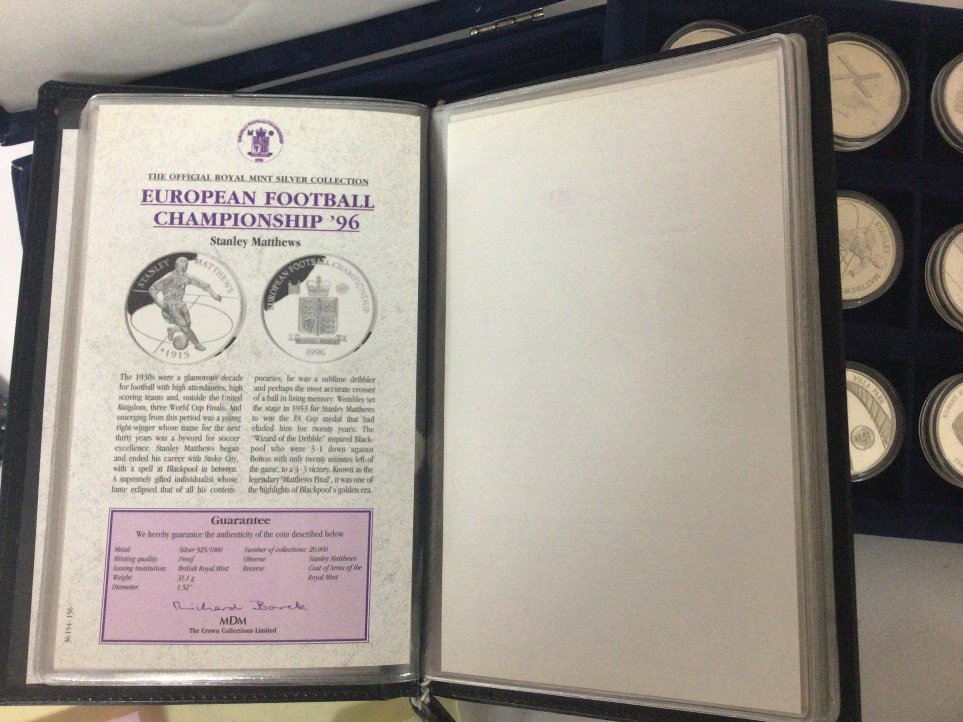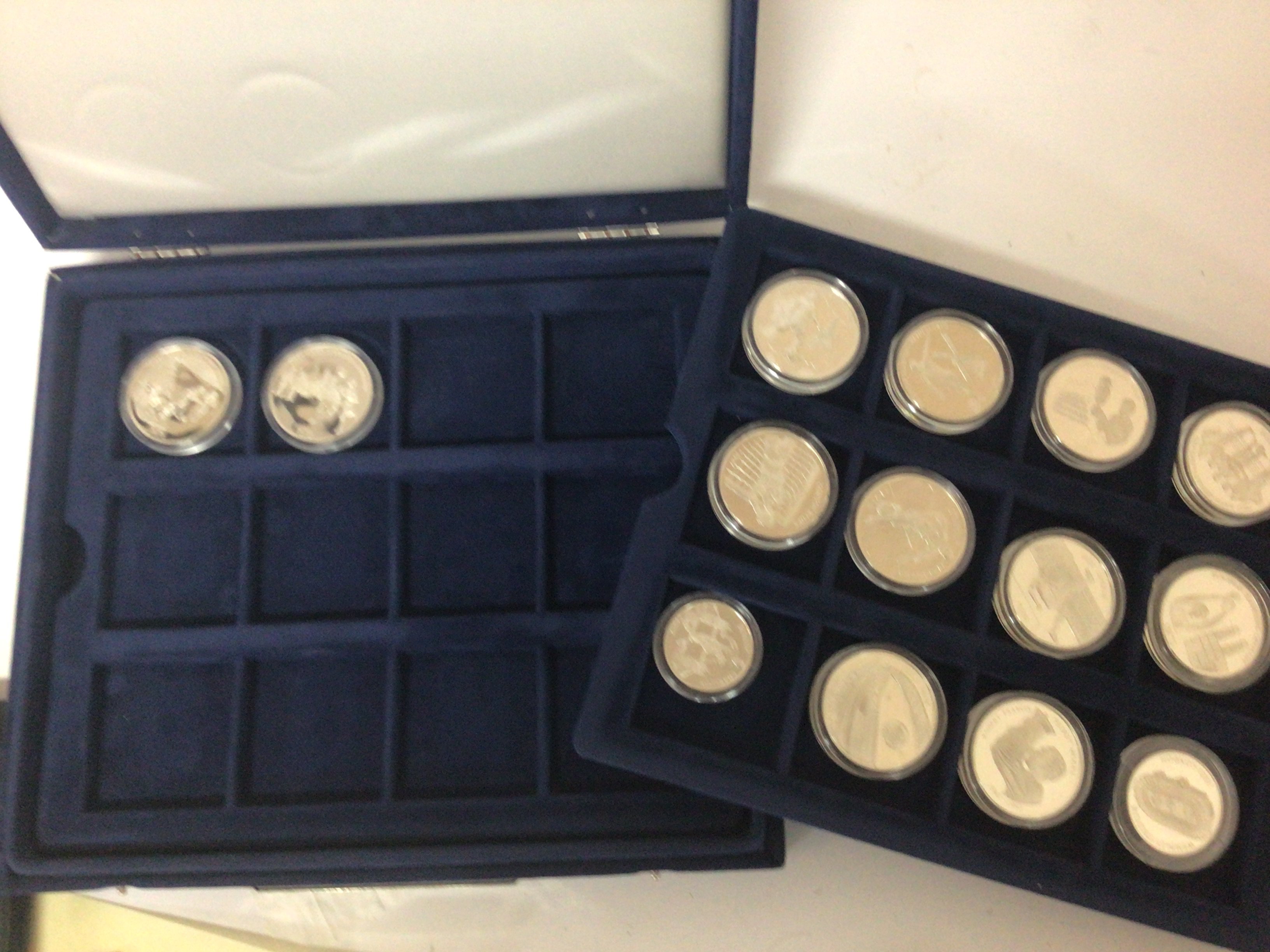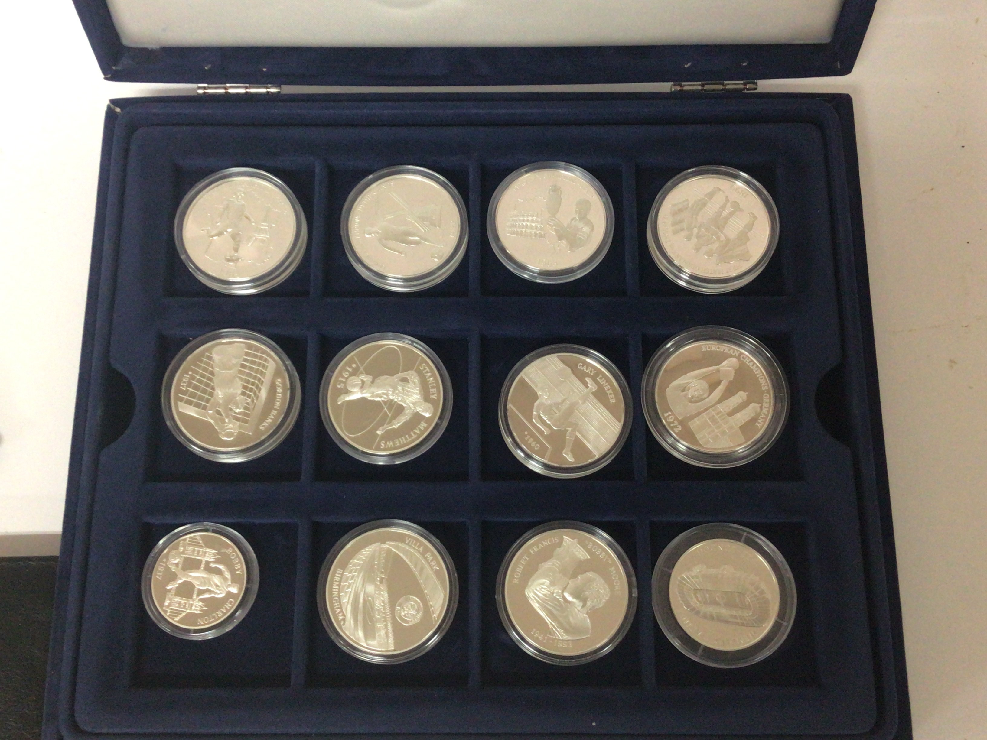 A case containing silver proof coins European Football champions. Fourteen coins with certificates.