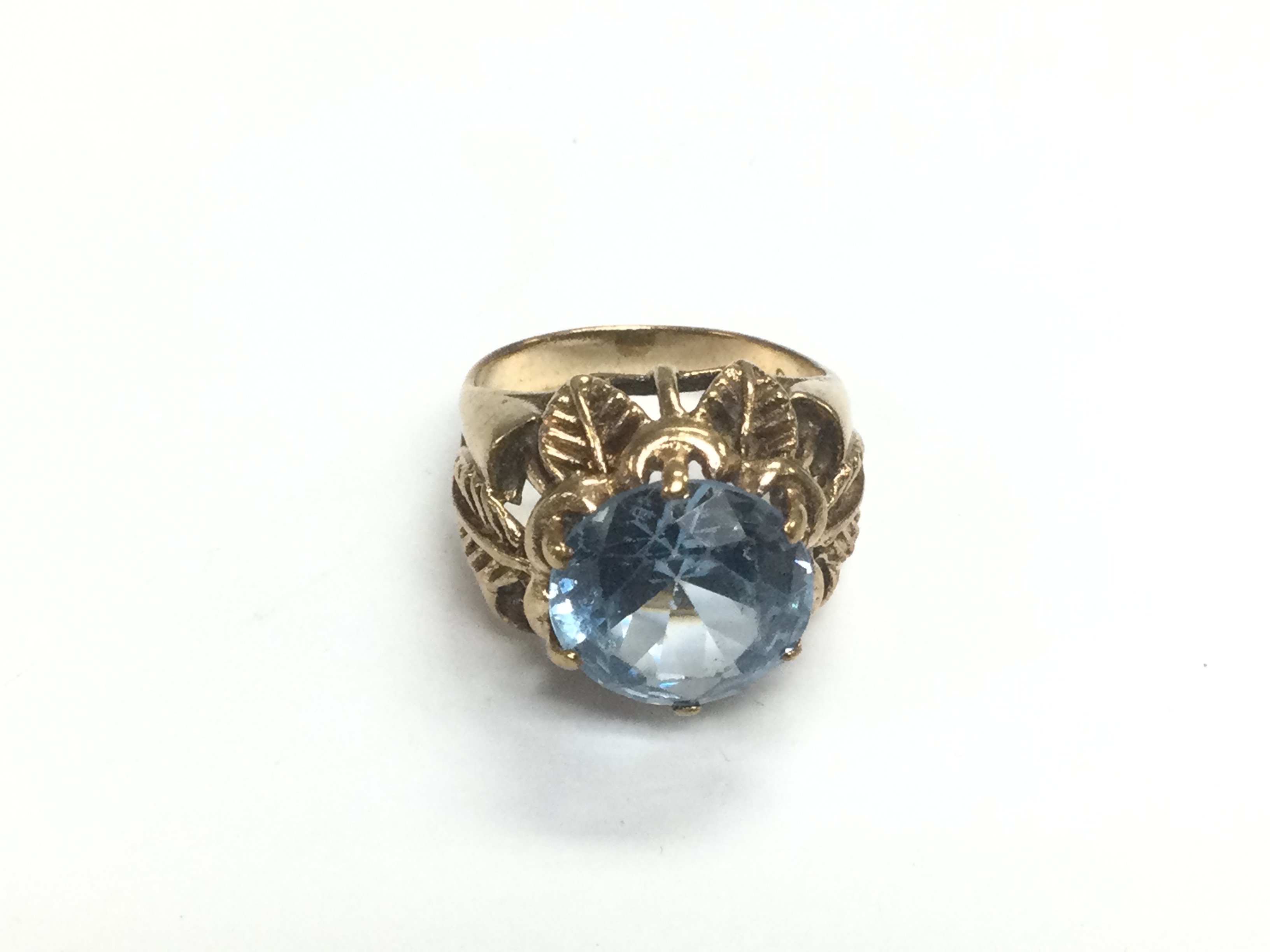 A large 9ct gold ring set with an aquamarine stone, approx 7g. Shipping category A.