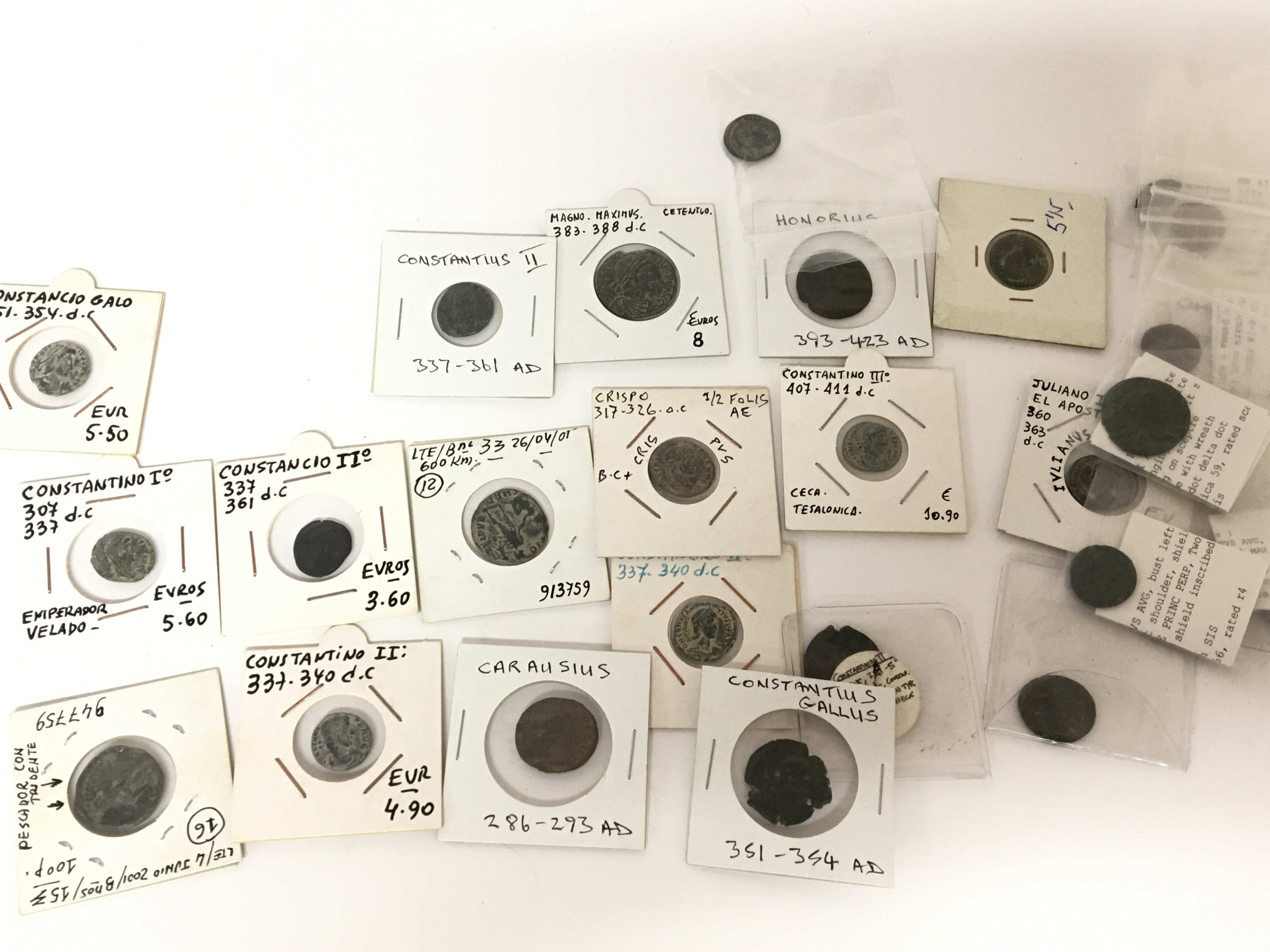 A collection of good examples of Ancient Roman Coinage in transparent card cases including Constantius 351-354 AD and many others.
