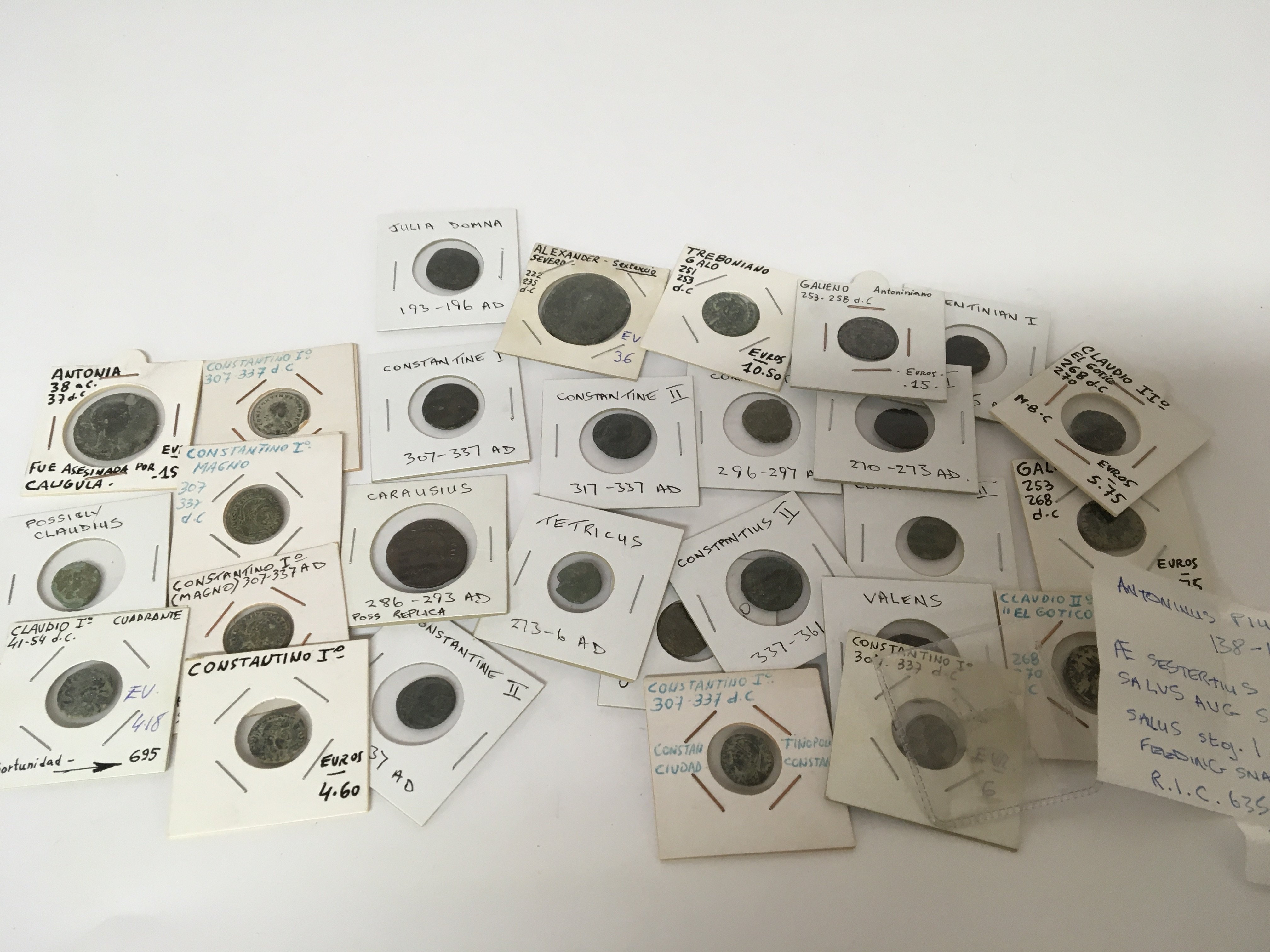 A collection of Ancient Roman coinage including Constantine I & II 307AD to 337AD and a silver Roman coin Antoninus Pius and others