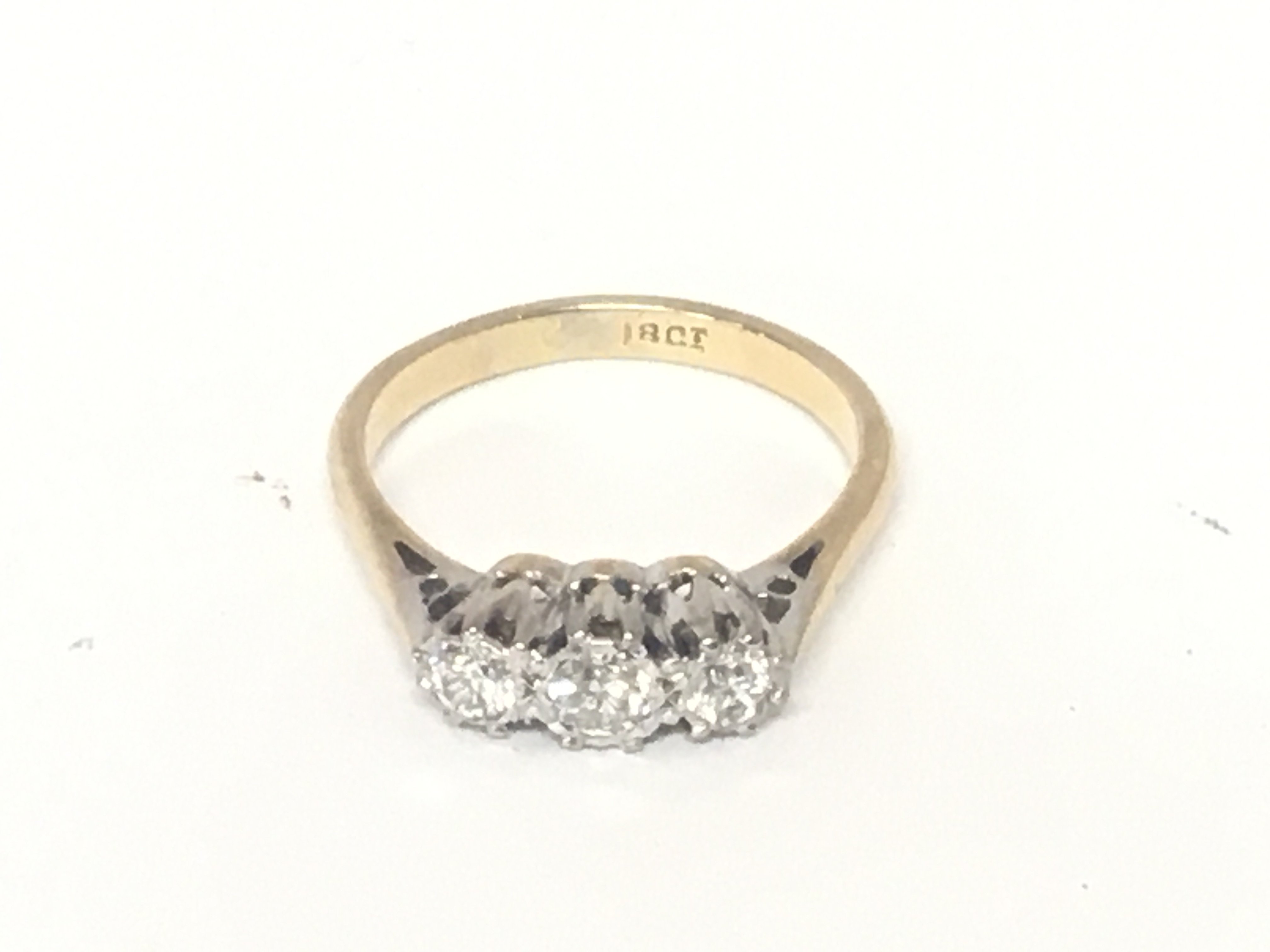 An 18carat gold ring set with three diamonds ring size M weight 3g