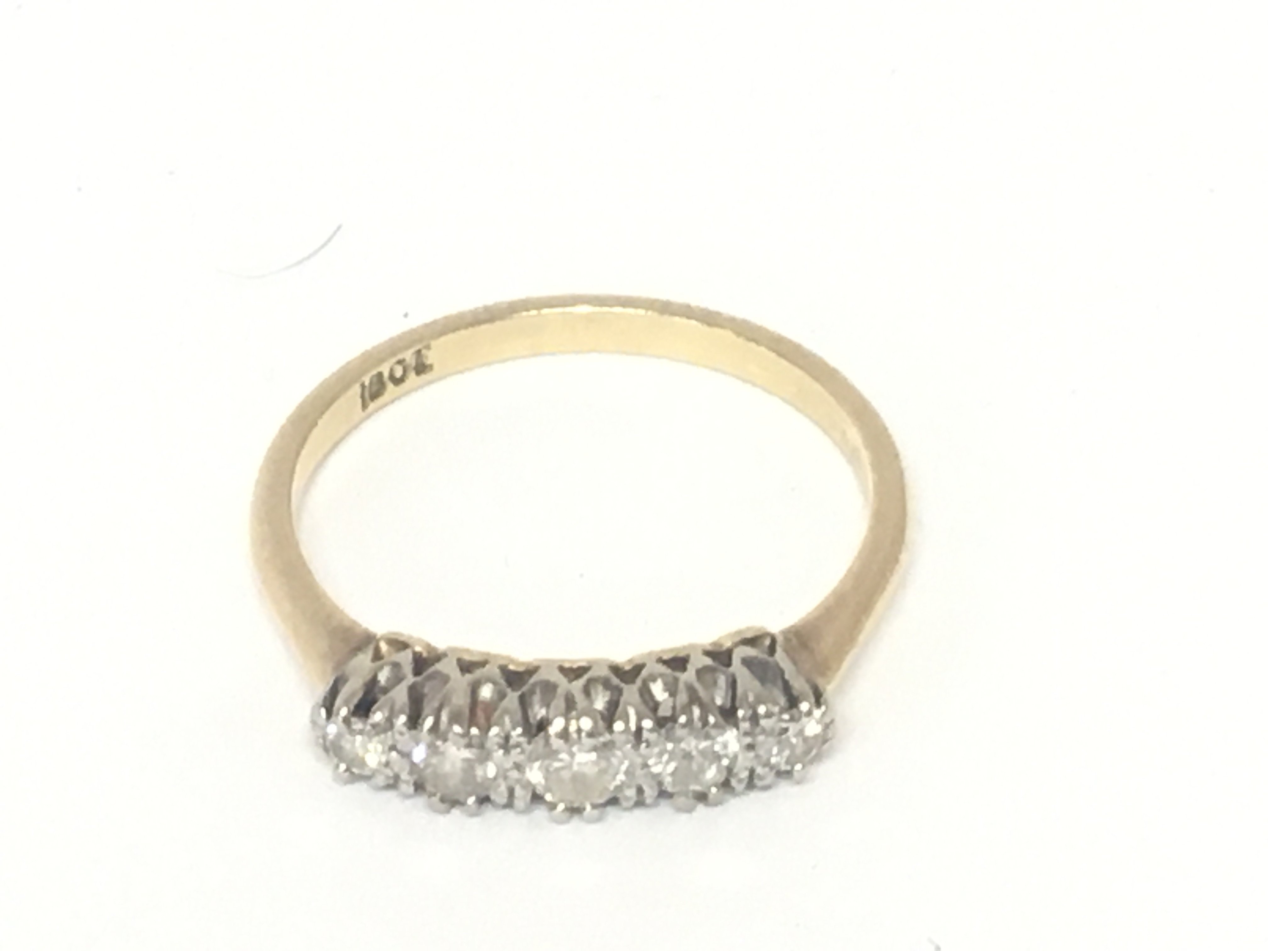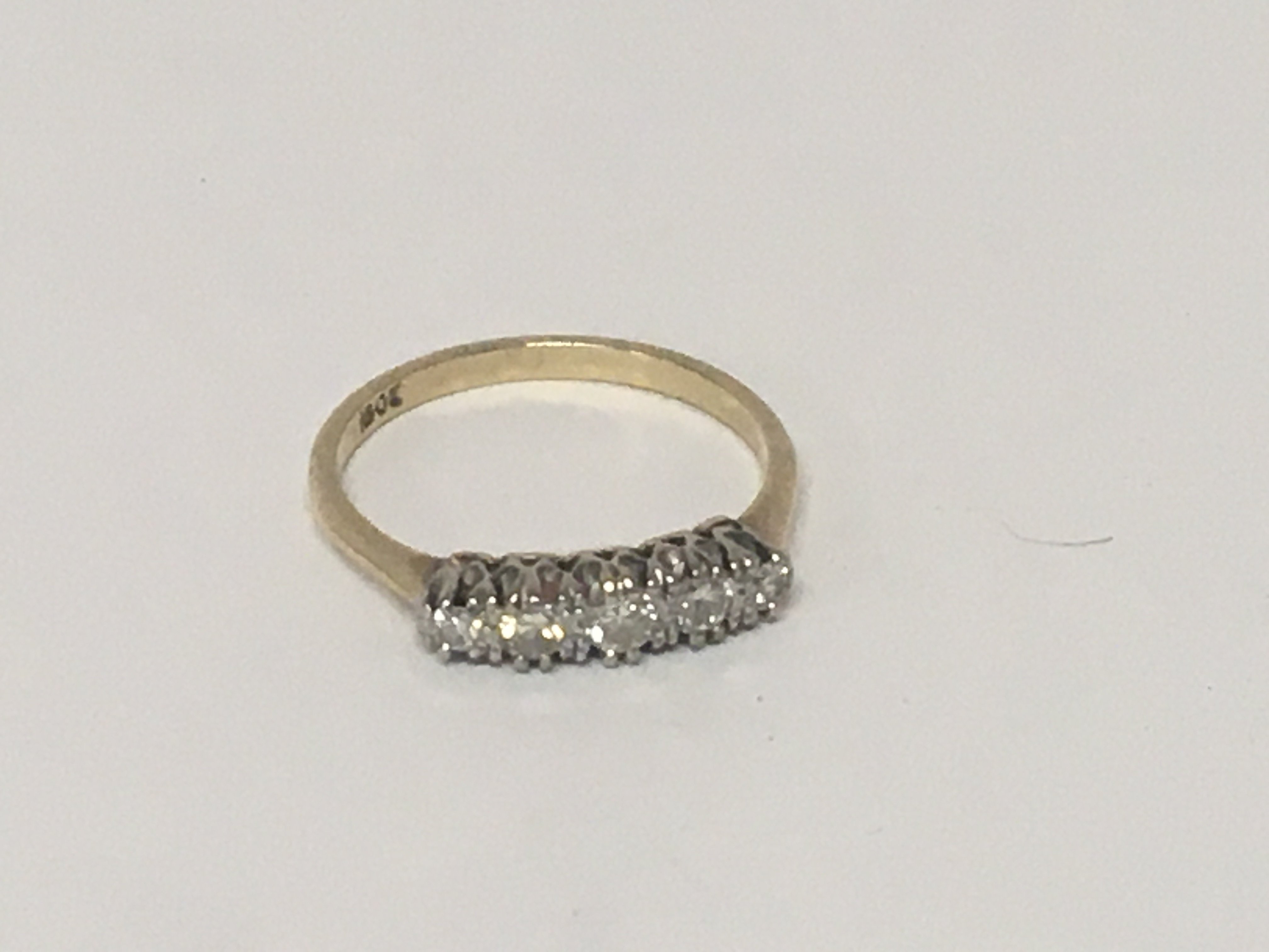 An 18carat gold ring set with a row of five diamonds ring size V weight 3.9g