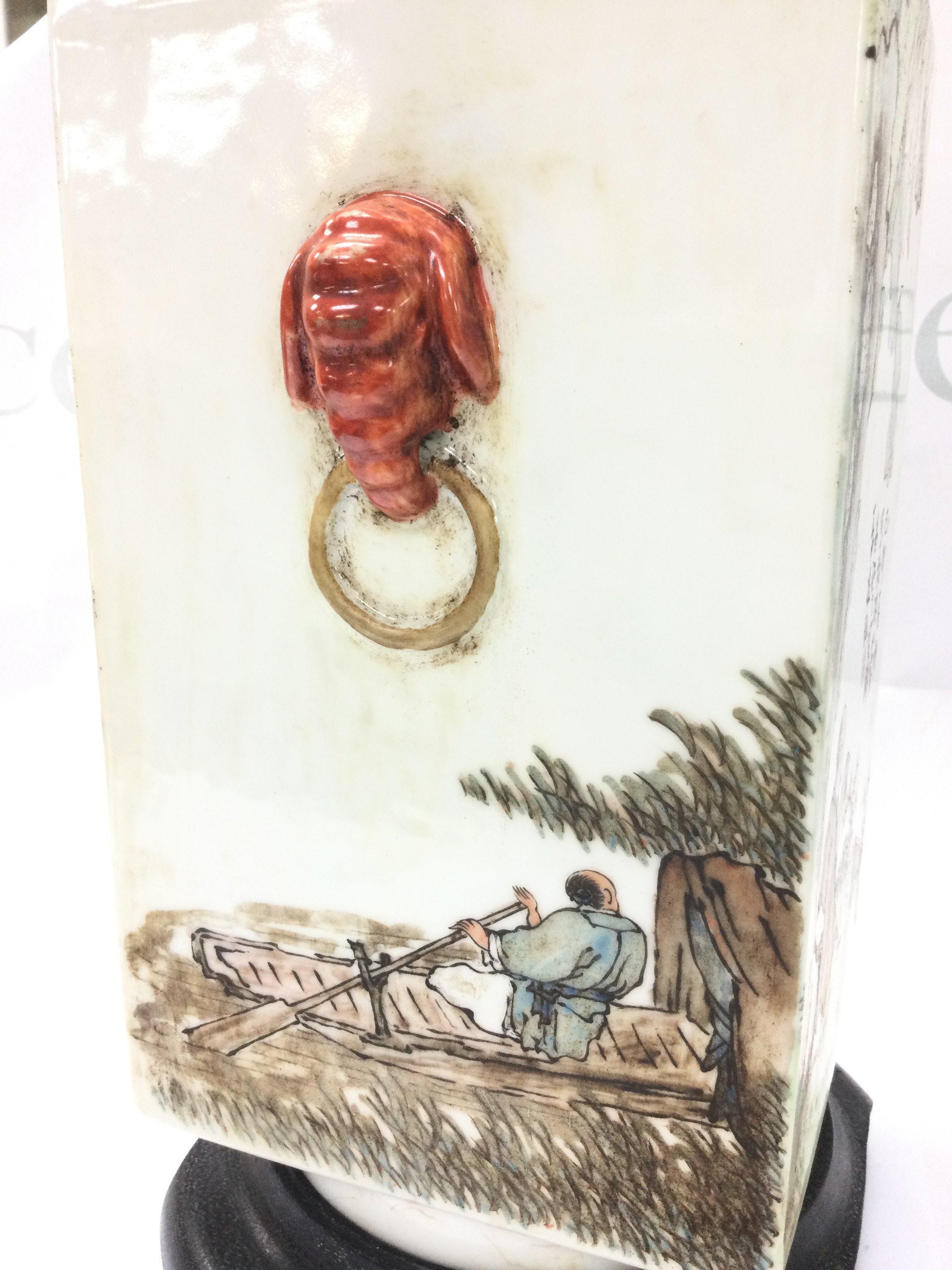 A Chinese qianjiang cai cong vase. 28cm tall, 14cm wide. No obvious large damage or restoration, light surface hairline crack. This lot cannot be posted