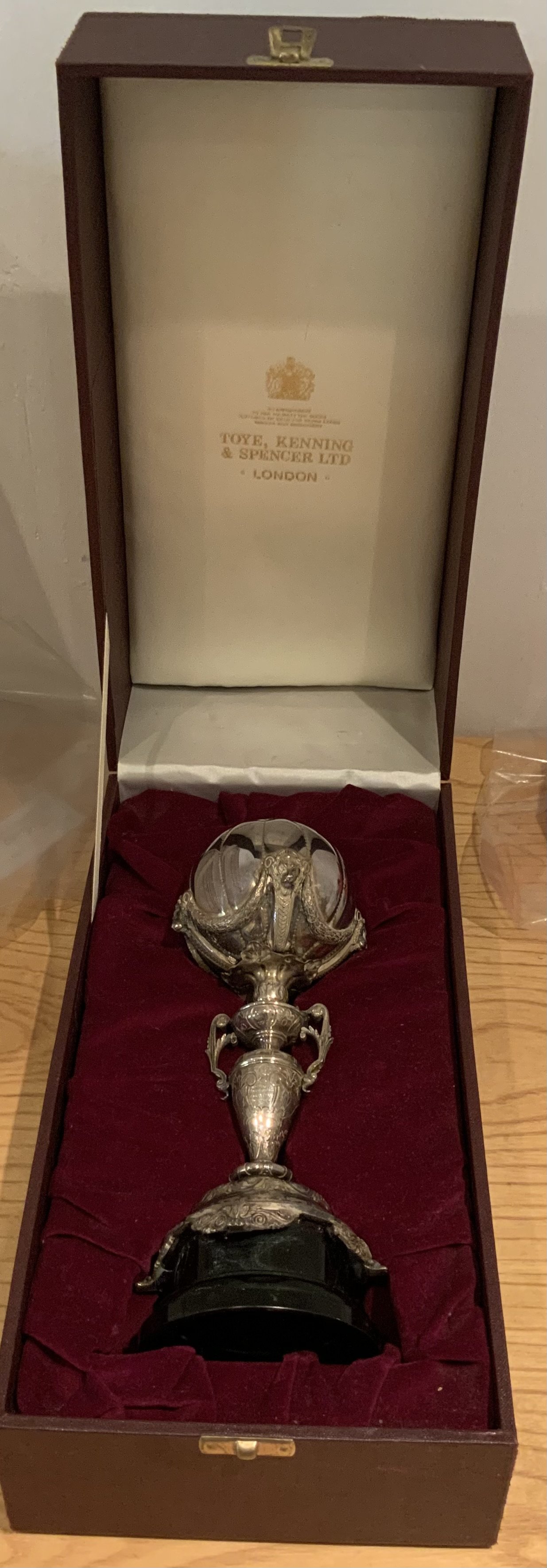 FA Challenge Trophy Presented To Enfield 1987: Stunning exact replica awarded to Enfield for defeating Telford Utd at Wembley on 12 5 1987. Larger trophy was kept for a year. This trophy measures around 9 inches high in original quality box by maker Toye Kenning + Spencer Ltd.