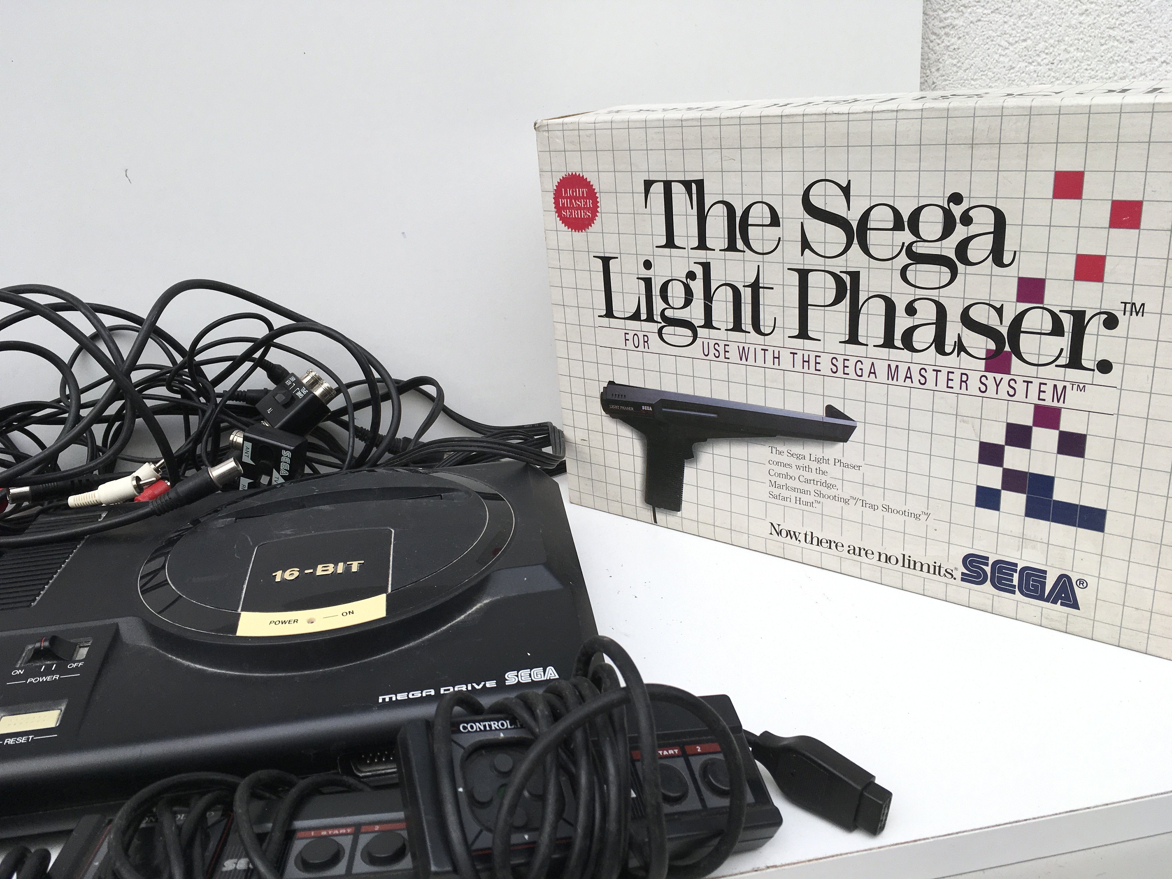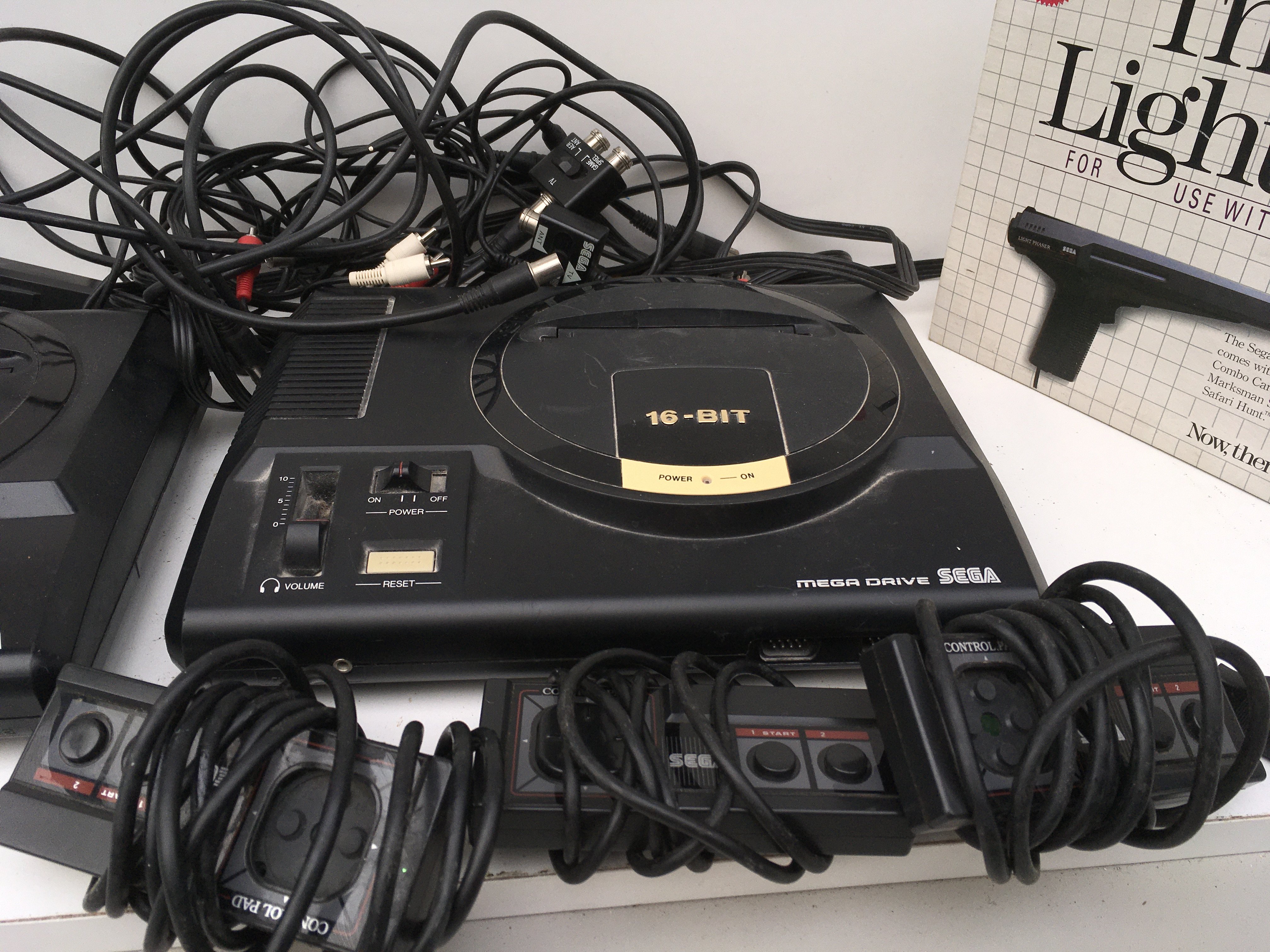 2x SEGA Mega Drive consoles includes control pads..cables ..2 light phasers (1 boxed). No reserve