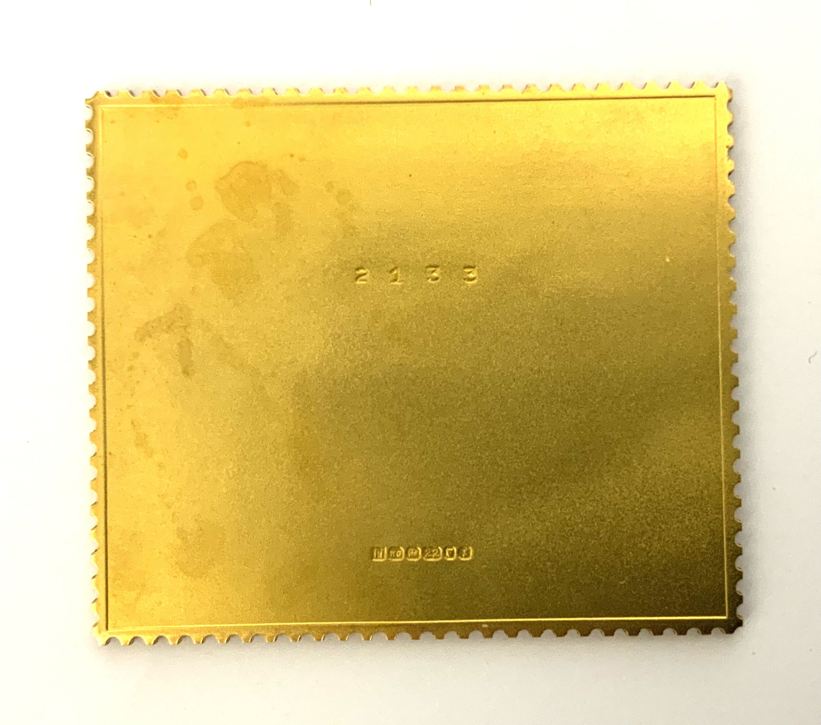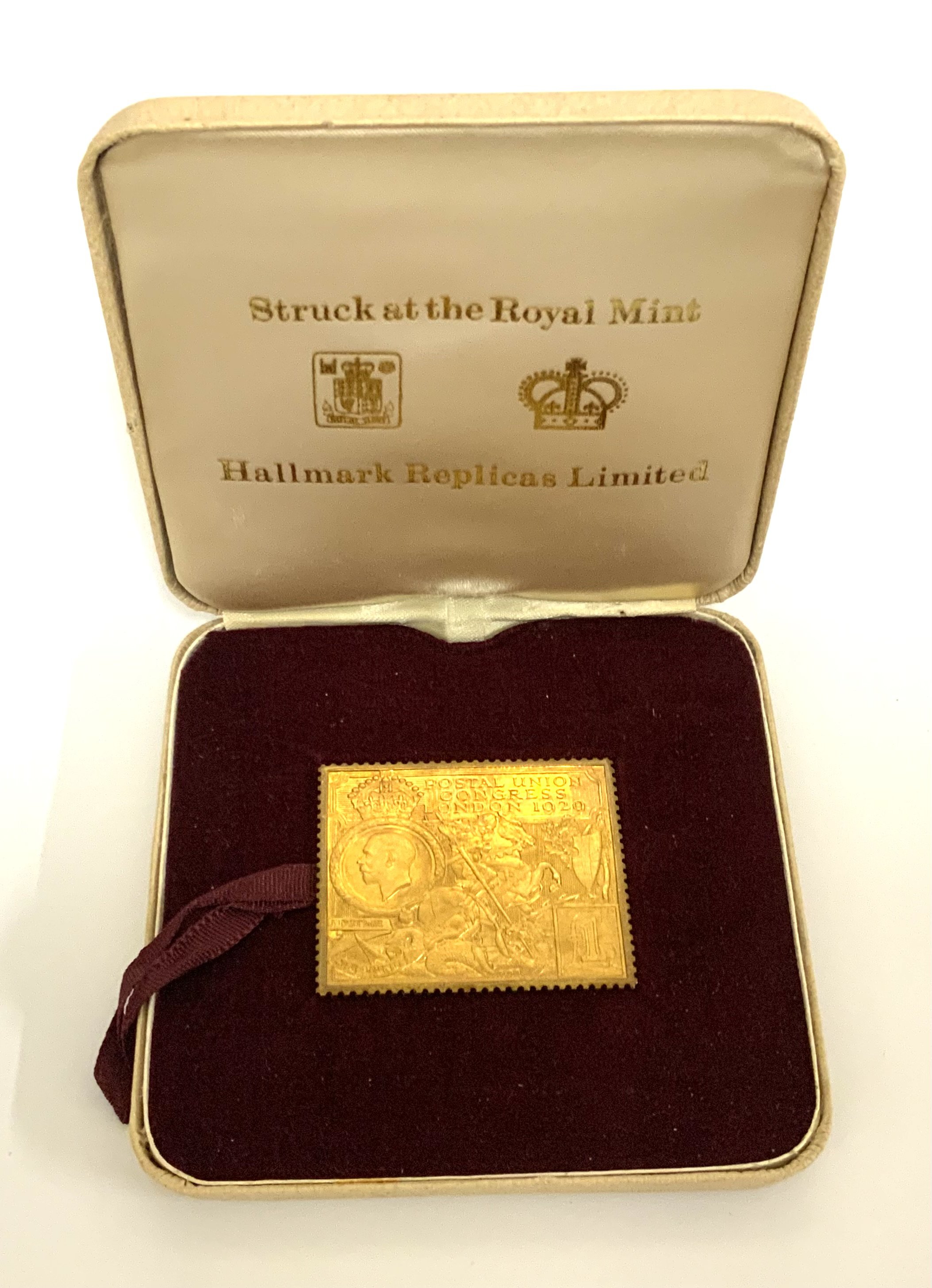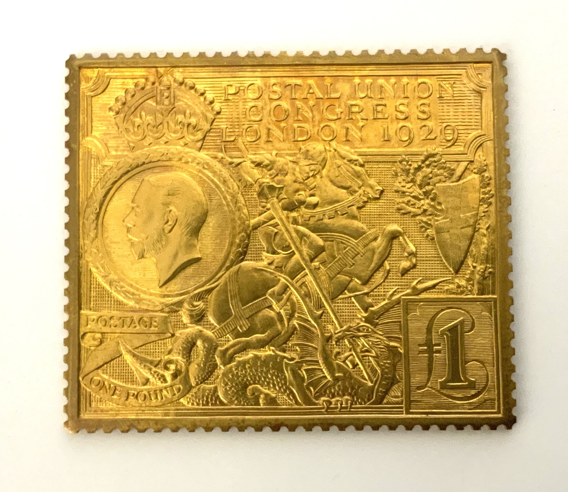One Pound Postage Postal Union Congress London 1929 , 22ct gold hallmarked replica postage stamp. 39.79g. (A)