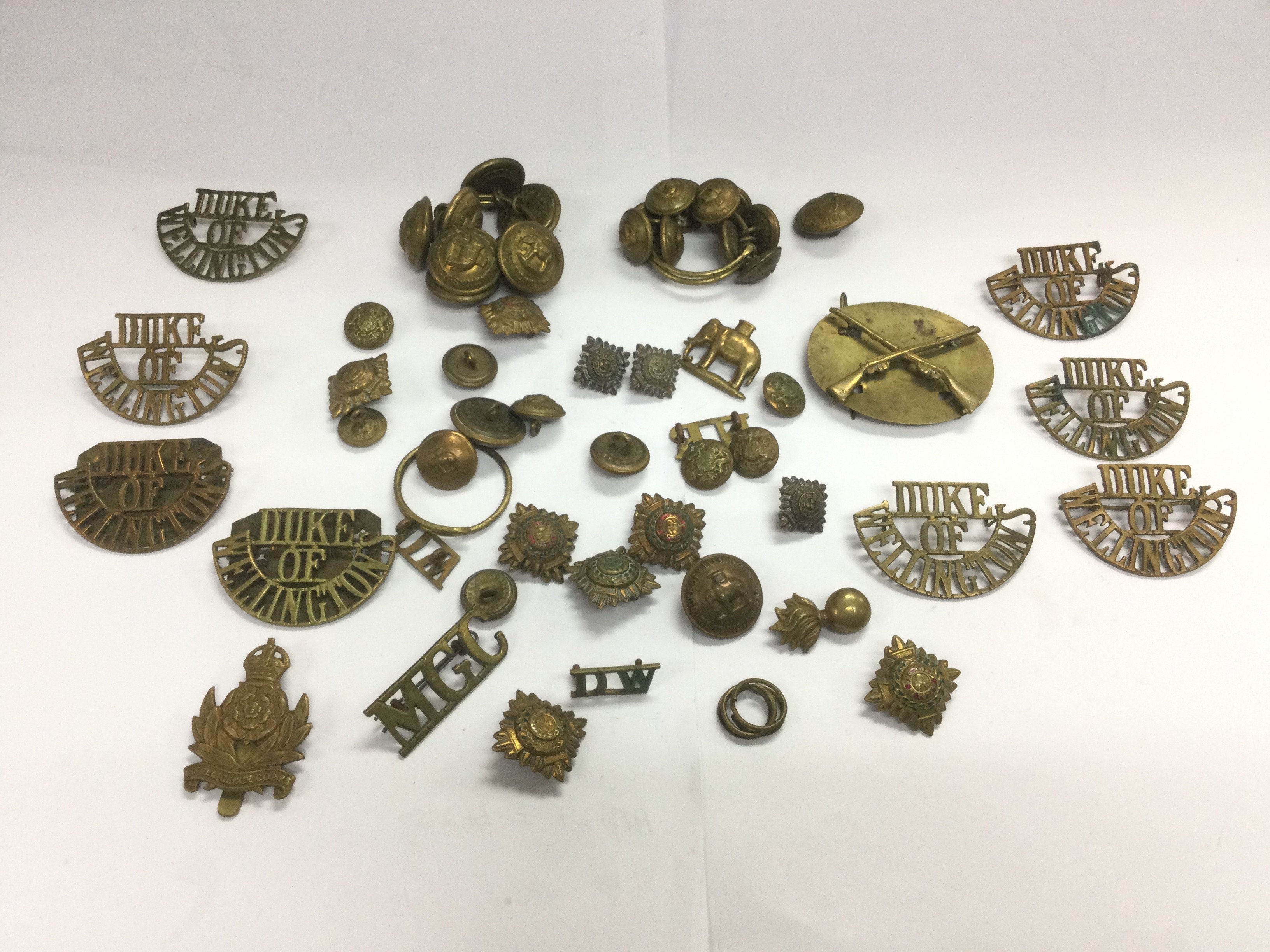 A collection of military badges and buttons, Duke Of Wellingtons regiment. Shipping category A.