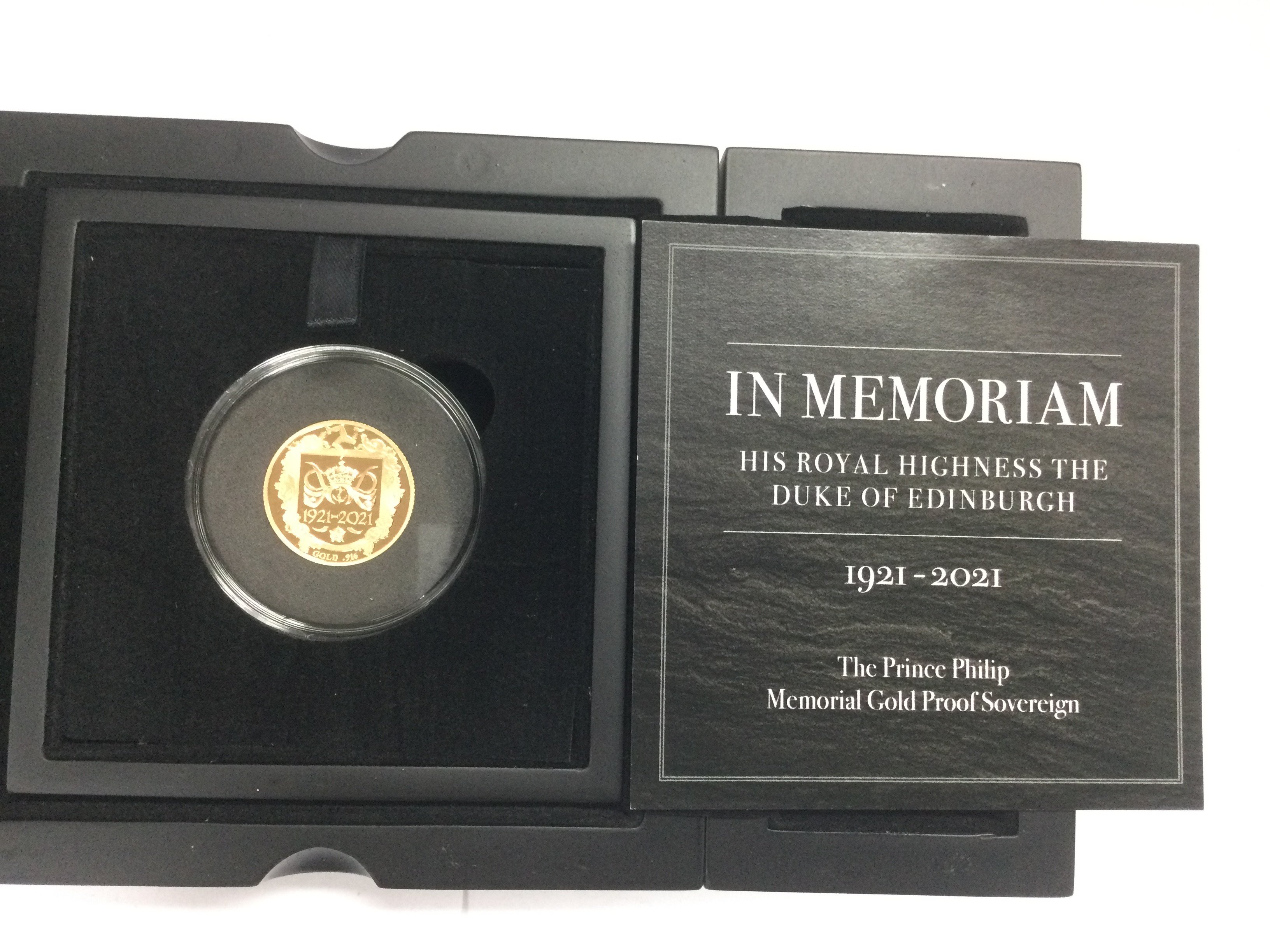 A cased limited edition 2021 gold proof sovereign in memoriam of the Duke of Edinburgh. Shipping category A.