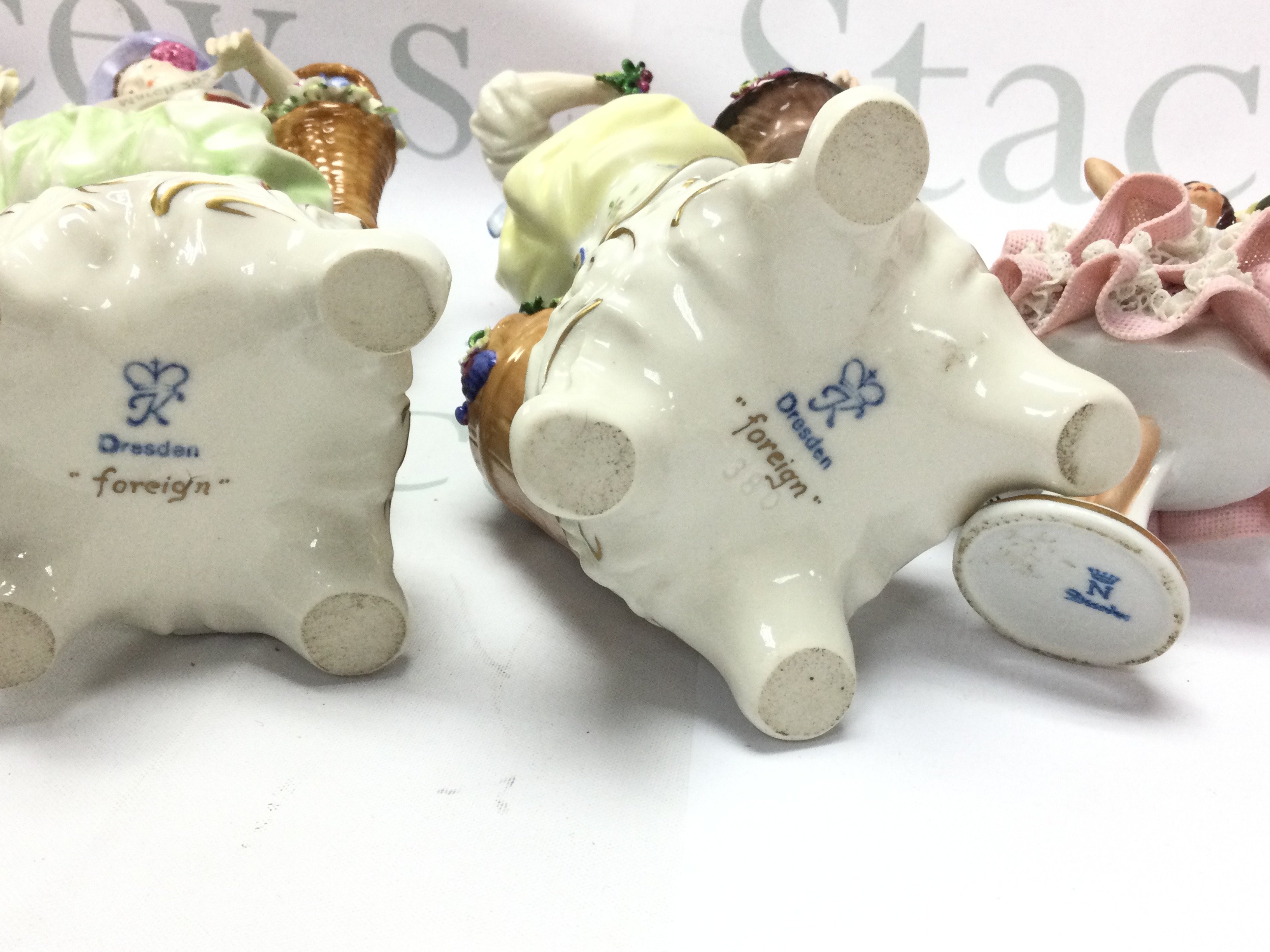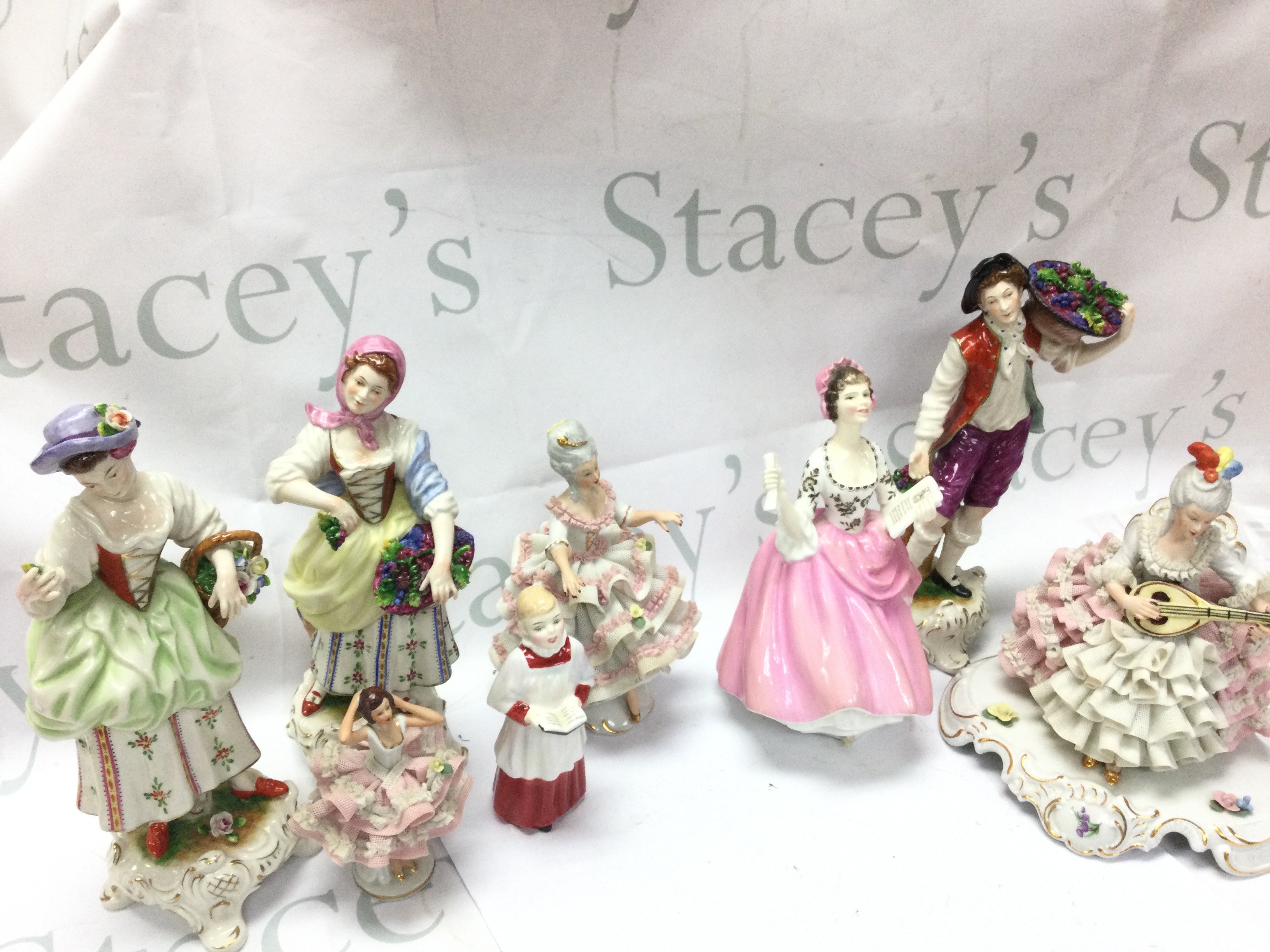 A collection of early 20th century Dresden porcelain figures and a some Royal Doulton figures including Ballad Seller, Choir boy . this lot cannot be posted